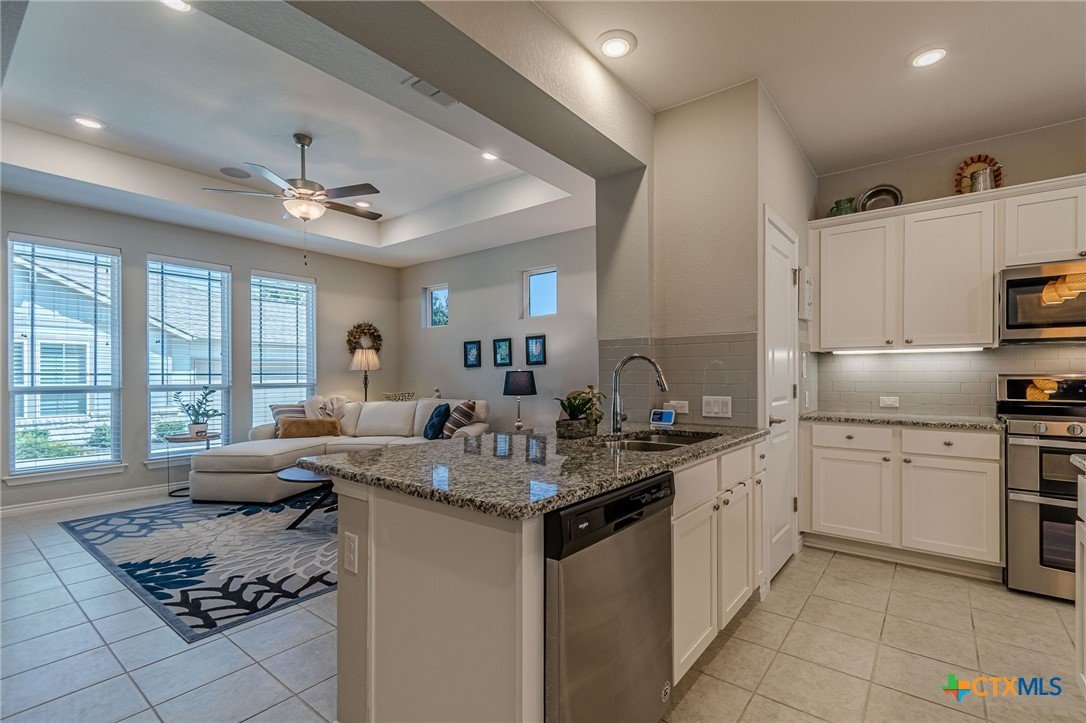 What a treasure of a home you just found! Location, location, location - with close proximity to the amenity center, fitness center, and all the extras this beautiful community offers!This home shines with pride of ownership in all that it offers! Tile flooring throughout most of the home with trayed ceilings in the living room and master bedroom to give you a nice spacious vibe. The open kitchen/dining/living concept gives a great open, light and airy feel to this space. The colors throughout the home give a designers touch with colorful accent walls, white cabinets throughout and neutral granite counters. The master bathroom gives perfect natural light and offers space both in the bathroom and closet. The one and a half car garage fit an SUV and a golf cart perfectly! You must come see all that this home has to offer. Start your active living lifestyle in this home at Kissing Tree - before someone else picks up this home!