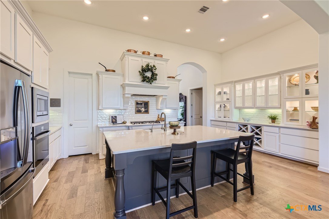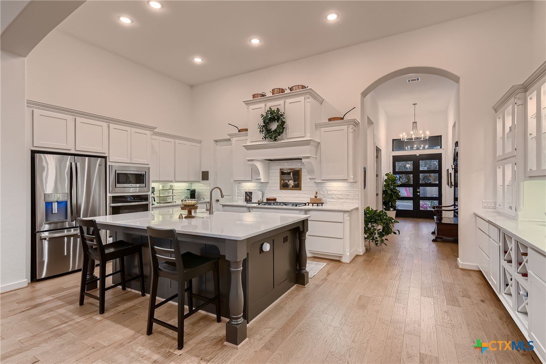 Over $150,000 worth of high-end upgrades have shaped this magnificent residence into the home of your dreams! Enviably set in the sought-after La Cima community, this stately brick abode is fronted by meticulous landscaping which elevates its stunning curb appeal. Through the glass-inlaid double doors, discover a luxurious modern interior enhanced by two-story ceilings, elegant light fixtures, and hardwood floors. A seamlessly flowing layout ensures effortless entertaining in the living and dining areas, adorned with a corner gas fireplace and expansive glass sliders for a vibrant indoor/outdoor lifestyle. A magazine-inspired kitchen treats you to a complement of stainless-steel appliances, custom cabinetry with trim lighting, a display hutch for your prized wine and chinaware, a walk-in pantry, and sleek quartz countertops extending to the oversized island. After a long day, retire to the comfortable proportions of the four stylish bedrooms, the grandest of which is the generous primary suite showcasing a window-side sitting alcove, a bespoke wardrobe, and a spa-like ensuite with an inviting soaking tub. Venture out to the expansive covered patio and fenced-in backyard ideal for hosting intimate celebrations. Other notables include a versatile lifestyle room, a study with a tailor-made bookcase, plantation-shuttered windows with commercial bronze framing, two tankless water heaters, oversized secondary bedrooms, 2 additional pantries, a whole-house WiFi mesh, an exterior natural gas hookup, a Soffit plug for Christmas lights, and an attached 3-car garage with retractable overhead storage and epoxy flooring. Enjoy access to top-notch communal amenities like multiple pools, sports courts, hiking trails, recreational centers, and a gym as well as neighborhood activities and events. Come grab this incredible opportunity before it passes you by!