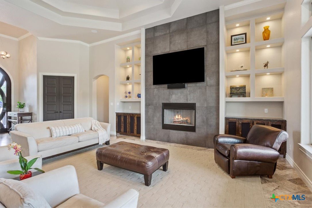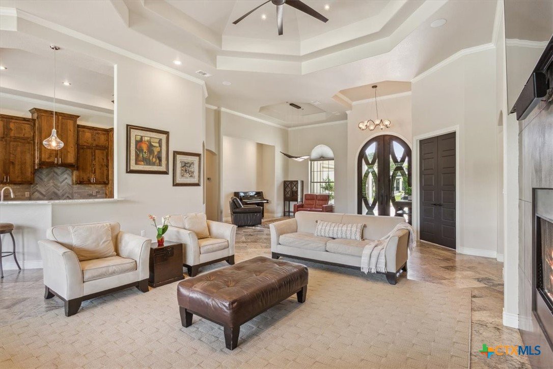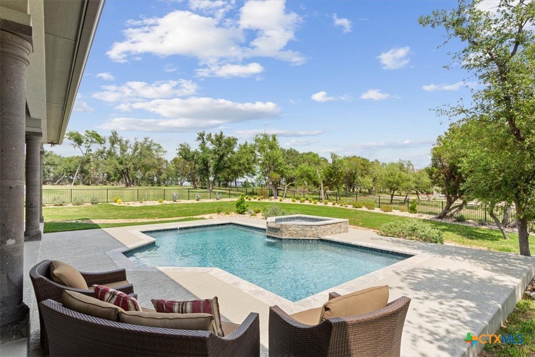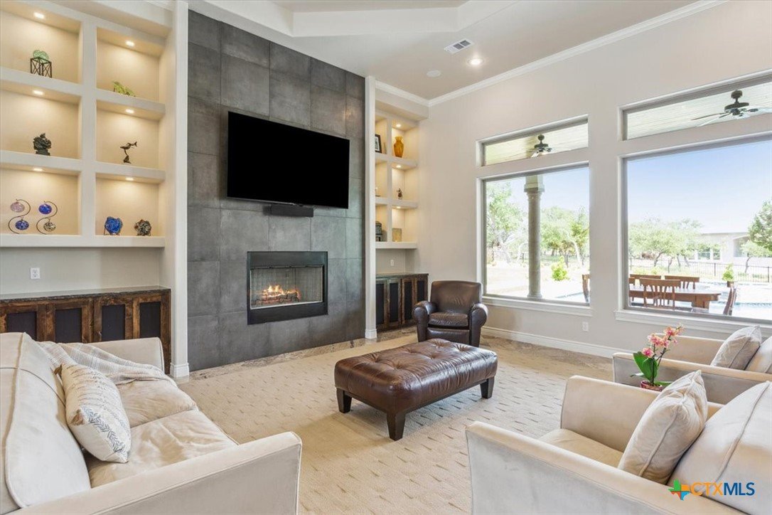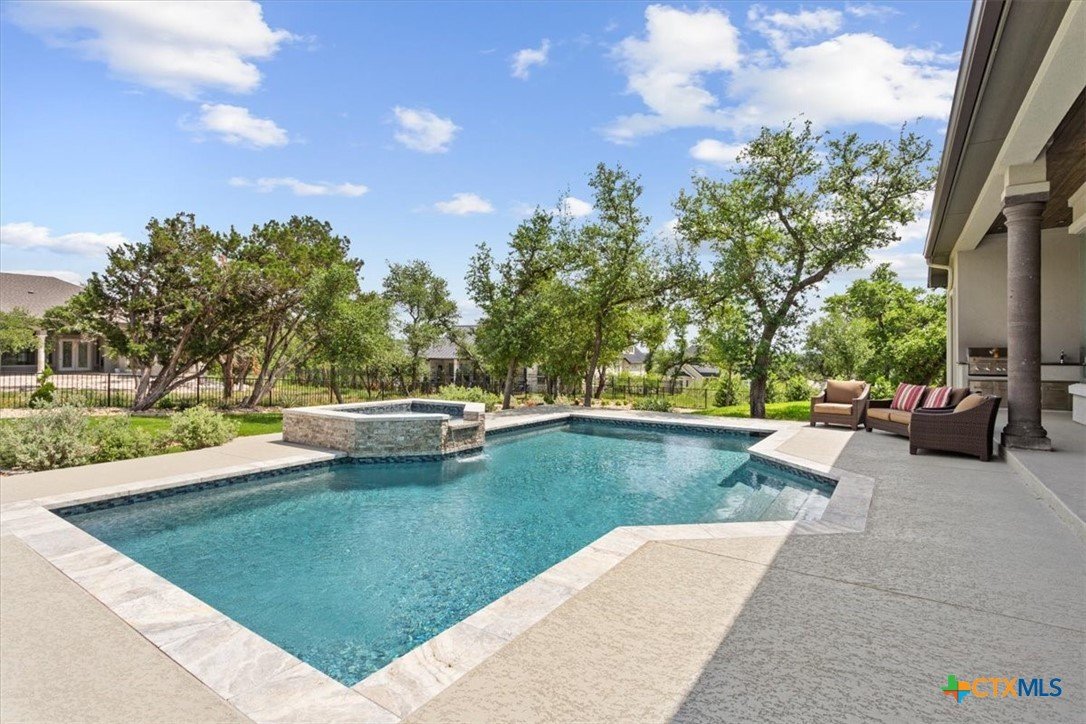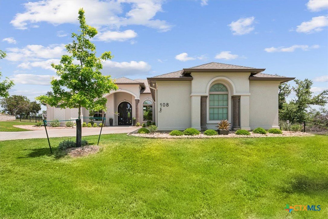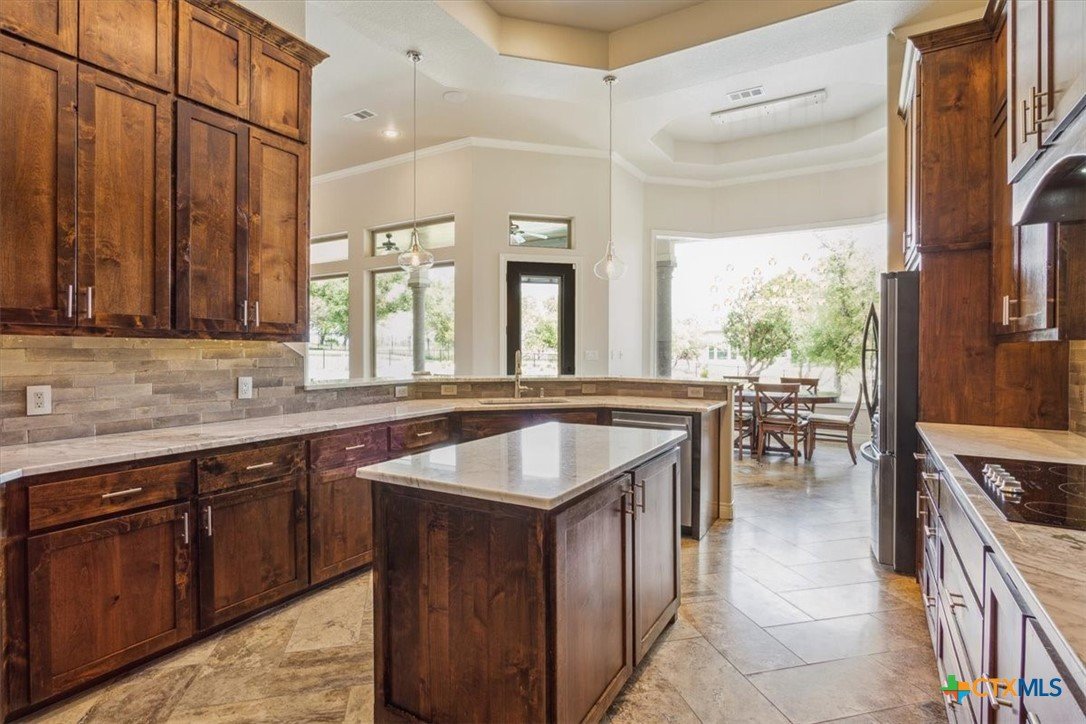 Experience luxury and comfort in this exceptional home nestled in a tranquil cul-de-sac within the Cliffs at Lake Belton community. Boasting 18-foot ceilings and an open-concept design, the interior features beautiful travertine flooring throughout, offering timeless elegance and durability, and no carpet. The gourmet kitchen is adorned with marble countertops, high-end appliances, and abundant cabinetry, catering to culinary enthusiasts. The 910 square foot air conditioned 3-car garage (not included in the home’s square feet) provides ample storage space, epoxy-coated flooring, and built-in speakers. For added peace of mind, the home is equipped with a whole-home generator and a tornado/storm shelter. Step outside to your private oasis, complete with a professionally landscaped yard, a heated pool and spa featuring swim jets and an outdoor kitchen. The back porch and pool perimeter is also equipped with an impressive sound system, seamlessly integrated into a Control4 system, allowing you to manage your music and ambiance effortlessly through a centralized smart home interface. Located within the highly sought-after Belton Independent School District and just moments from the scenic Lake Belton, this home seamlessly combines elegance, functionality, and an unbeatable location.