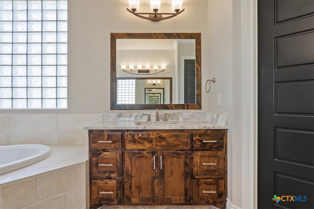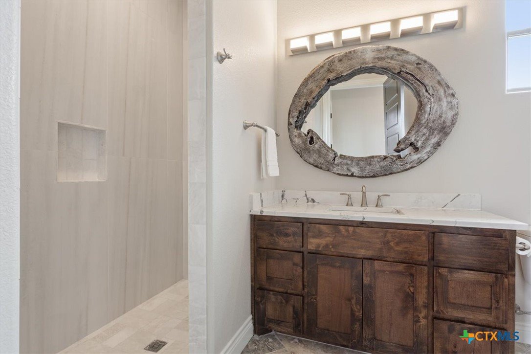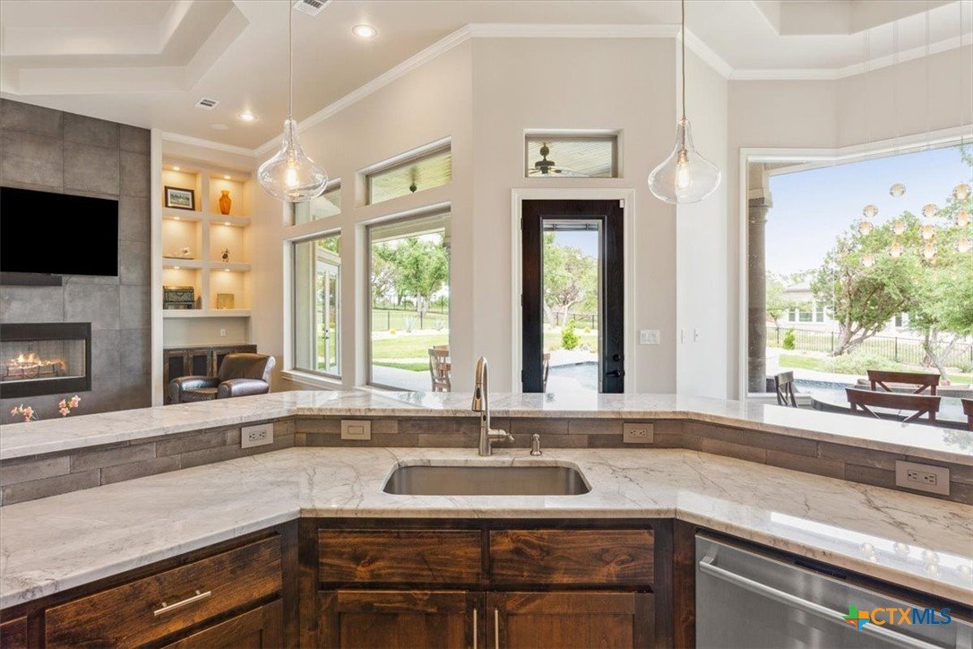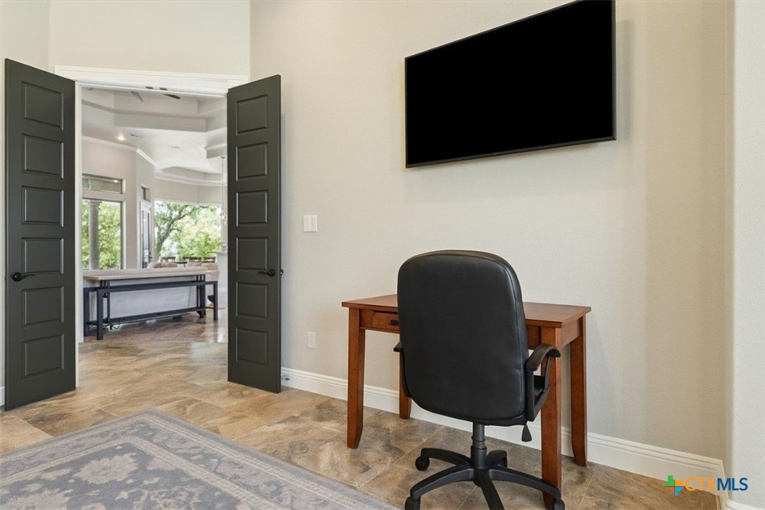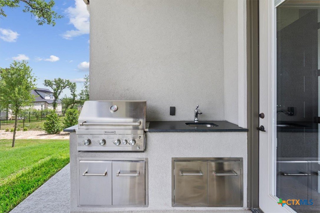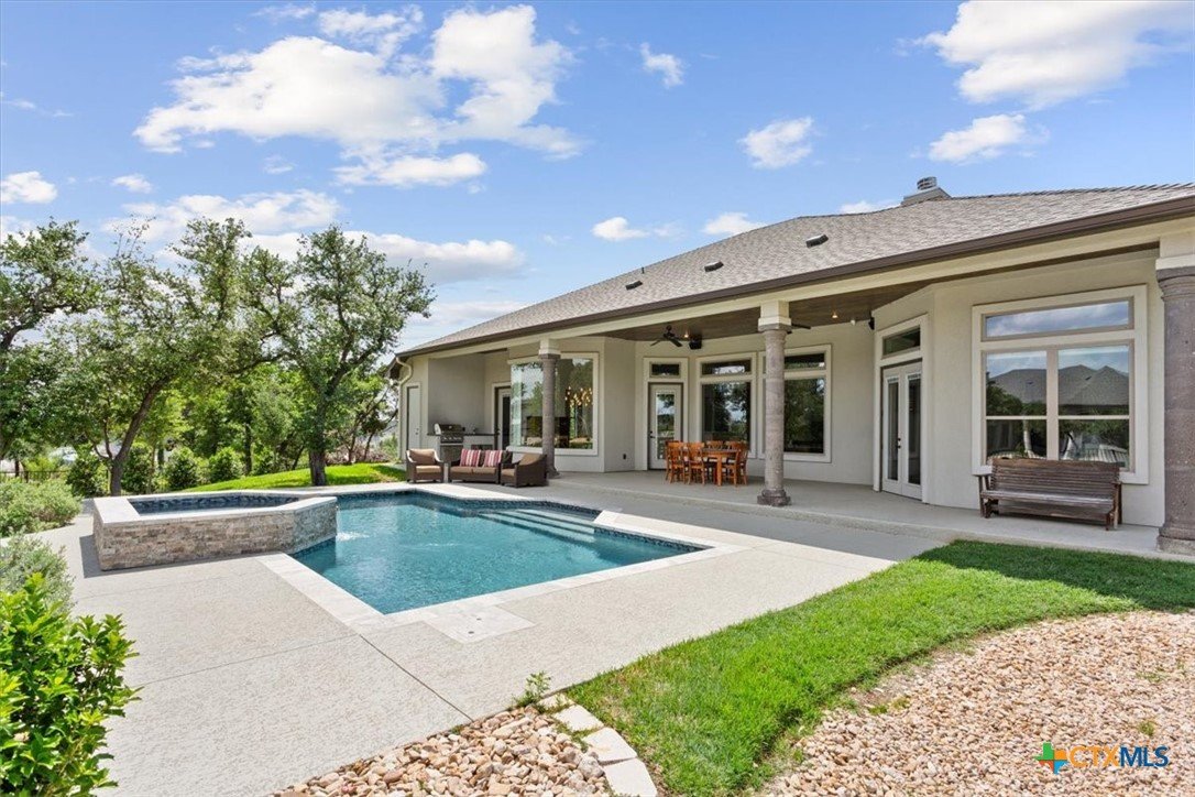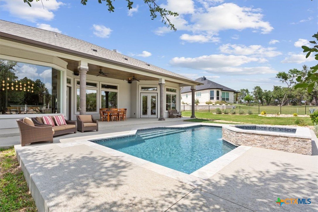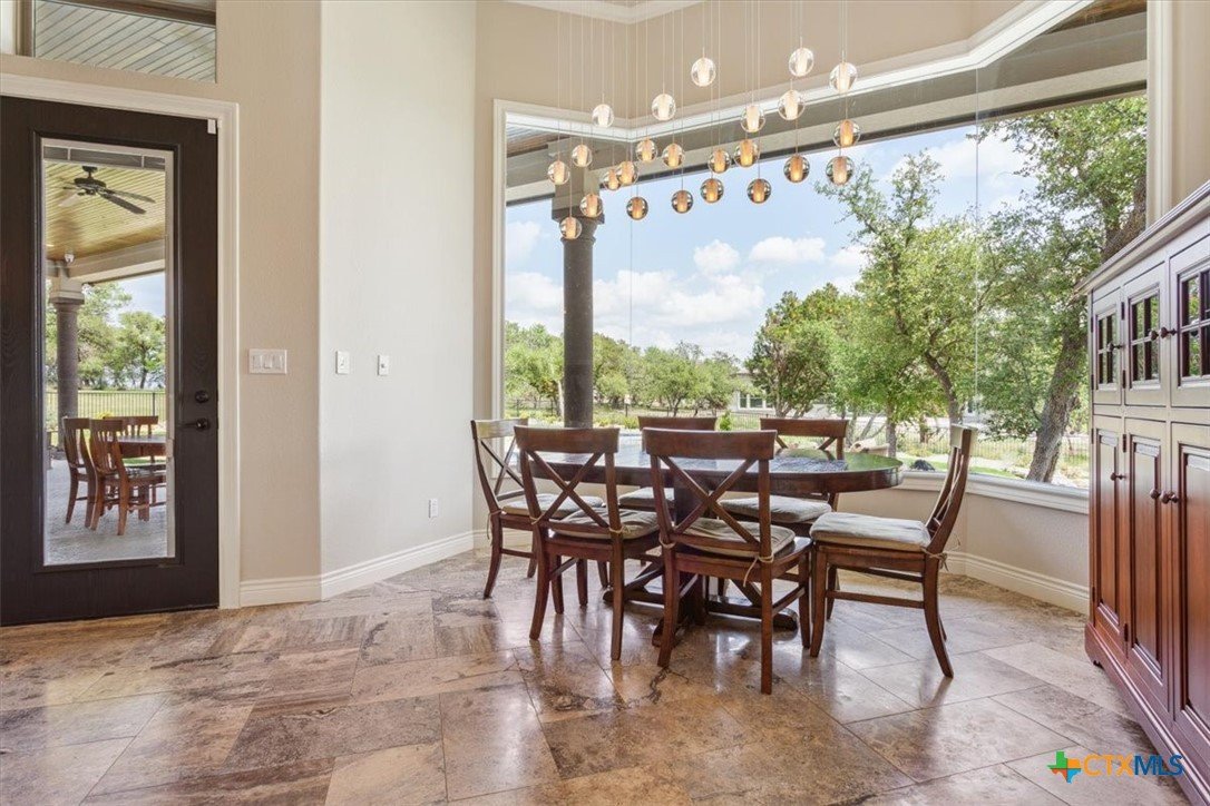 Experience luxury and comfort in this exceptional home nestled in a tranquil cul-de-sac within the Cliffs at Lake Belton community. Boasting 18-foot ceilings and an open-concept design, the interior features beautiful travertine flooring throughout, offering timeless elegance and durability, and no carpet. The gourmet kitchen is adorned with marble countertops, high-end appliances, and abundant cabinetry, catering to culinary enthusiasts. The 910 square foot air conditioned 3-car garage (not included in the home’s square feet) provides ample storage space, epoxy-coated flooring, and built-in speakers. For added peace of mind, the home is equipped with a whole-home generator and a tornado/storm shelter. Step outside to your private oasis, complete with a professionally landscaped yard, a heated pool and spa featuring swim jets and an outdoor kitchen. The back porch and pool perimeter is also equipped with an impressive sound system, seamlessly integrated into a Control4 system, allowing you to manage your music and ambiance effortlessly through a centralized smart home interface. Located within the highly sought-after Belton Independent School District and just moments from the scenic Lake Belton, this home seamlessly combines elegance, functionality, and an unbeatable location.