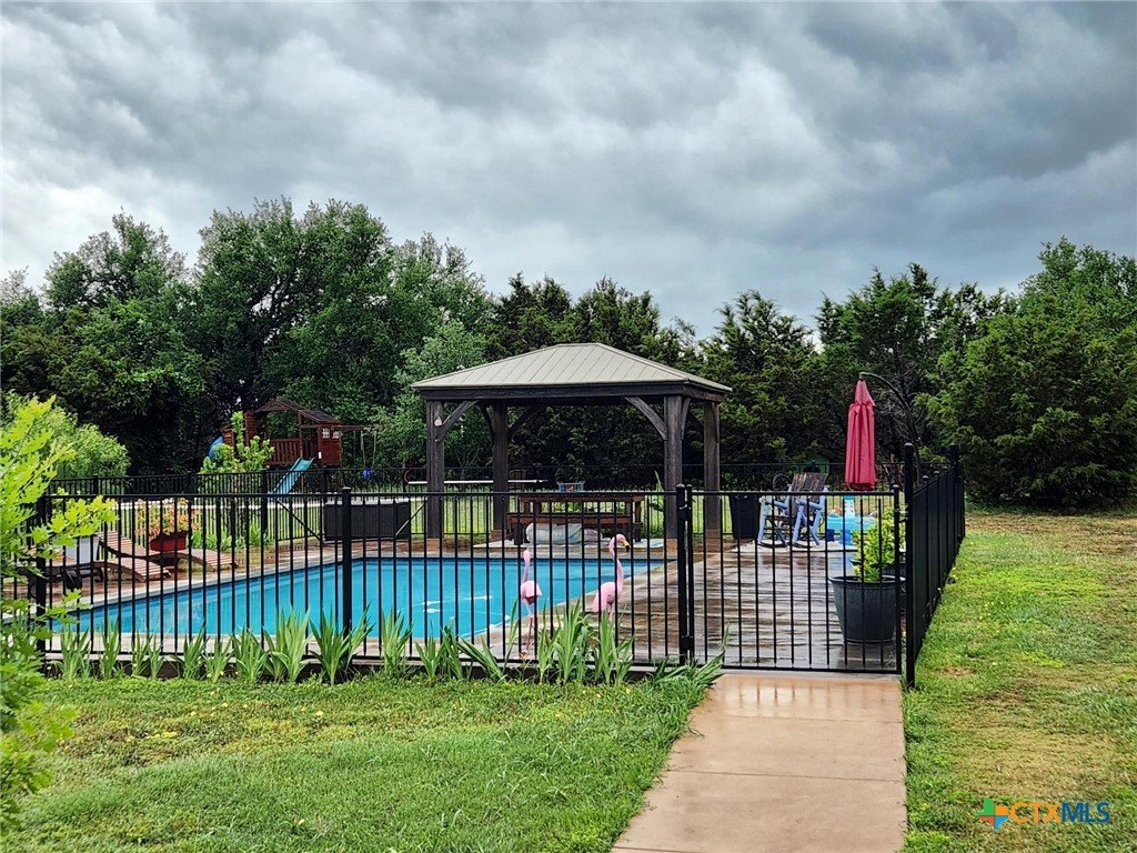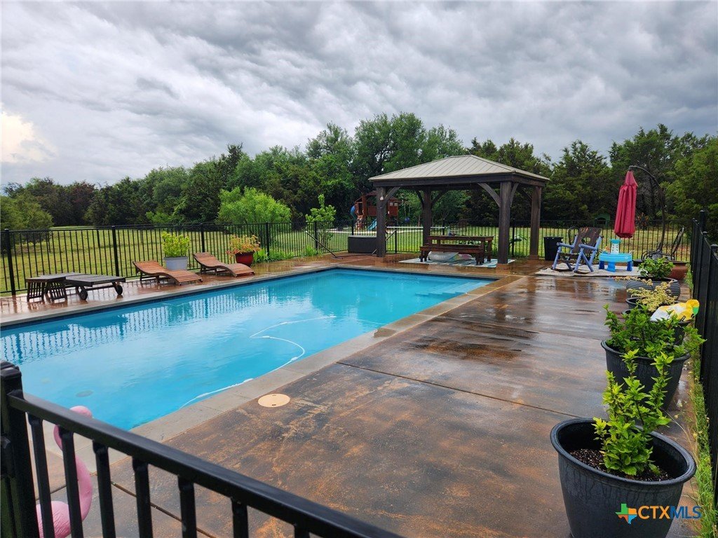 Priced to Sell!! Beautiful 3 bedroom, 2 1/2 Bath Home in Campo Colinas, located just outside of the Up and Coming City of Bertram, Texas! Home built in 2020 and upgraded in the last 2 years with new SPC (Stone Plastic Composite) Waterproof flooring and paint throughout Roof replaced in 2021 due to hail damage. Two car front entry garage complete with a mini-split for temperature control. Inground pool added in 2021. Do you love flowers, especially roses? Over an acre with landscaping and mature trees. Large Playscape, Fire pit, outdoor grill area, chicken and duck coop, fenced garden area; even an owl lives in the trees at the back of the property. Just a quick 20 minute drive to Austin or Georgetown on Hwys 29 and 183. Close to the city, but feels like you're in the Country. So many extras and priced to sell. Hurry to see this one!!
