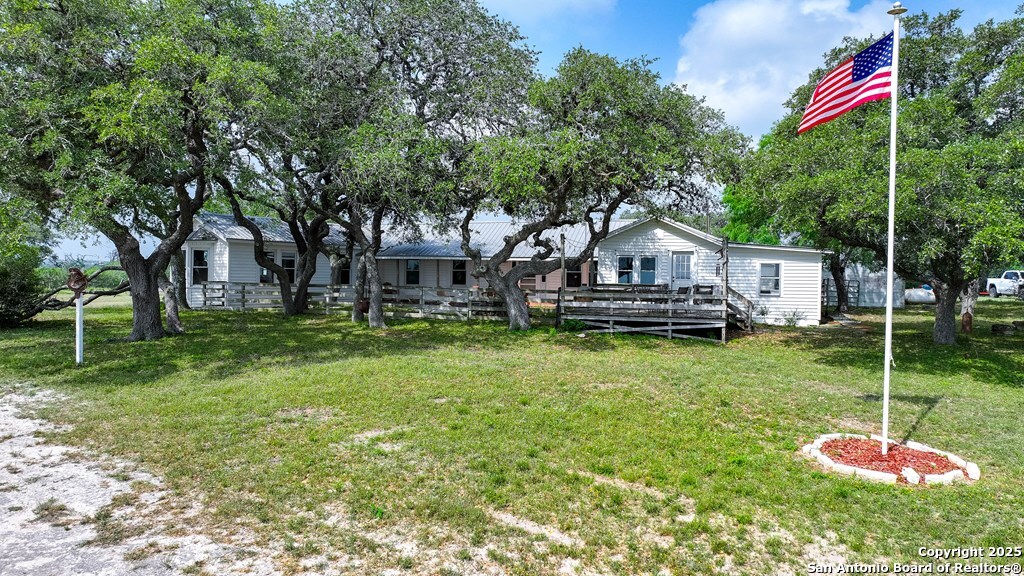 86.74 +/- acres in Bee County Cozy 3B/1B 2,000 +/- sq ft home that was a church which was disassembled and moved from Mineral, Tx to the ranch in 1936 Incredible Oak trees covering the property Home has central air/heat Original flooring Back patio area with a fire pit Home site is separately fenced in Large car port for vehicles and farm equipment Water well and power in place Loaded with wildlife such as deer, dove, quail, turkey, and hogs Maintained roads Cleared senderos Stock tank Mix of Dense brush and open pasture Property is fully fenced for cattle Nice wide electronic gated entrance 25 +/- min to Beeville 20 +/- min to Kenedy; Original MLS#: 113091; Deed Restrictions: ; Land Dimensions: NA; Mineral Rights: No; Surface Lease: No; Total Taxes: 0.00; USDA CRP Program: No; Water District: No; Water Rights: No