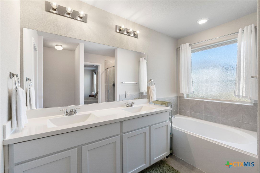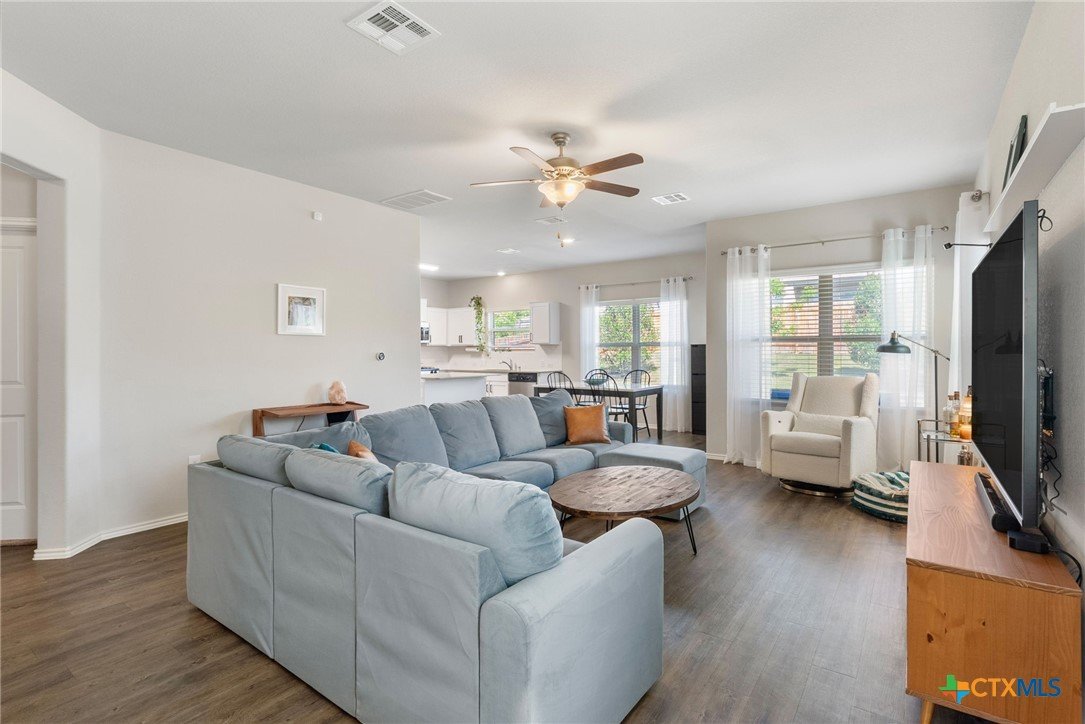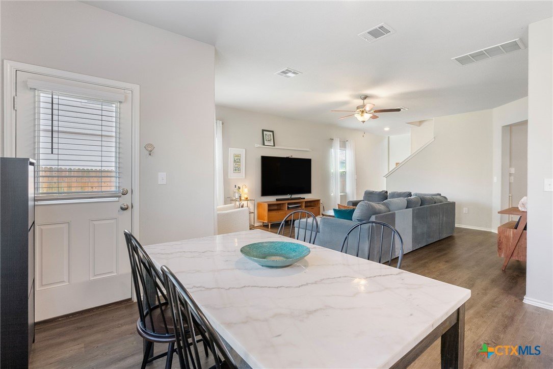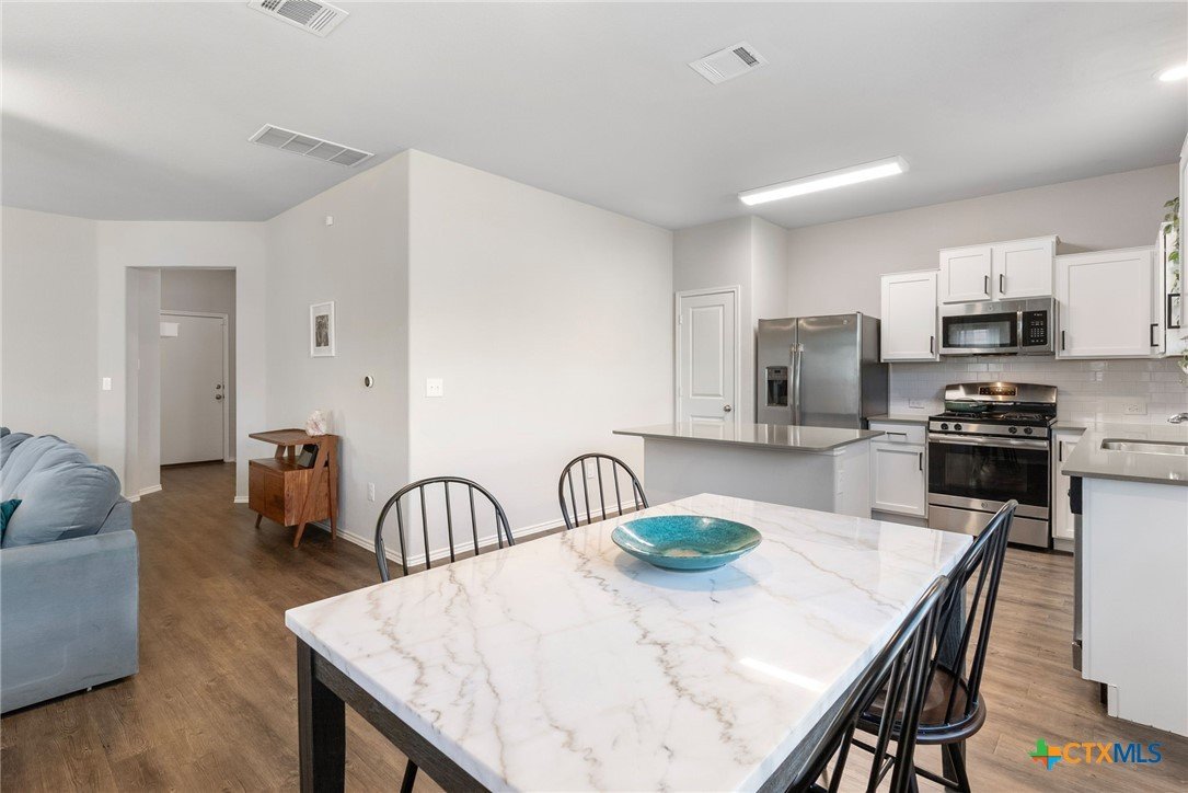 Welcome to 10805 Dimitrios Drive, a beautifully maintained 4-bedroom, 3-bath home in the highly sought-after Bradshaw Crossing community of South Austin. Built in 2019 and in excellent condition, this home offers the perfect blend of modern finishes, functional layout, and a prime location. Inside, you'll find an open-concept floor plan with great natural light, a stylish kitchen featuring quartz countertops, stainless steel appliances, and a large center island that seamlessly connects to the dining and living areas, ideal for entertaining and everyday living. The first floor includes a private bedroom and full bath, perfect for guests or a home office setup. Upstairs, the spacious primary suite offers a peaceful retreat with a walk-in closet and en-suite bath. Two additional bedrooms and a full bath are just down the hall, along with a generous loft that functions perfectly as a second living area, game room, or media space. Enjoy outdoor living in the fully fenced backyard with a covered patio, ready for relaxing evenings or weekend get-togethers. Bradshaw Crossing offers a true community feel with amenities like a neighborhood pool, parks, and walking trails. Located just minutes from Southpark Meadows, I-35, and downtown Austin, this home provides both comfort and convenience- all in a quiet, well-kept neighborhood zoned to quality schools. Don’t miss your chance to own a move-in-ready home in one of South Austin’s most desirable neighborhoods!