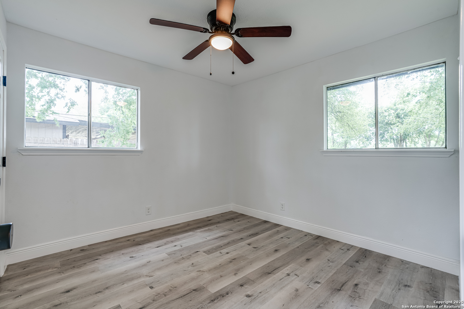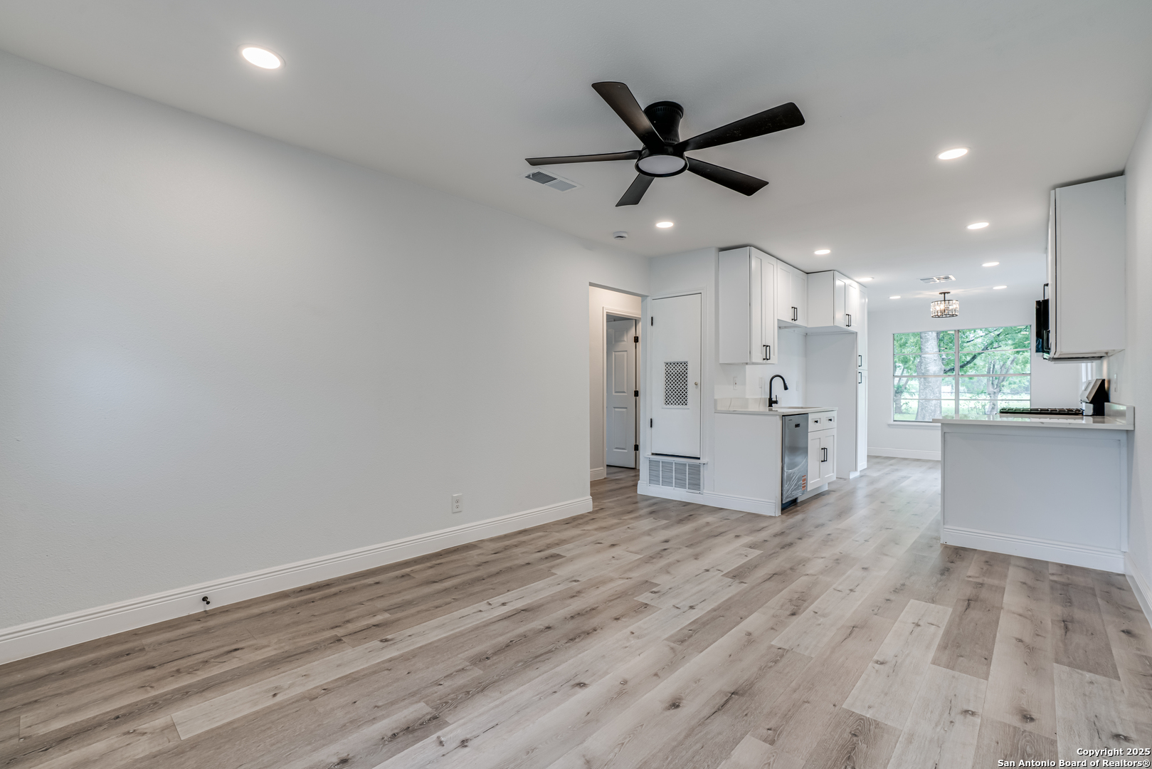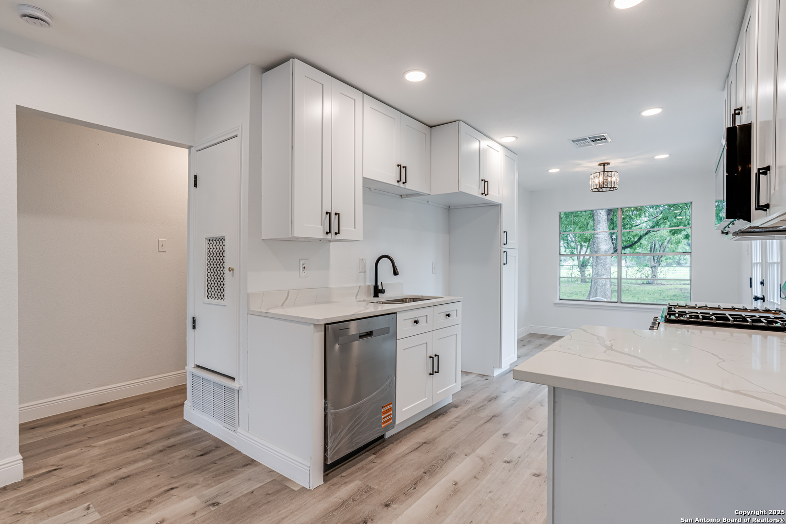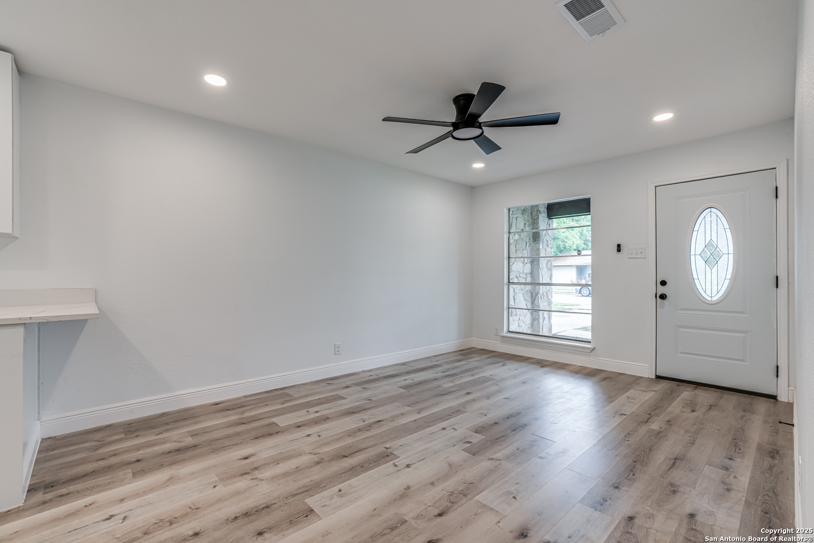Welcome to this thoughtfully renovated home, where modern finishes meet a warm and inviting atmosphere. An open-concept living area welcomes you upon entry and flows seamlessly into the updated kitchen, complete with striking quartz countertops, stainless steel appliances, and abundant cabinetry. Just off the kitchen, the light-filled dining room creates the perfect space for morning coffee and evening dinners with loved ones. Luxury vinyl flooring throughout adds to this home's appeal, offering both style and easy maintenance. Enjoy generous space in both the primary and secondary bedrooms, while the sleek bathroom impresses with bold black flooring and polished shower tile. Outside, you'll find an extensive backyard with a patio slab and surrounded by mature trees-ideal for relaxing, playing, and entertaining. Schedule your showing today and discover why this move-in ready gem is the ideal blend of comfort, style, and convenience!