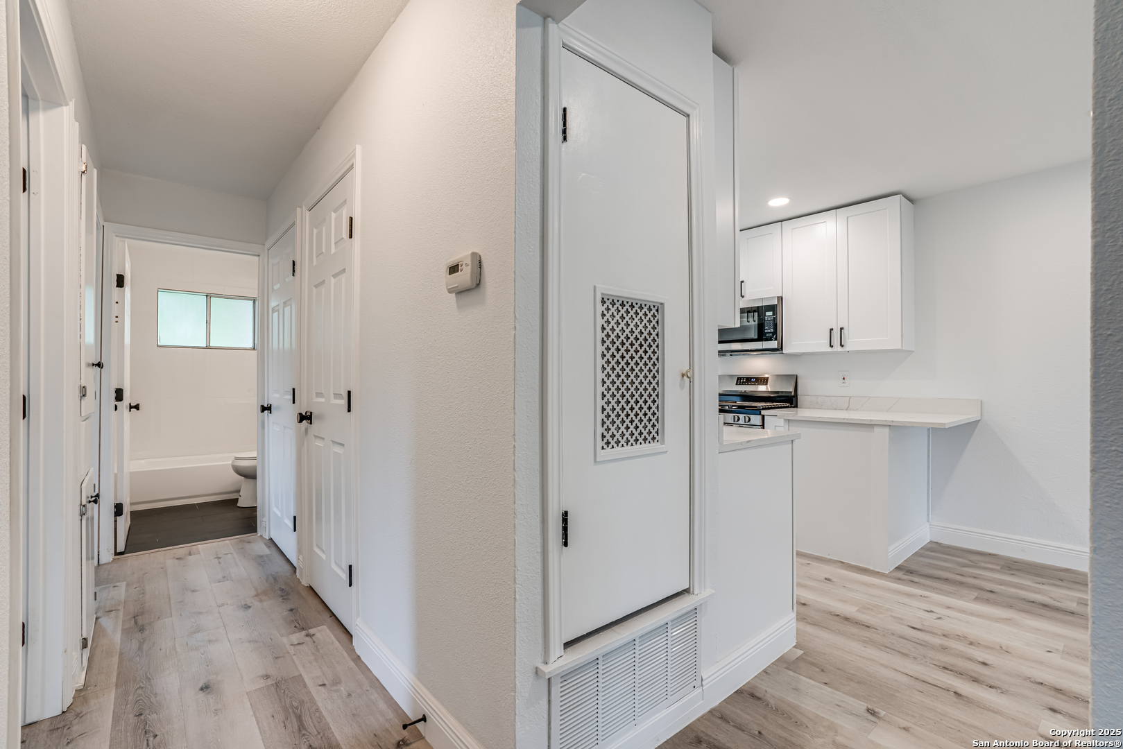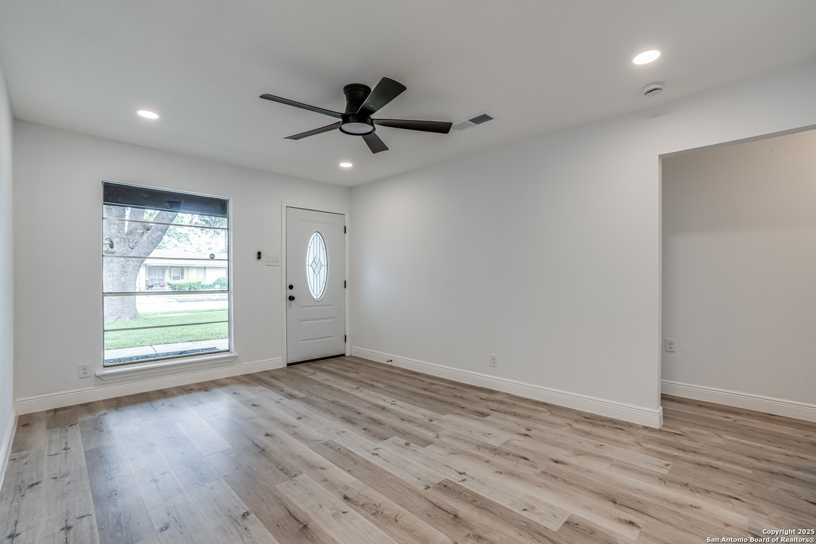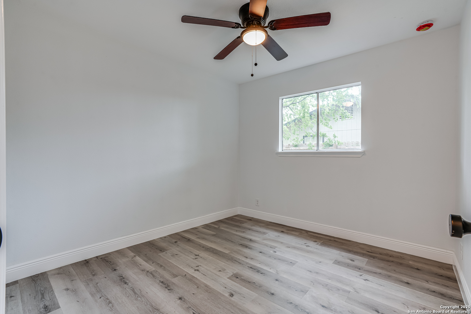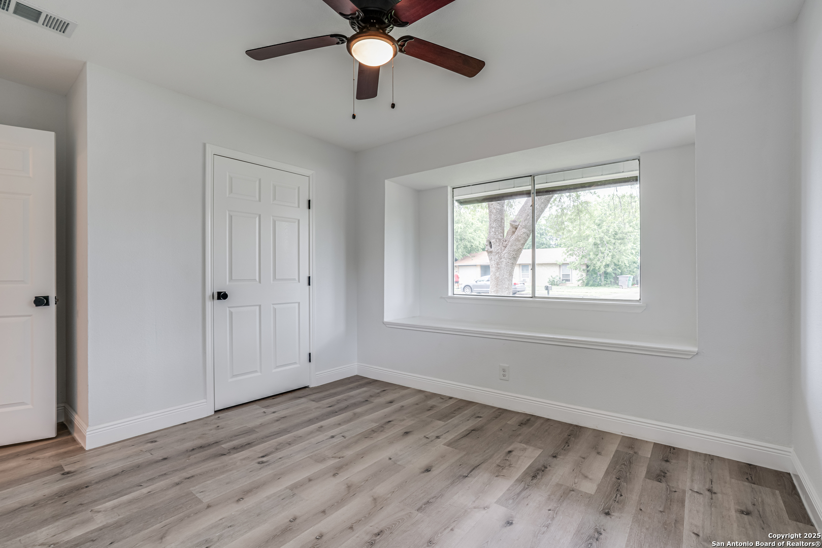 Welcome to this thoughtfully renovated home, where modern finishes meet a warm and inviting atmosphere. An open-concept living area welcomes you upon entry and flows seamlessly into the updated kitchen, complete with striking quartz countertops, stainless steel appliances, and abundant cabinetry. Just off the kitchen, the light-filled dining room creates the perfect space for morning coffee and evening dinners with loved ones. Luxury vinyl flooring throughout adds to this home's appeal, offering both style and easy maintenance. Enjoy generous space in both the primary and secondary bedrooms, while the sleek bathroom impresses with bold black flooring and polished shower tile. Outside, you'll find an extensive backyard with a patio slab and surrounded by mature trees-ideal for relaxing, playing, and entertaining. Schedule your showing today and discover why this move-in ready gem is the ideal blend of comfort, style, and convenience!