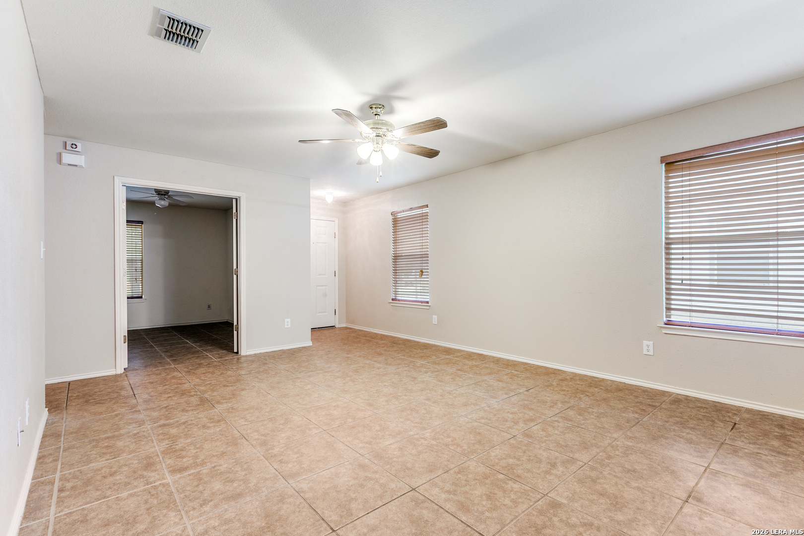 Charming home in the Wildhorse community for sale. This single story three-bedroom two bath home has an office / flex room, open floor plan in the kitchen living/dining room areas, NO carpet all laminate and tiled flooring throughout, approximately 1251sqft, ceiling fans in all rooms, gorgeous wood like blinds, new kitchen sink, faucet and garbage disposal, both bathrooms have new toilets, mirrors and light fixtures, HVAC and roof replaced about 5 years ago, two car garage, water softener, wash/dryer conveys with refrigerator. The primary room is away from the other bedrooms, laundry area inside home, backyard is a perfect size with a greenbelt for privacy. You will be minutes from 1604, schools, restaurants, shopping centers, Six Flags and SeaWorld. Low annual HOA fee ($255) offering a playground, walking trails, basketball courts and BBQ area. Schedule your showing now. Priced to sell!