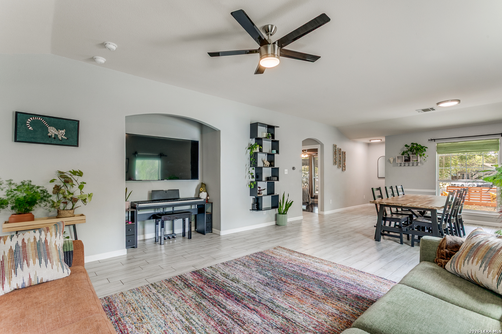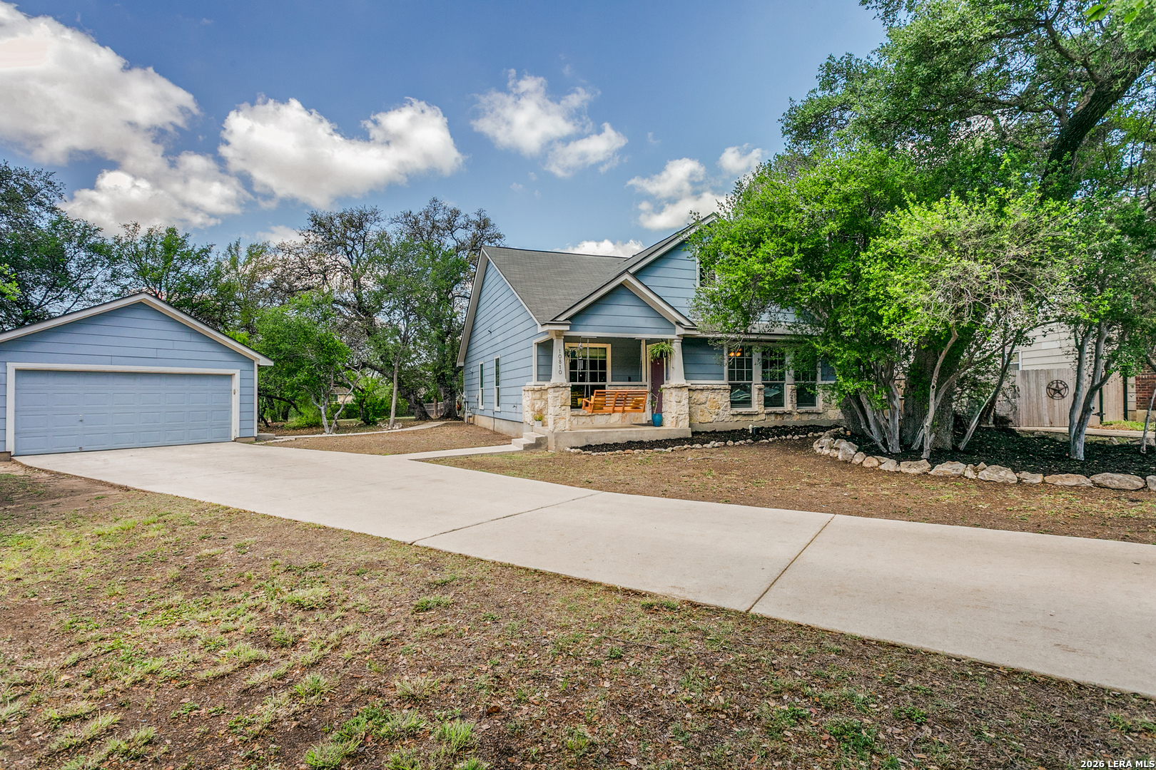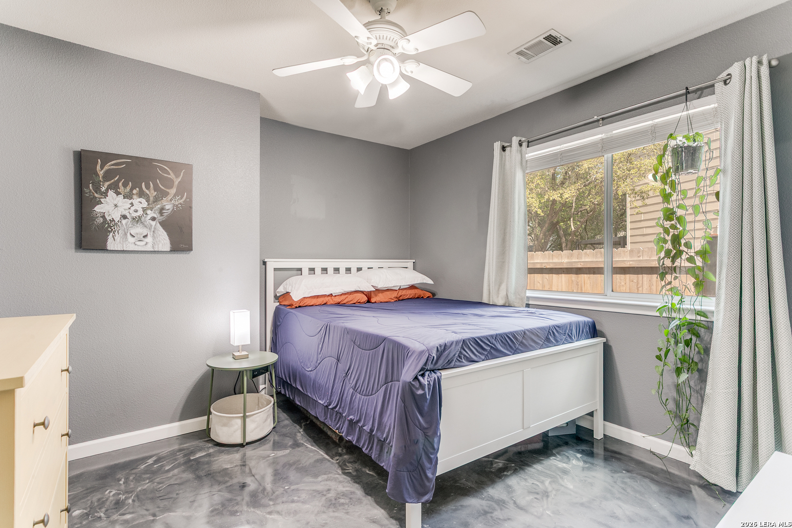 Welcome to your peaceful retreat in San Antonio! Nestled on an expansive .42-acre lot shaded by mature trees, this charming single-story home offers the perfect blend of space, comfort, and everyday functionality. Inside, you'll find 3 bedrooms and 2 full baths across 1,545 square feet, featuring high ceilings and an open-concept layout that creates a bright, airy feel from the moment you walk in. The living, dining, and kitchen areas flow seamlessly-ideal for both relaxing evenings and gathering with family and friends. The home showcases durable ceramic tile flooring in the main areas and unique epoxy concrete floors in the bedrooms, combining style with low-maintenance living. Large windows invite in natural light and provide beautiful views of the tree-filled backyard, giving the home a warm, welcoming atmosphere. Step outside and enjoy the oversized yard with plenty of room to play, entertain, or simply unwind under the shade of mature trees-a rare find at this price point. Located in a family-friendly community, residents enjoy access to a neighborhood amenity center featuring a pool, park, and clubhouse, adding even more value to this already inviting home. Comfort, space, and a true sense of community-this one checks all the boxes.