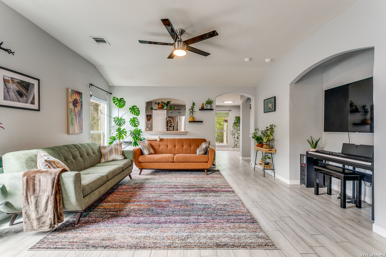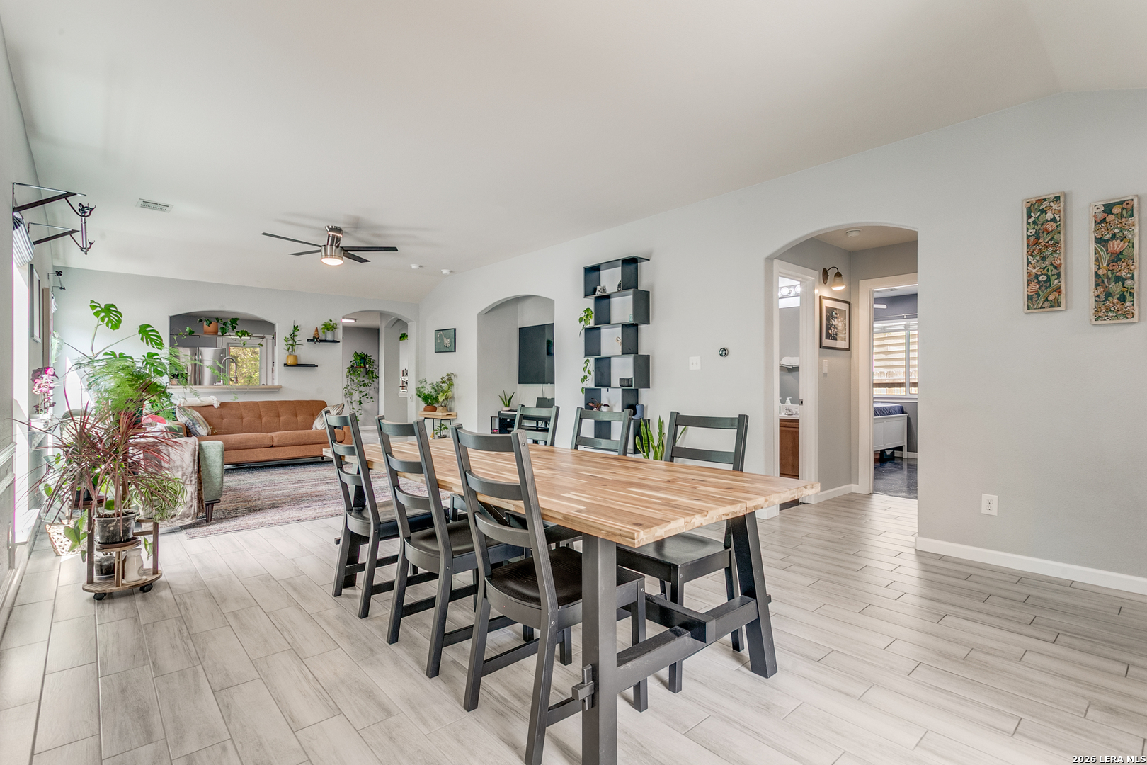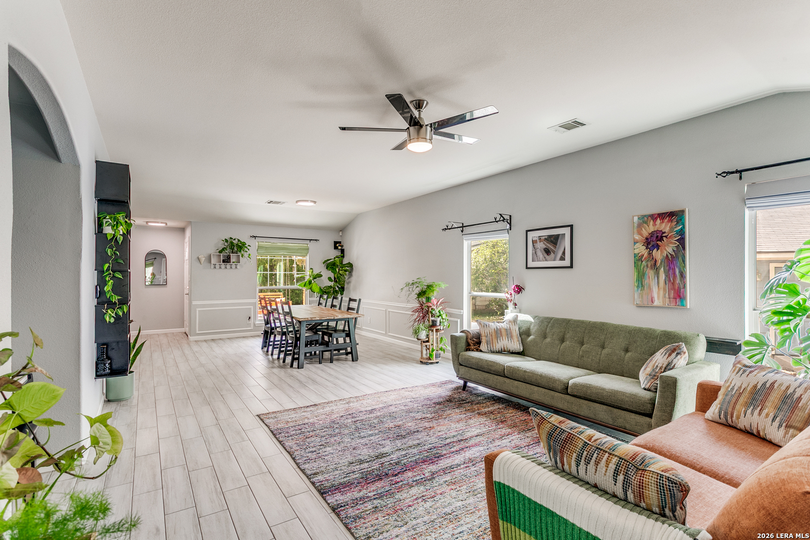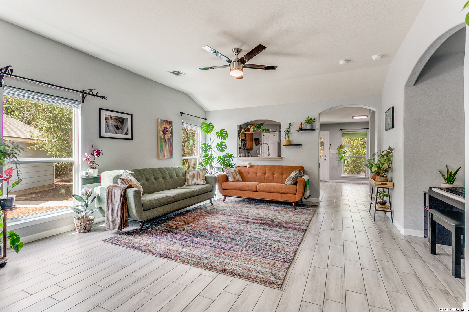 Welcome to your peaceful retreat in San Antonio! Nestled on an expansive .42-acre lot shaded by mature trees, this charming single-story home offers the perfect blend of space, comfort, and everyday functionality. Inside, you'll find 3 bedrooms and 2 full baths across 1,545 square feet, featuring high ceilings and an open-concept layout that creates a bright, airy feel from the moment you walk in. The living, dining, and kitchen areas flow seamlessly-ideal for both relaxing evenings and gathering with family and friends. The home showcases durable ceramic tile flooring in the main areas and unique epoxy concrete floors in the bedrooms, combining style with low-maintenance living. Large windows invite in natural light and provide beautiful views of the tree-filled backyard, giving the home a warm, welcoming atmosphere. Step outside and enjoy the oversized yard with plenty of room to play, entertain, or simply unwind under the shade of mature trees-a rare find at this price point. Located in a family-friendly community, residents enjoy access to a neighborhood amenity center featuring a pool, park, and clubhouse, adding even more value to this already inviting home. Comfort, space, and a true sense of community-this one checks all the boxes.