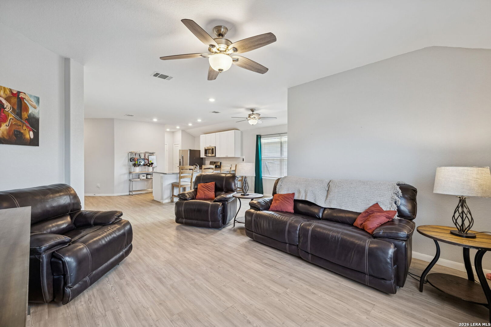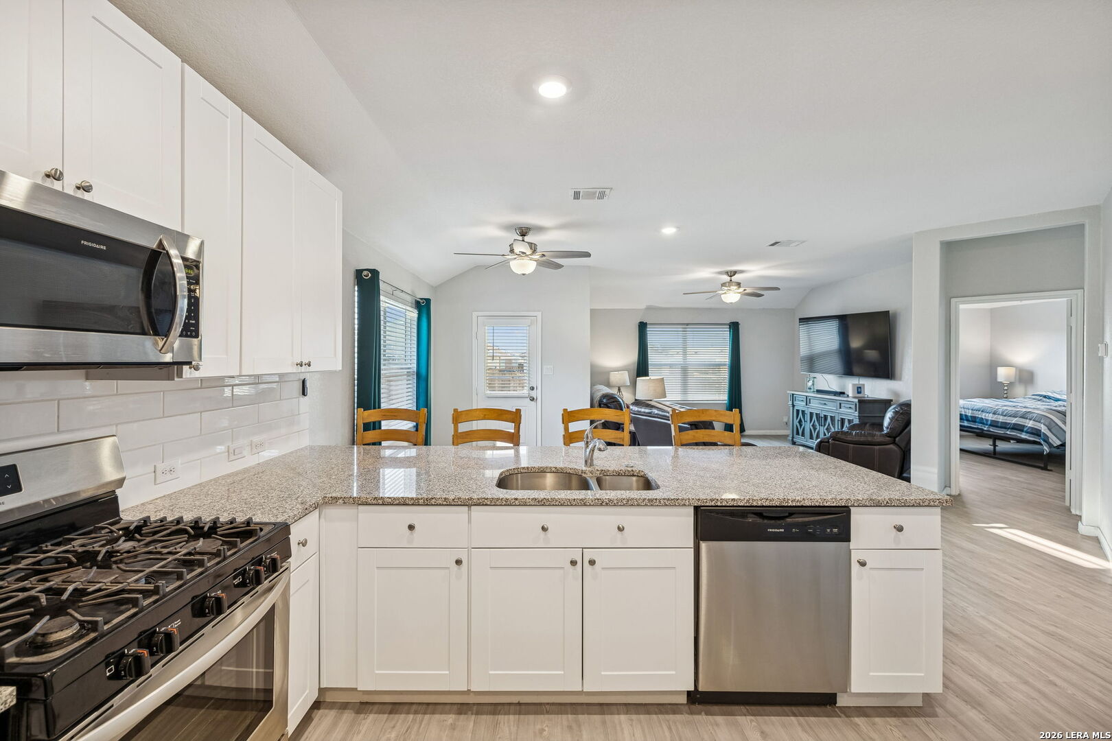 Better than new, ready for real life, right now. This well-maintained single-story home delivers the benefits of newer construction with upgrades already complete. Built just three years ago, it offers smart design, energy efficiency and a truly move-in-ready experience. The open-concept layout connects the living and dining areas with abundant natural light, while the granite kitchen with stainless steel appliances anchors the space for everyday living and easy entertaining. Practical features like a water softener and gutters are in place, saving time and expense after move-in. Just around the corner, enjoy a private neighborhood park with a playground and splash pad, an easy extension of your living space. Conveniently located near I-10 and Loop 1604, with straightforward access to Randolph Air Force Base, Fort Sam Houston, downtown San Antonio, and major employers, this home offers comfort, convenience, and peace of mind.