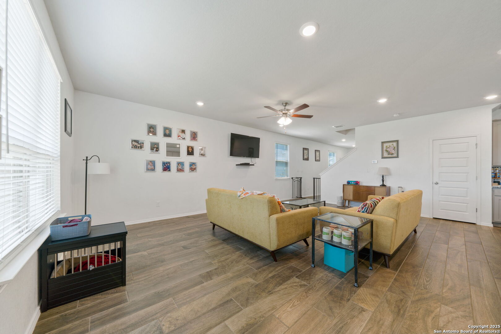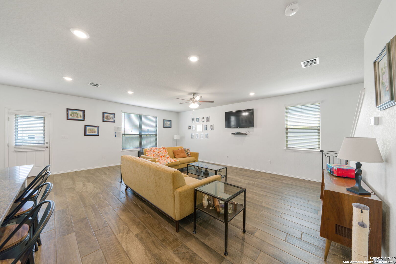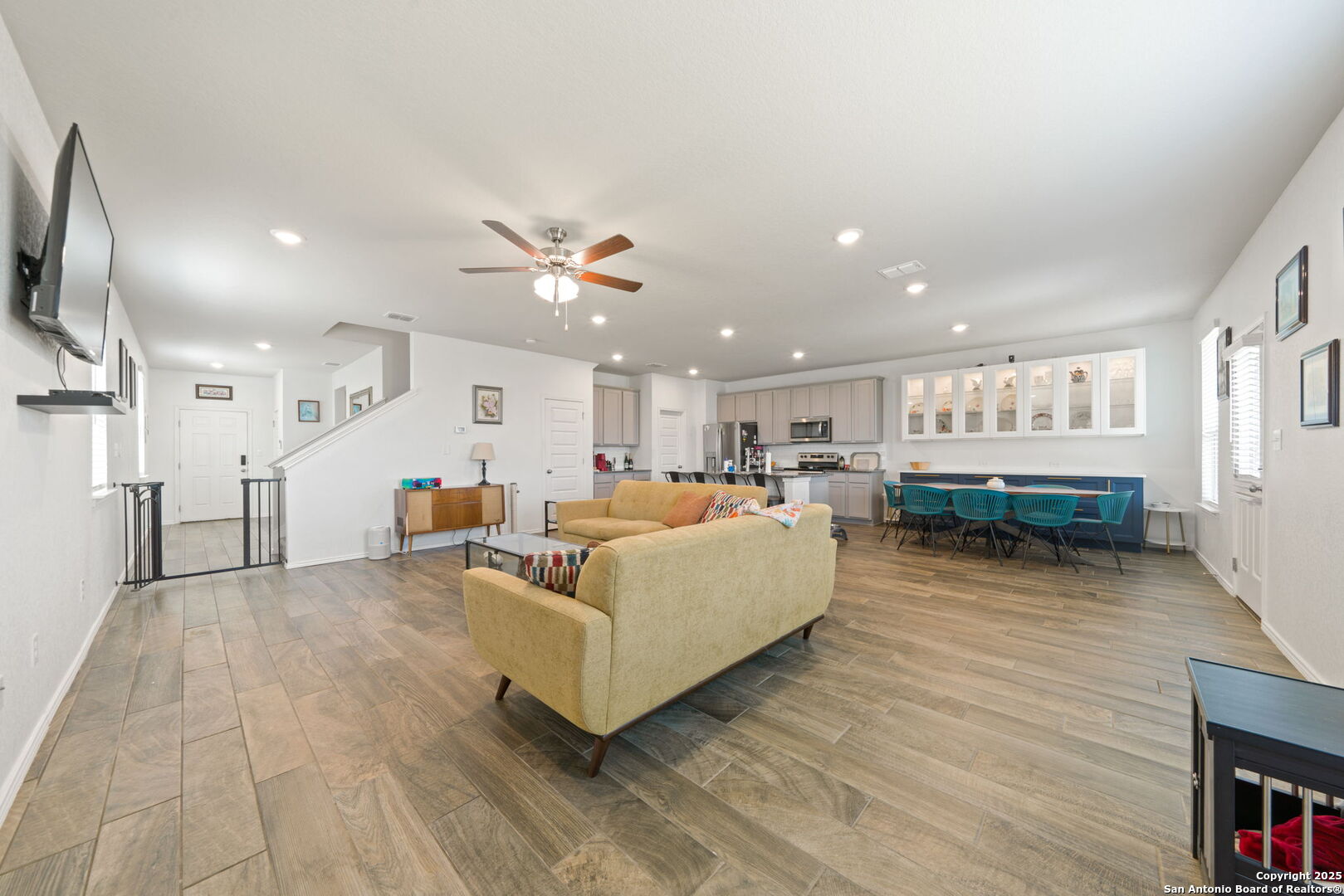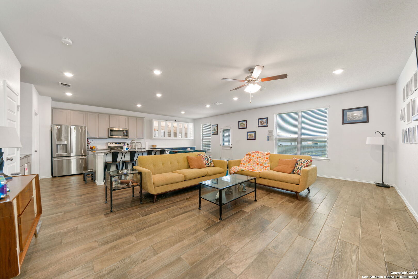 Gorgeous 4-bedroom, 3-bathroom home now available in the highly sought-after Millican Grove subdivision in Converse, TX. From the moment you step inside, you'll be welcomed by an inviting entryway that opens to a spacious, open-concept living room, kitchen, and breakfast area-all highlighted by stylish ceramic plank tile flooring throughout the downstairs. The kitchen is a true chef's dream, featuring granite countertops, a custom tiled backsplash, upgraded shaker-style cabinetry, and sleek stainless steel appliances. The breakfast area includes additional cabinetry and counter space, complete with built-in LED lighting-perfect for entertaining or everyday use. Upstairs, you'll find a generously sized master suite with a spa-like en-suite bathroom that offers dual vanities, a large walk-in shower, and an expansive walk-in closet. Two additional bedrooms, a full secondary bathroom, and a spacious game room are also located upstairs. For added flexibility, a fourth bedroom and third full bathroom are conveniently located on the first floor. Step outside to enjoy the oversized backyard with a covered patio-ideal for weekend BBQs or relaxing evenings. Additional highlights include solar panels to help reduce electric bills and numerous upgrades throughout the home. With easy access to I-10, Loop 1604, The Forum, and Randolph AFB, this home combines comfort, style, and convenience. A true pleasure to show!