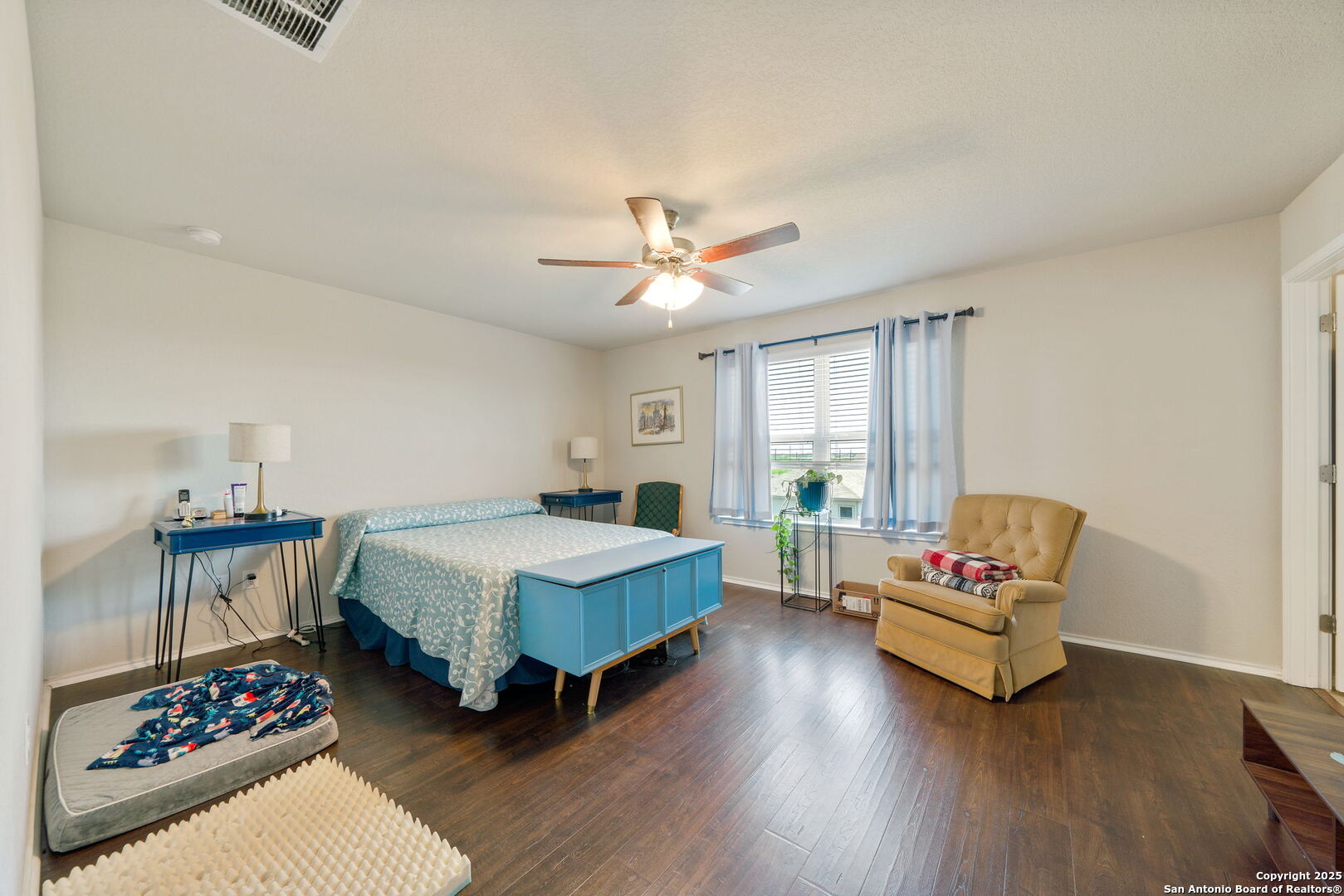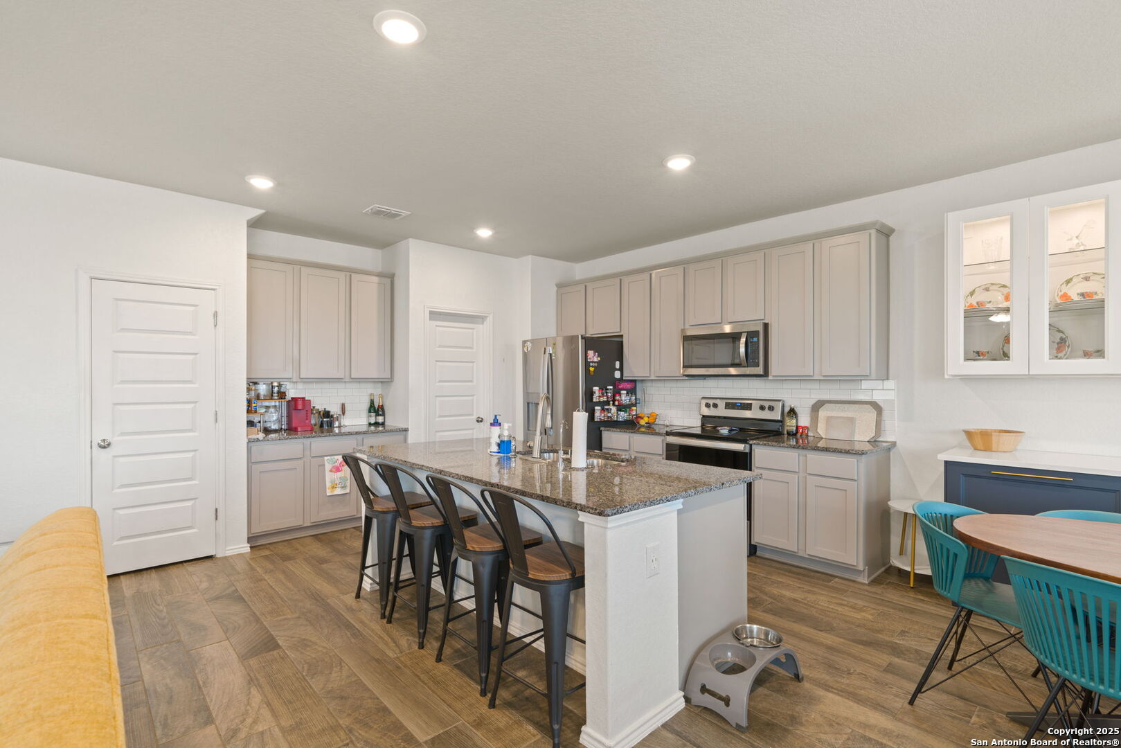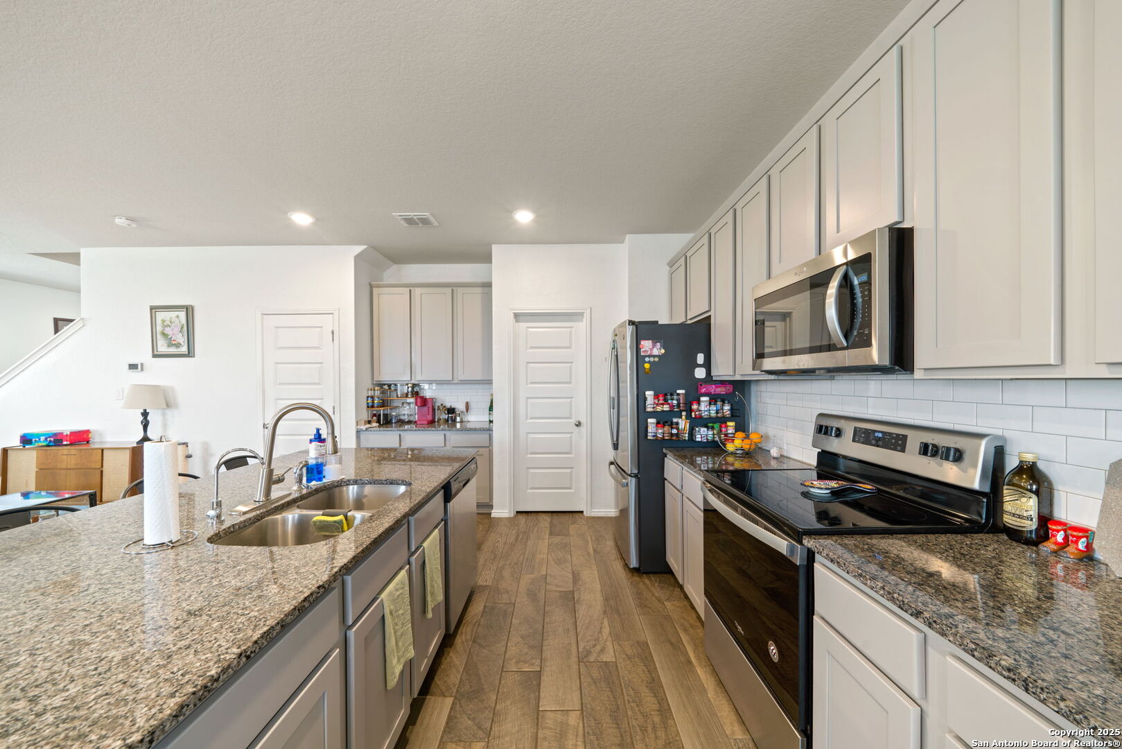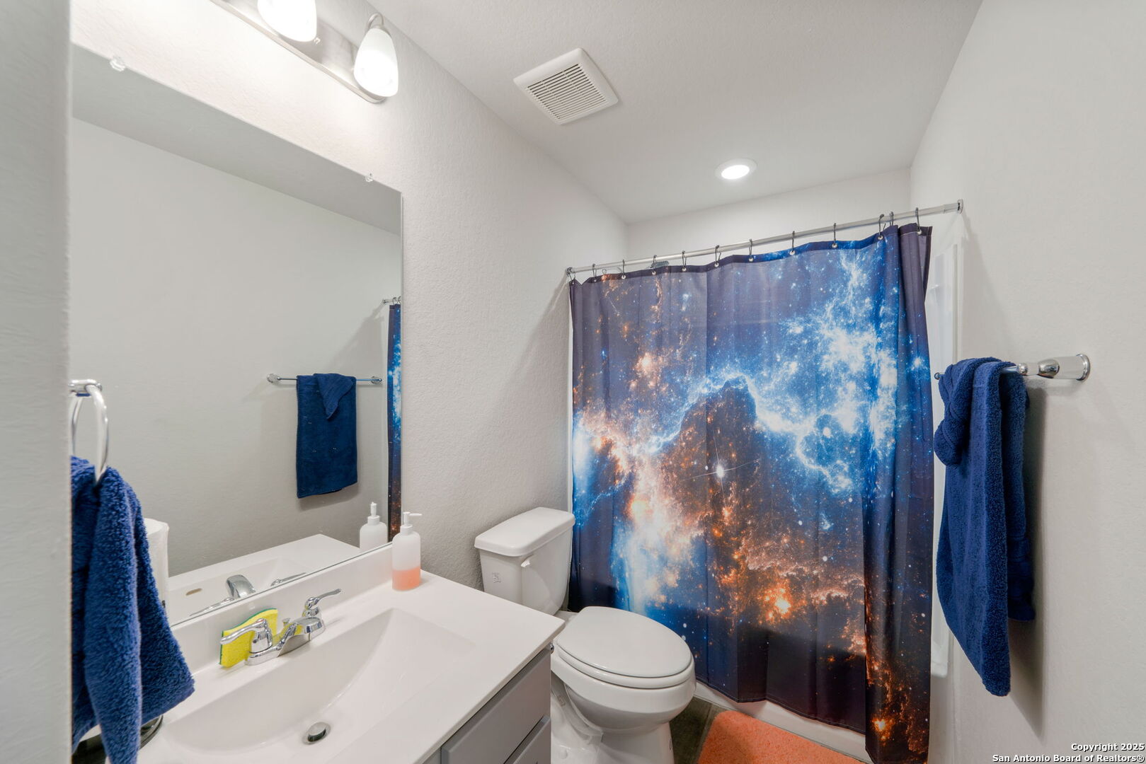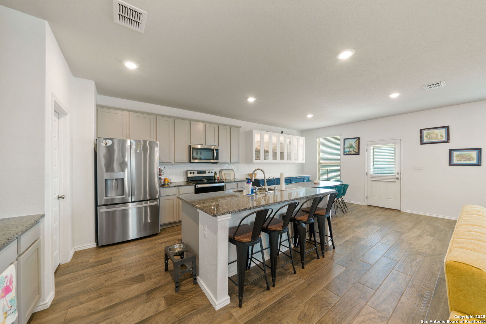 Gorgeous 4-bedroom, 3-bathroom home now available in the highly sought-after Millican Grove subdivision in Converse, TX. From the moment you step inside, you'll be welcomed by an inviting entryway that opens to a spacious, open-concept living room, kitchen, and breakfast area-all highlighted by stylish ceramic plank tile flooring throughout the downstairs. The kitchen is a true chef's dream, featuring granite countertops, a custom tiled backsplash, upgraded shaker-style cabinetry, and sleek stainless steel appliances. The breakfast area includes additional cabinetry and counter space, complete with built-in LED lighting-perfect for entertaining or everyday use. Upstairs, you'll find a generously sized master suite with a spa-like en-suite bathroom that offers dual vanities, a large walk-in shower, and an expansive walk-in closet. Two additional bedrooms, a full secondary bathroom, and a spacious game room are also located upstairs. For added flexibility, a fourth bedroom and third full bathroom are conveniently located on the first floor. Step outside to enjoy the oversized backyard with a covered patio-ideal for weekend BBQs or relaxing evenings. Additional highlights include solar panels to help reduce electric bills and numerous upgrades throughout the home. With easy access to I-10, Loop 1604, The Forum, and Randolph AFB, this home combines comfort, style, and convenience. A true pleasure to show!