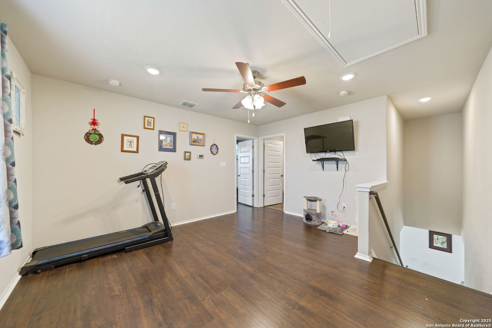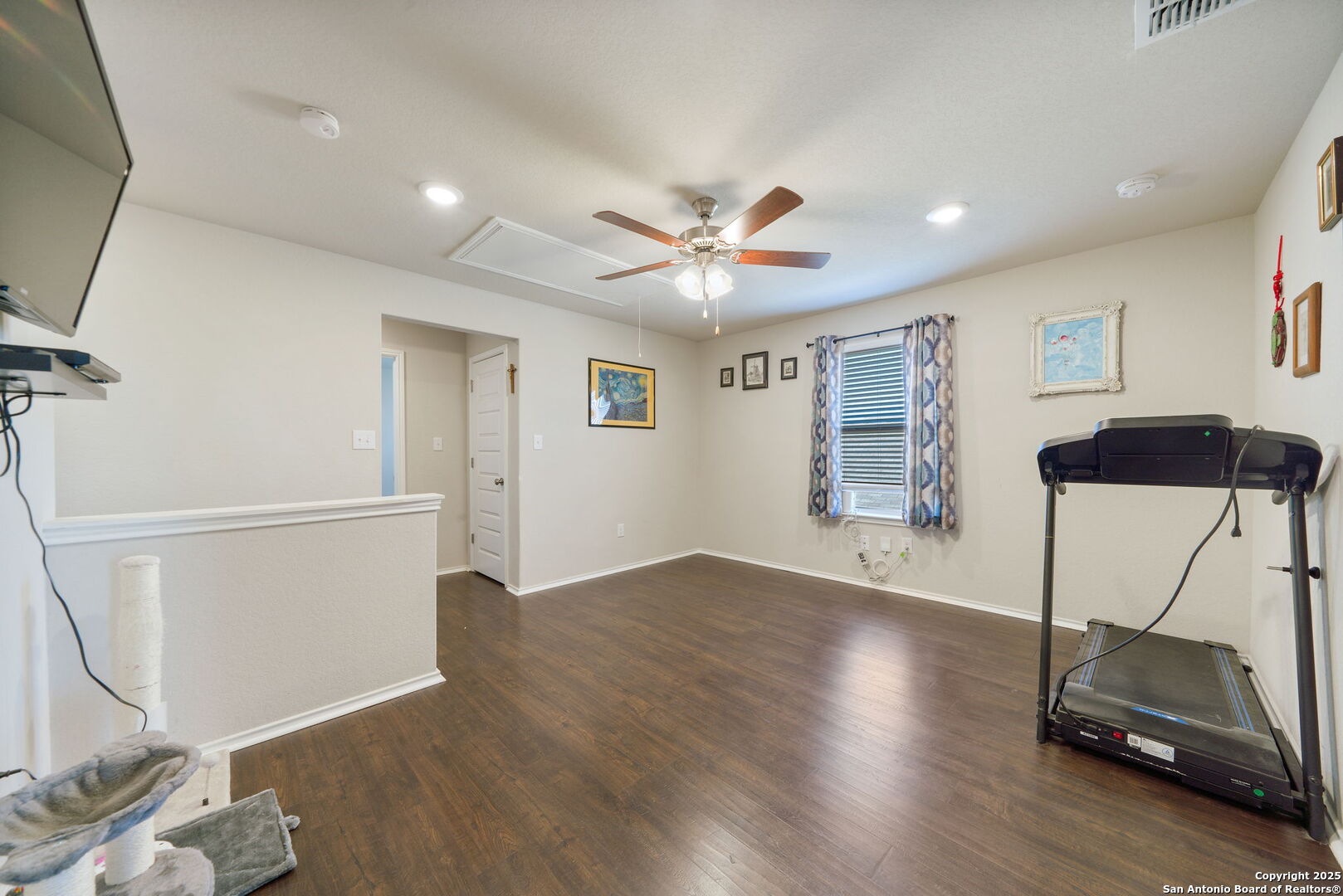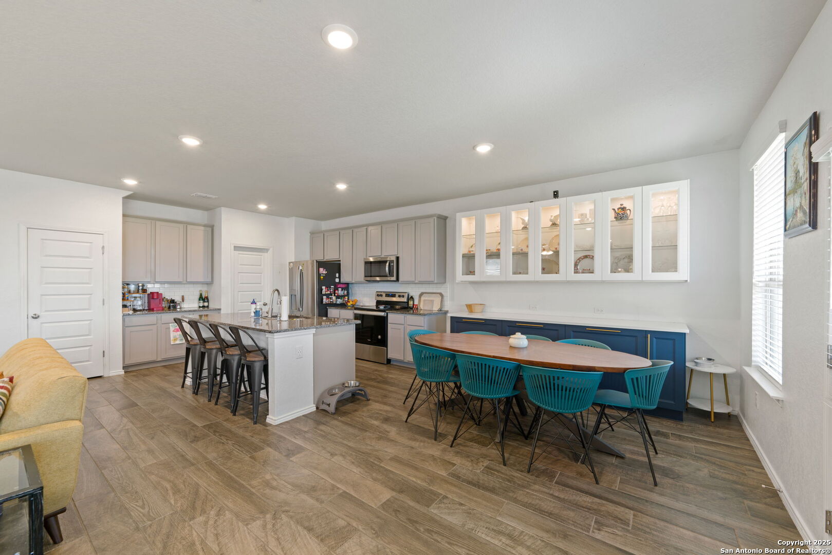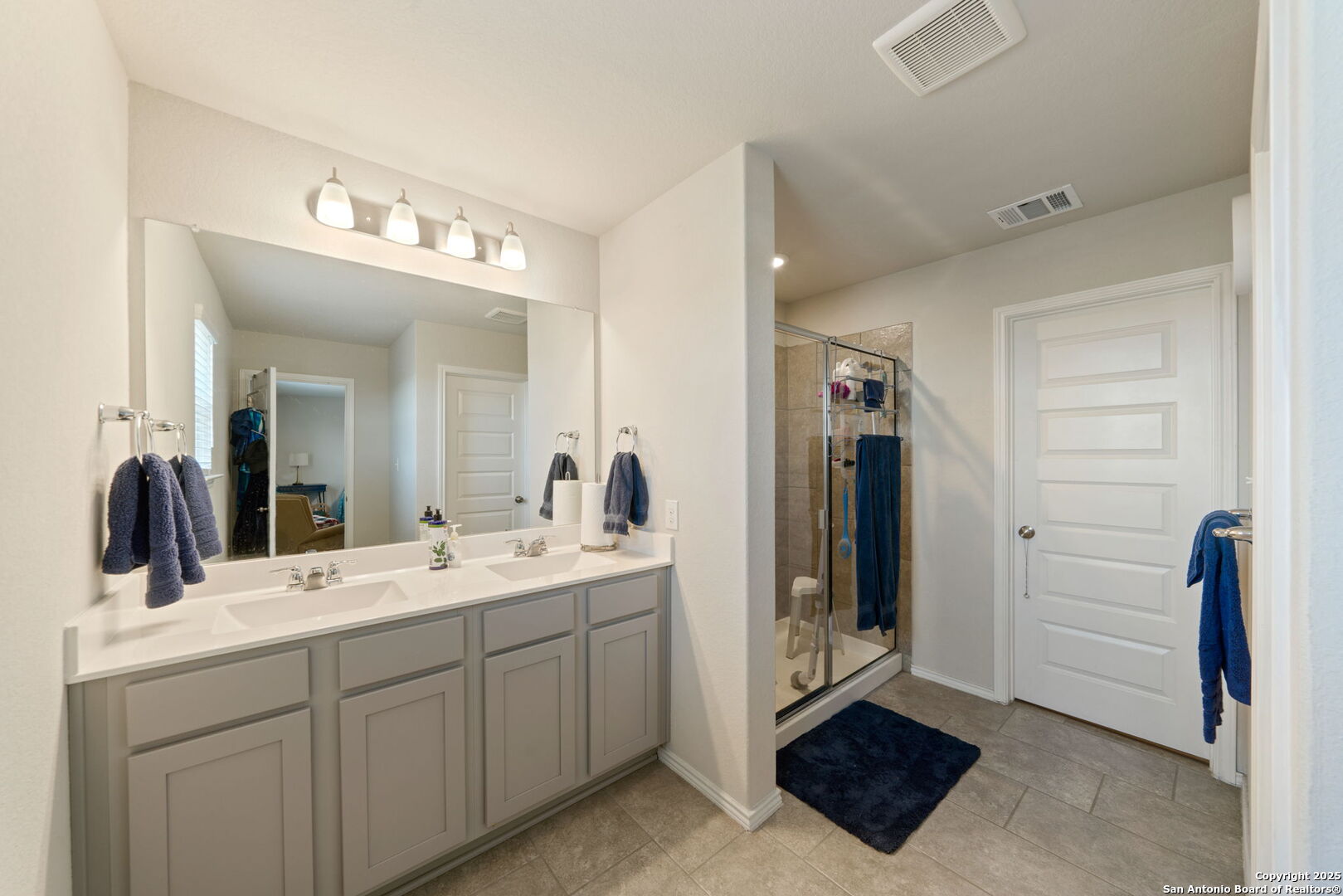 Gorgeous 4-bedroom, 3-bathroom home now available in the highly sought-after Millican Grove subdivision in Converse, TX. From the moment you step inside, you'll be welcomed by an inviting entryway that opens to a spacious, open-concept living room, kitchen, and breakfast area-all highlighted by stylish ceramic plank tile flooring throughout the downstairs. The kitchen is a true chef's dream, featuring granite countertops, a custom tiled backsplash, upgraded shaker-style cabinetry, and sleek stainless steel appliances. The breakfast area includes additional cabinetry and counter space, complete with built-in LED lighting-perfect for entertaining or everyday use. Upstairs, you'll find a generously sized master suite with a spa-like en-suite bathroom that offers dual vanities, a large walk-in shower, and an expansive walk-in closet. Two additional bedrooms, a full secondary bathroom, and a spacious game room are also located upstairs. For added flexibility, a fourth bedroom and third full bathroom are conveniently located on the first floor. Step outside to enjoy the oversized backyard with a covered patio-ideal for weekend BBQs or relaxing evenings. Additional highlights include solar panels to help reduce electric bills and numerous upgrades throughout the home. With easy access to I-10, Loop 1604, The Forum, and Randolph AFB, this home combines comfort, style, and convenience. A true pleasure to show!