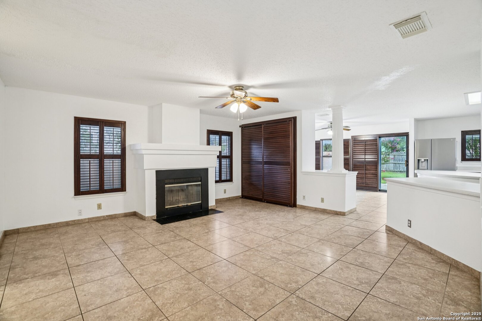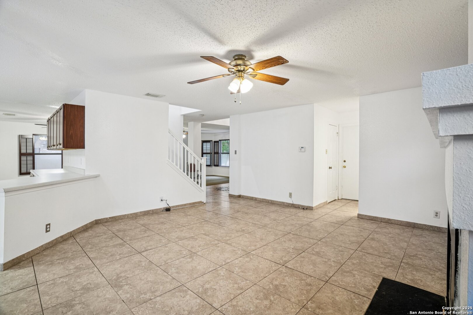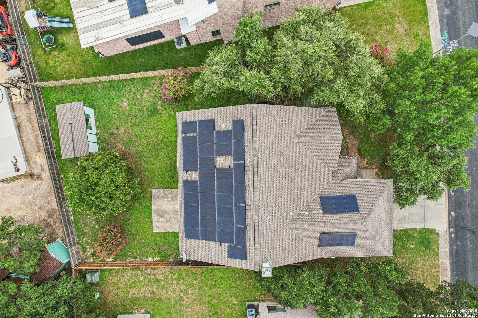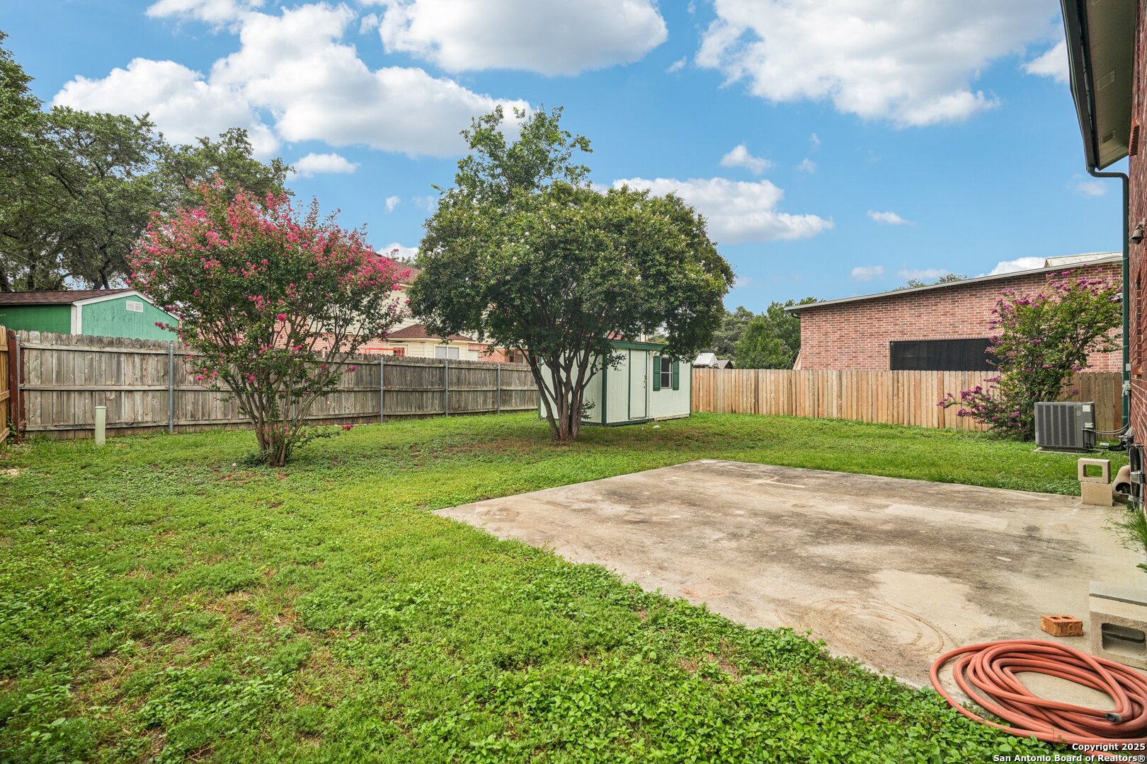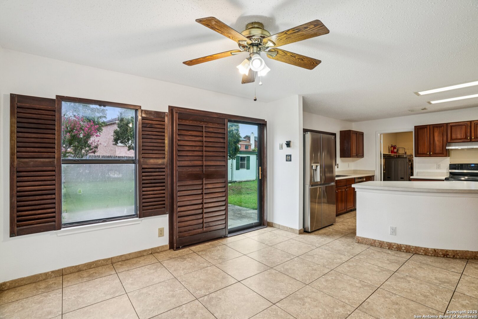 Spacious and thoughtfully upgraded, this 3,300+ sq ft home is located in the thriving Northside ISD with easy access to Loop 1604. Enjoy views of SeaWorld fireworks right from your bedroom windows! Inside, you'll find porcelain tile flooring, fresh interior paint, plantation shutters, and three versatile living areas-perfect for entertaining or relaxing. The kitchen features stainless steel appliances, and the home is equipped with a soft water system for added comfort. Accessibility is a priority with a stair lift and walk-in shower. Outside, an added slab and storage shed complete this exceptional property. Roomy, refined, and ready to welcome you home.