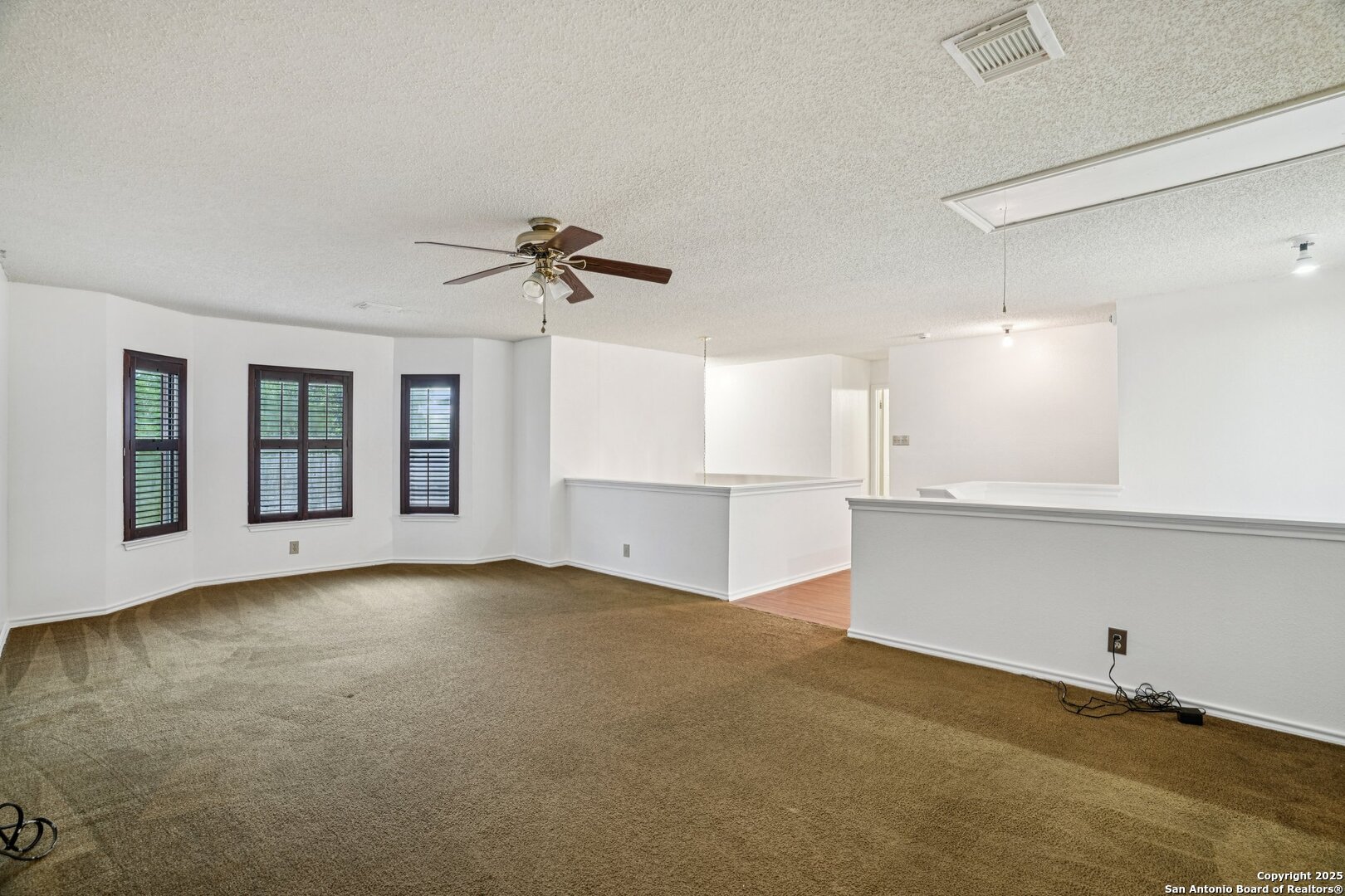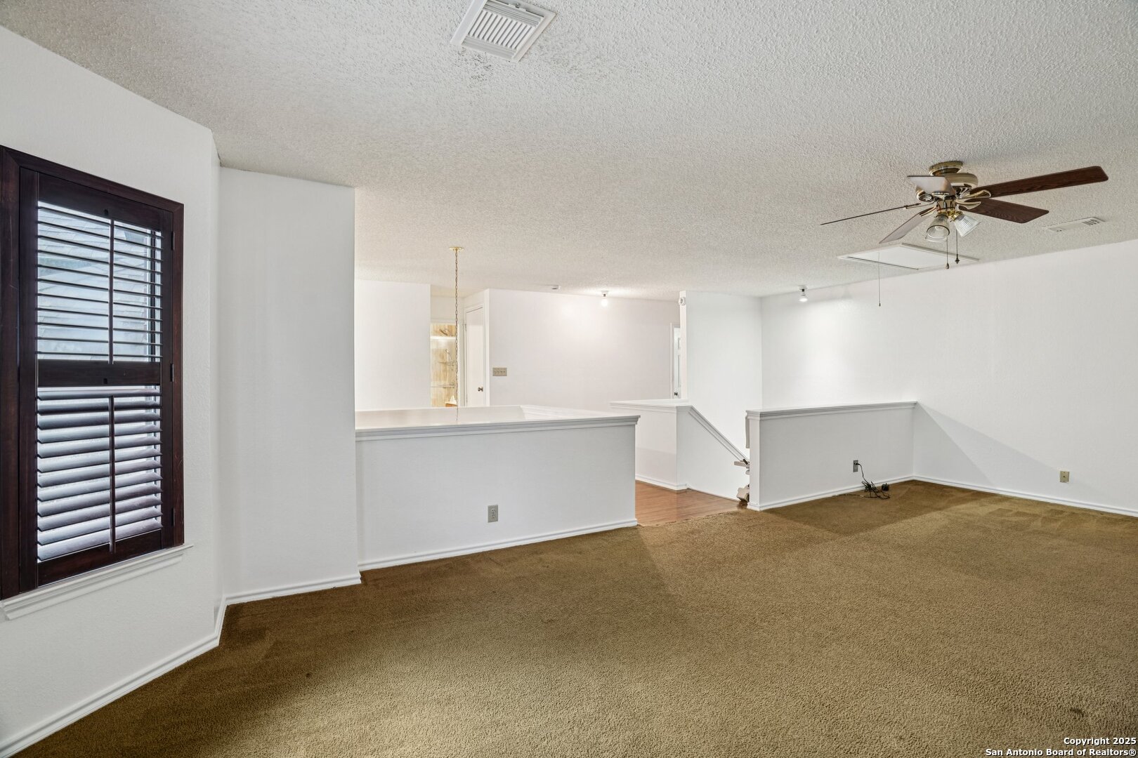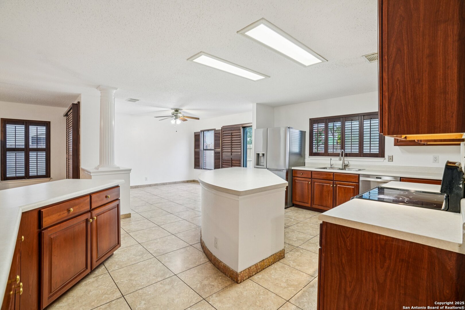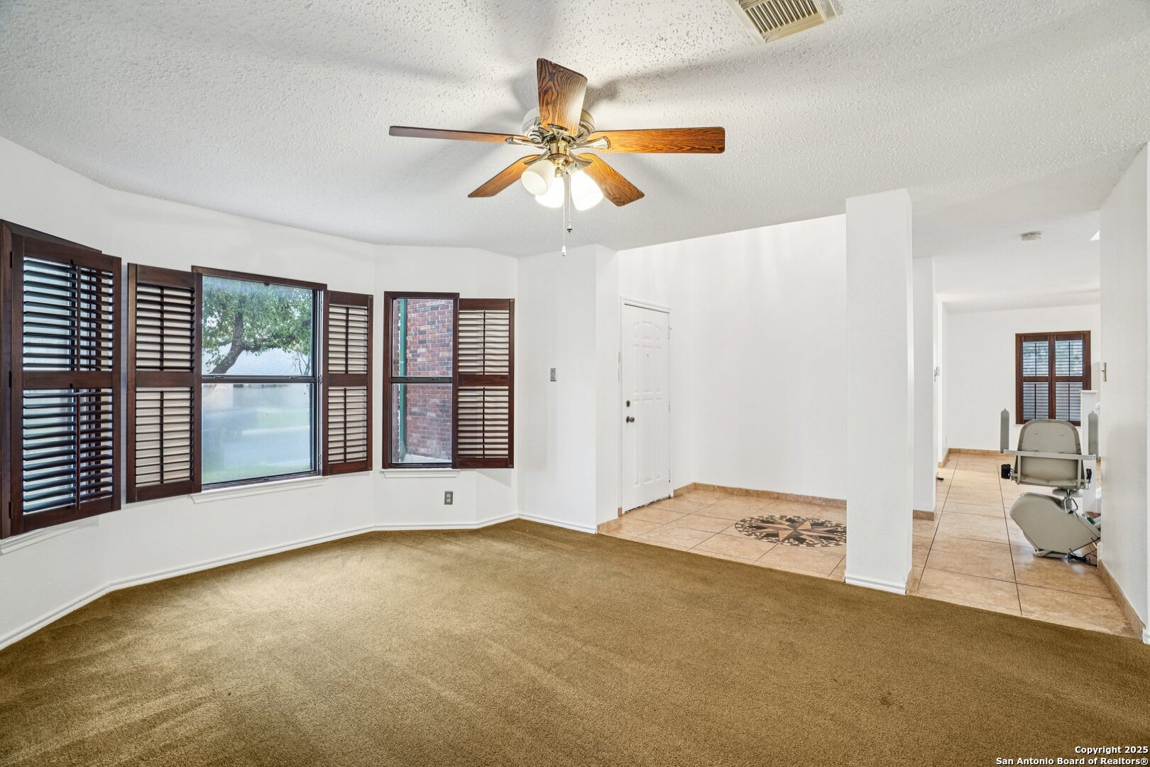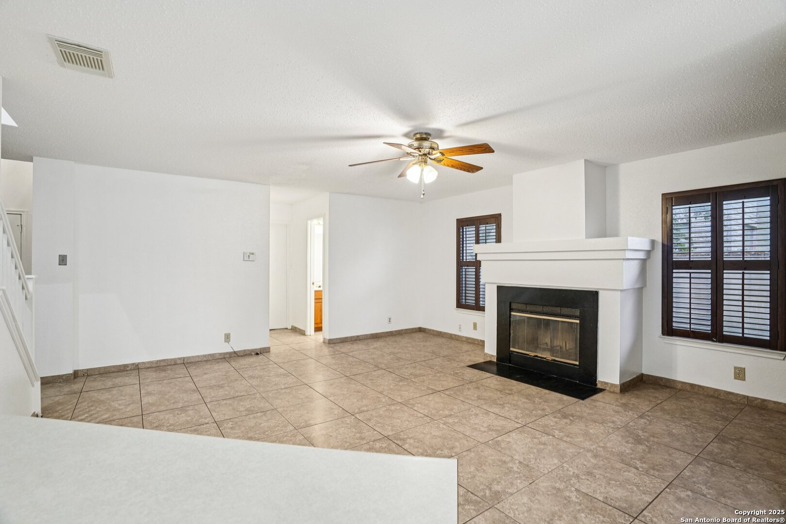 Spacious and thoughtfully upgraded, this 3,300+ sq ft home is located in the thriving Northside ISD with easy access to Loop 1604. Enjoy views of SeaWorld fireworks right from your bedroom windows! Inside, you'll find porcelain tile flooring, fresh interior paint, plantation shutters, and three versatile living areas-perfect for entertaining or relaxing. The kitchen features stainless steel appliances, and the home is equipped with a soft water system for added comfort. Accessibility is a priority with a stair lift and walk-in shower. Outside, an added slab and storage shed complete this exceptional property. Roomy, refined, and ready to welcome you home.