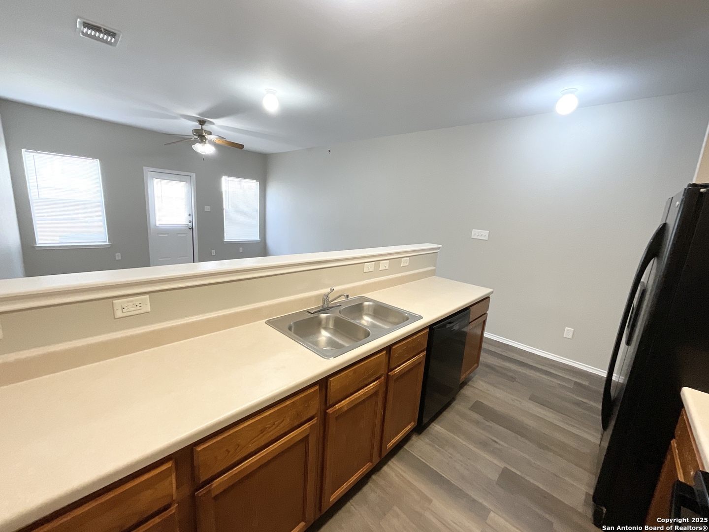 Welcome to this lovely corner lot unit, easy and accessible. This home has brand new luxury vinyl flooring & fresh paint throughout- no carpet! All 3 bedrooms are upstairs, each with a ceiling fan. The kitchen opens to the living area and has all the appliances you need to cook like a pro at home. Extra storage provided in the hallways downstairs as well as a pantry. This home has a guest restroom downstairs, and 2 full baths upstairs. There is a single car garage for your vehicle and extra storage. Backyard with privacy fence, and side yard. Close to HEB, Randolph Air Force Base, and The Forum shopping center. There is a separate $100 water and trash fee added to rent.