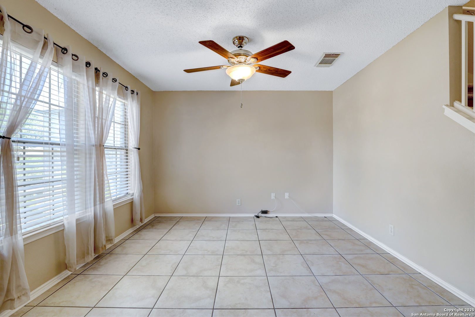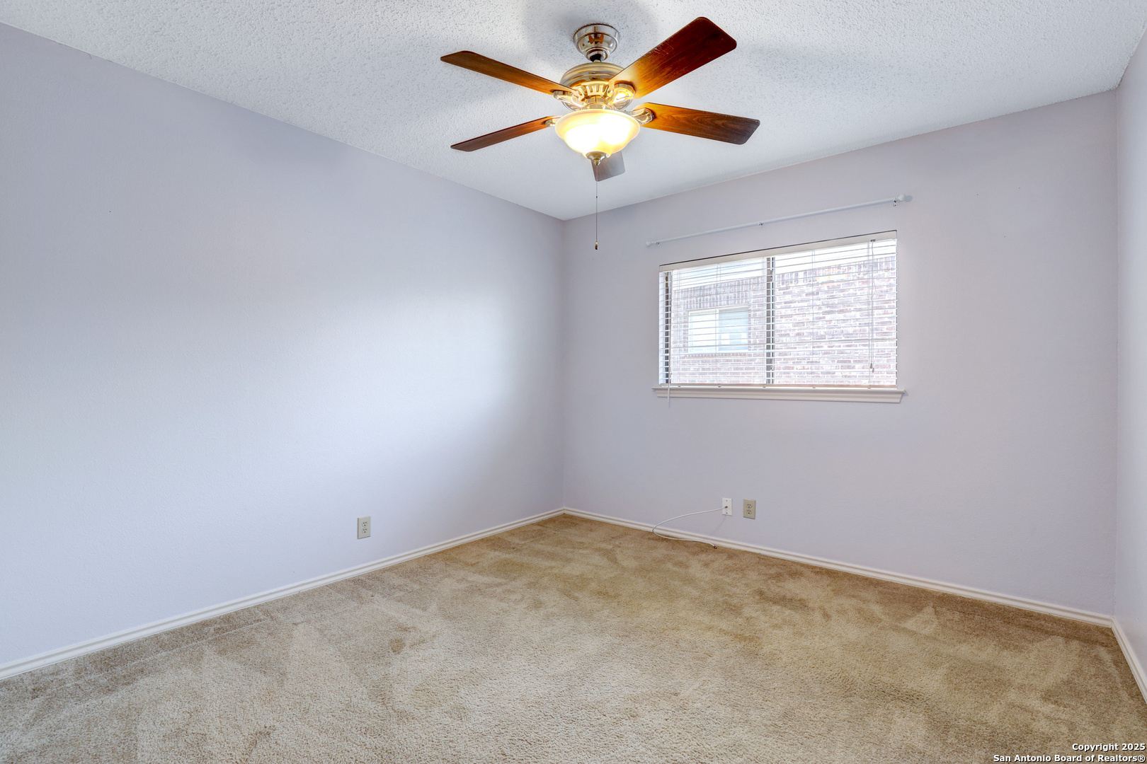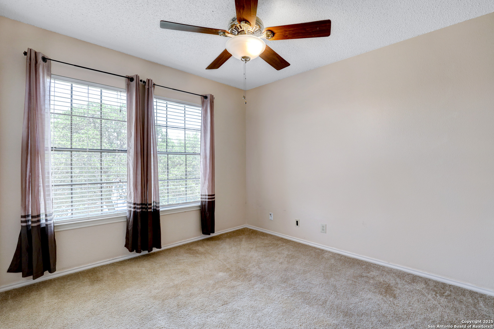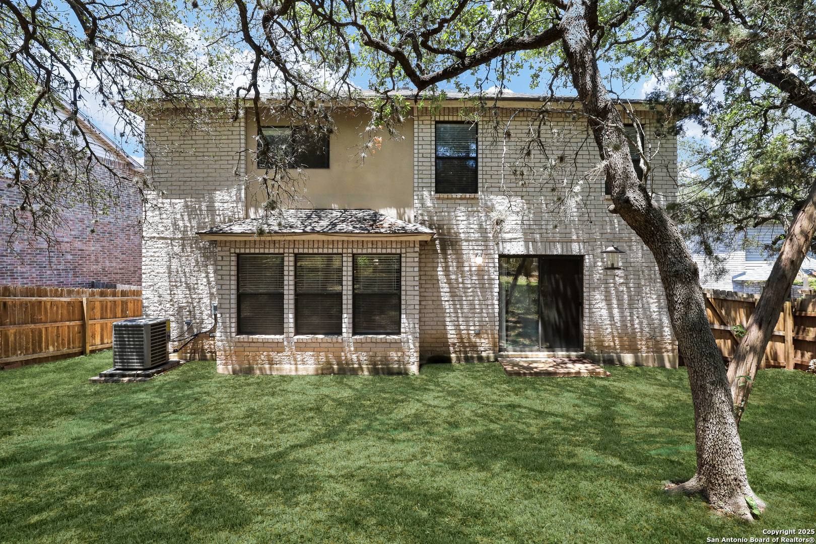 Nestled in the Stonefield subdivision on a cul-de-sac, this two-story gem offers a blend of comfort, space, and privacy. With no direct rear neighbors and a generously sized backyard filled with mature trees, you'll enjoy a peaceful outdoor retreat. Inside, the first floor features an open-concept layout with no carpet, multiple living areas, and a cozy breakfast nook. The kitchen includes a refrigerator for added convenience. Upstairs, all bedrooms are equipped with ceiling fans, including a spacious primary suite complete with double sinks and a walk-in closet. This thoughtfully designed home provides room to relax, work, or entertain-both indoors and out. Conveniently located with quick access to Lackland AFB, shopping, dining, and more.
