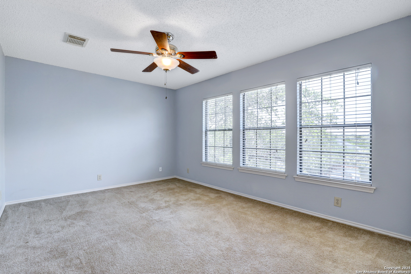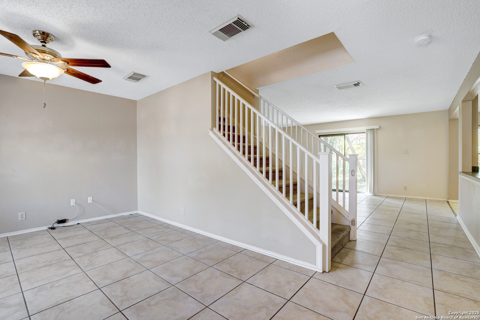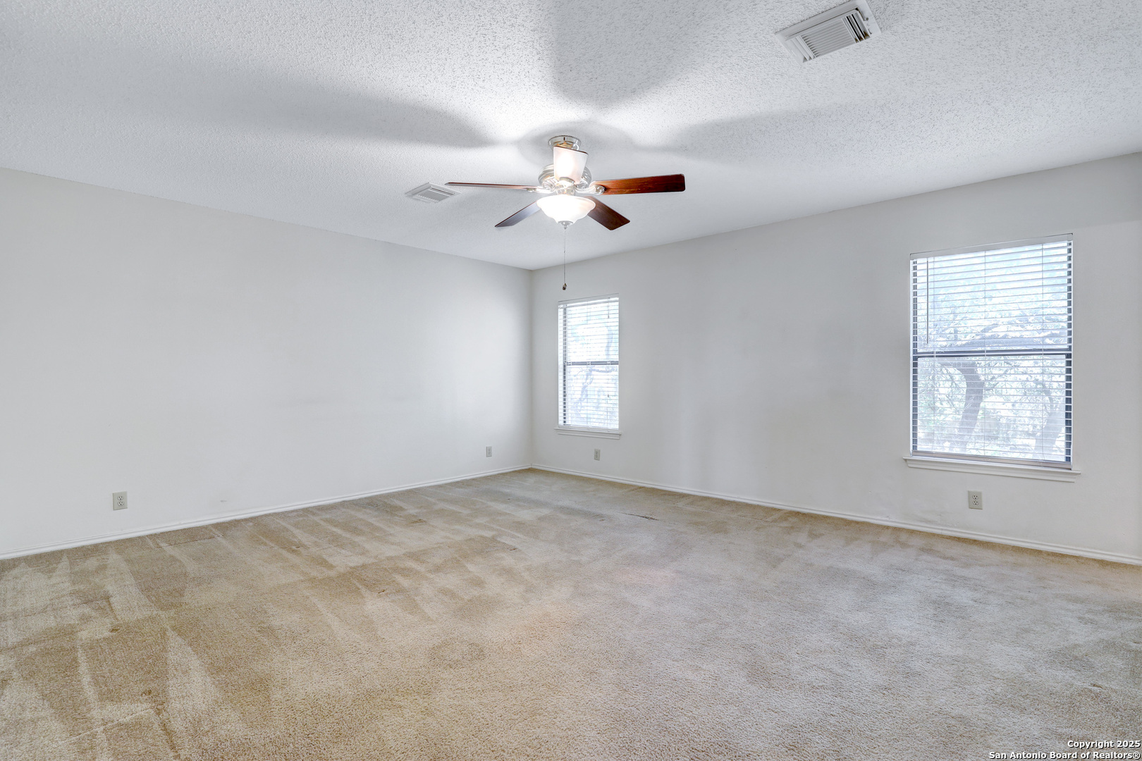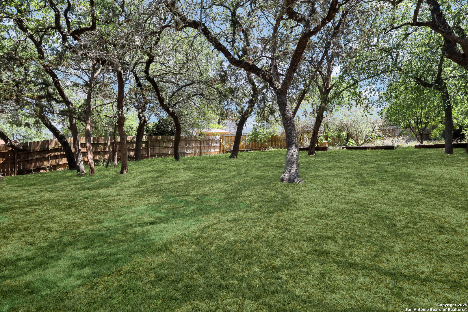 Nestled in the Stonefield subdivision on a cul-de-sac, this two-story gem offers a blend of comfort, space, and privacy. With no direct rear neighbors and a generously sized backyard filled with mature trees, you'll enjoy a peaceful outdoor retreat. Inside, the first floor features an open-concept layout with no carpet, multiple living areas, and a cozy breakfast nook. The kitchen includes a refrigerator for added convenience. Upstairs, all bedrooms are equipped with ceiling fans, including a spacious primary suite complete with double sinks and a walk-in closet. This thoughtfully designed home provides room to relax, work, or entertain-both indoors and out. Conveniently located with quick access to Lackland AFB, shopping, dining, and more.