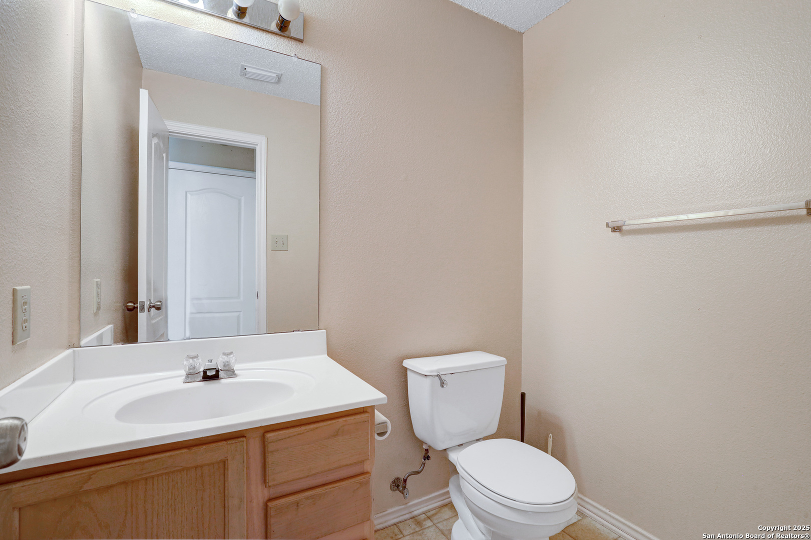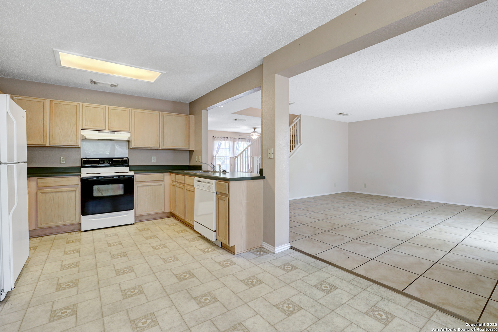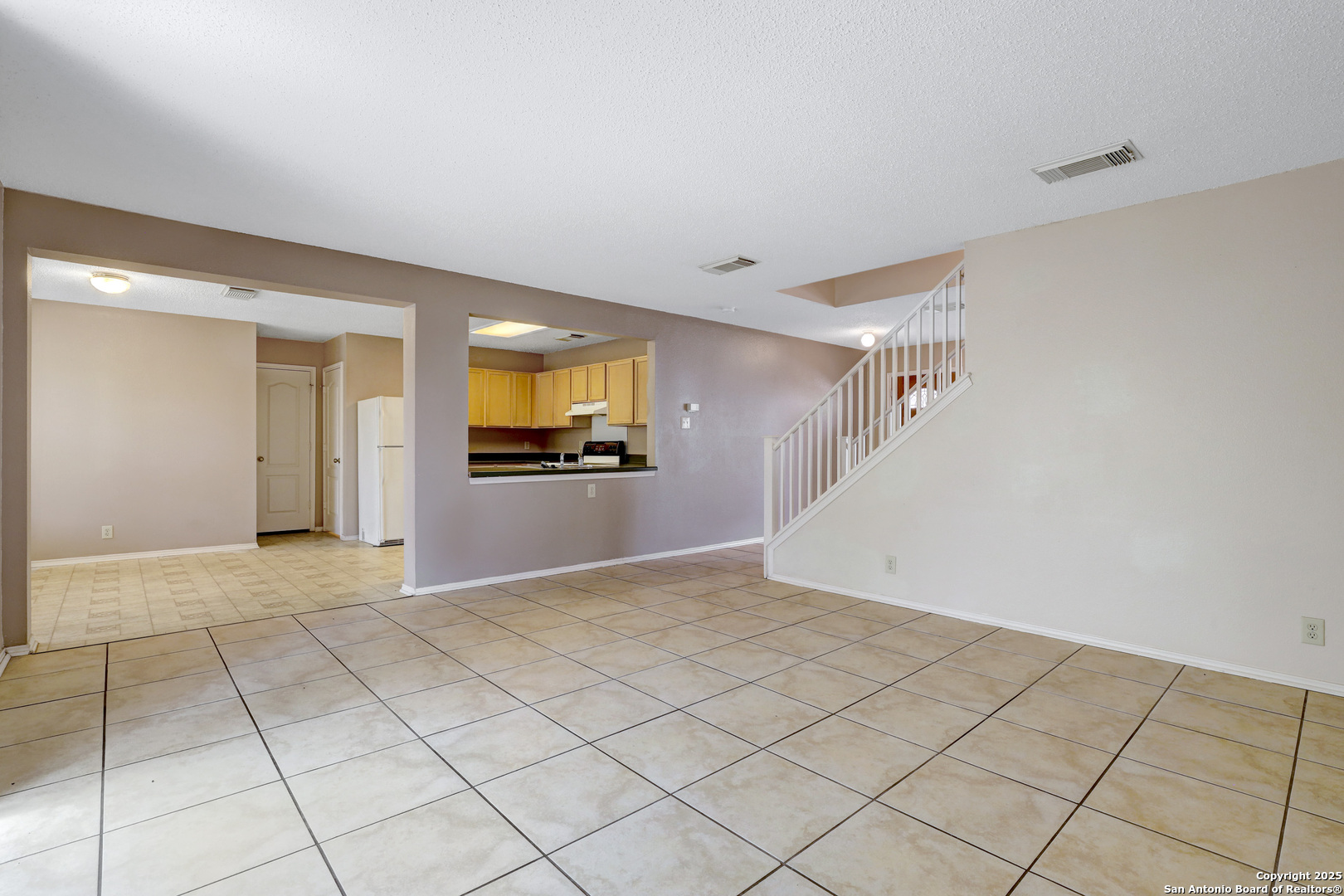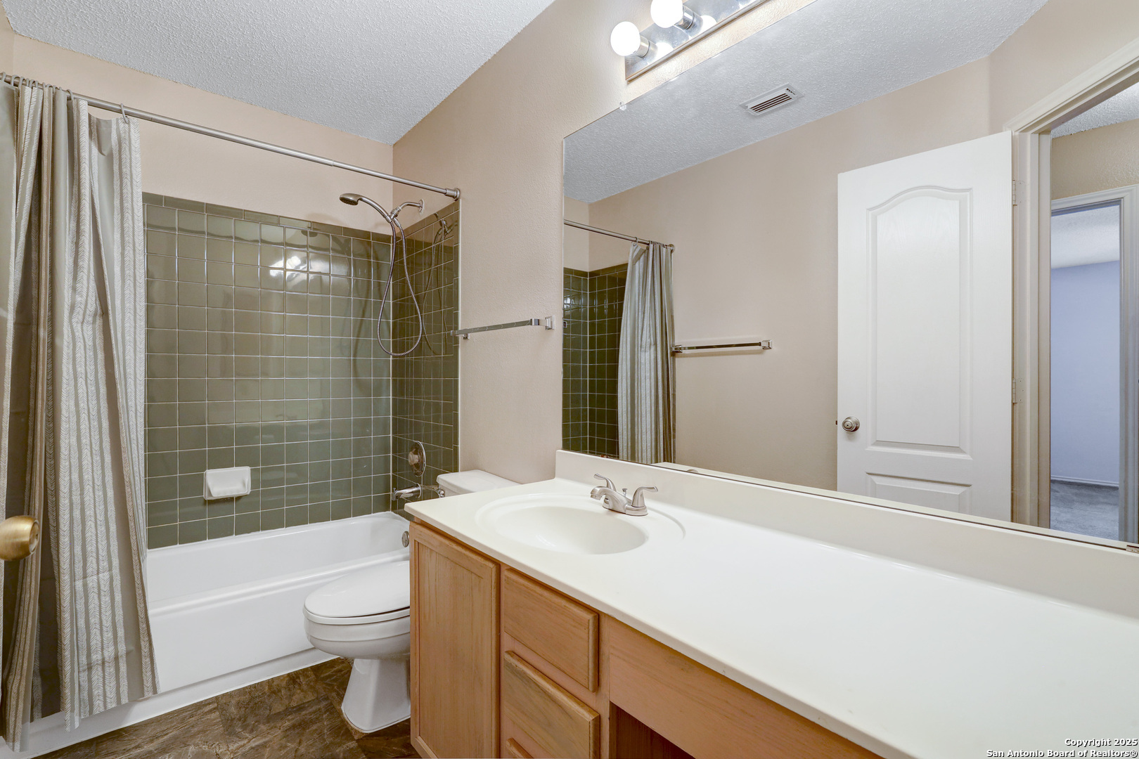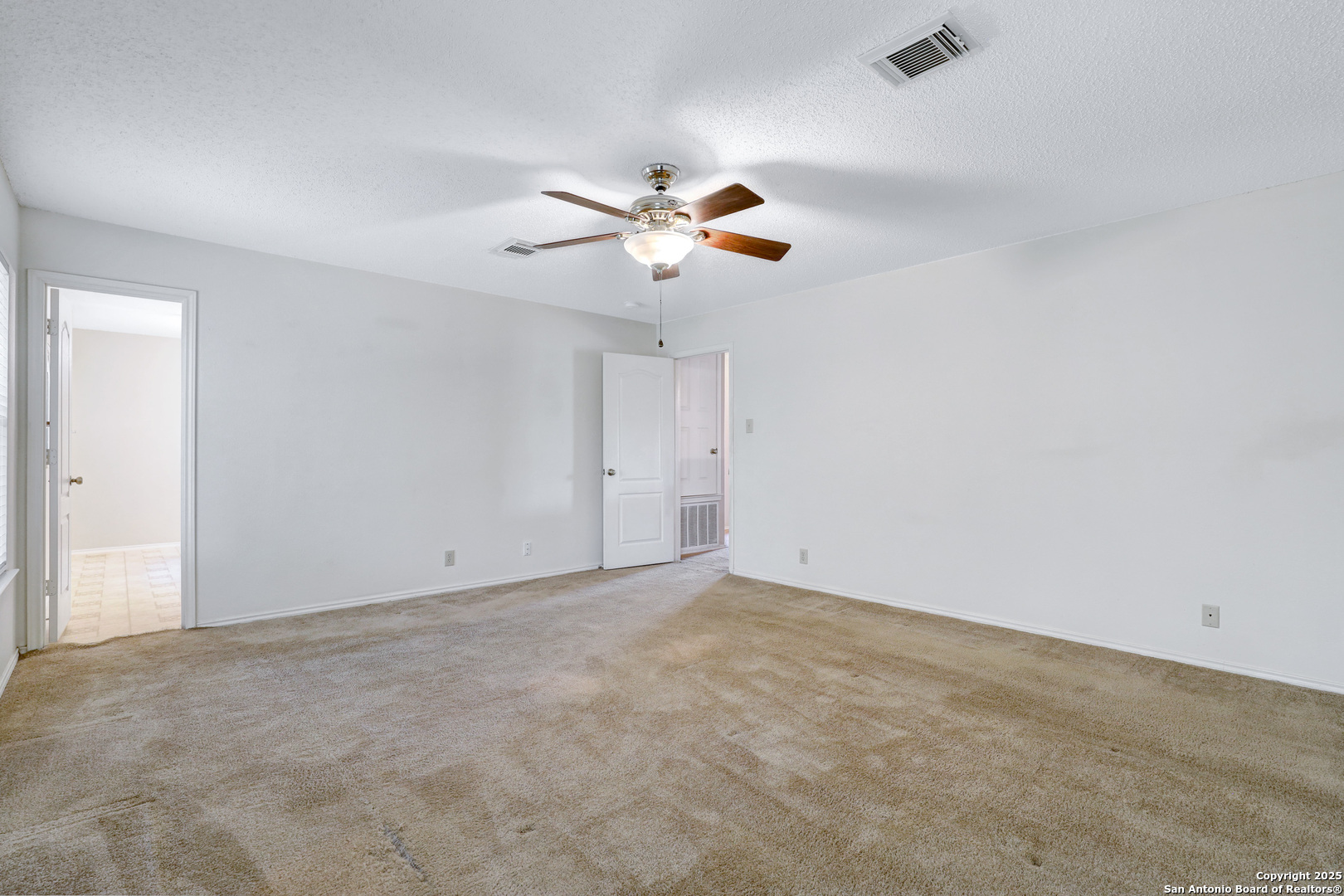 Nestled in the Stonefield subdivision on a cul-de-sac, this two-story gem offers a blend of comfort, space, and privacy. With no direct rear neighbors and a generously sized backyard filled with mature trees, you'll enjoy a peaceful outdoor retreat. Inside, the first floor features an open-concept layout with no carpet, multiple living areas, and a cozy breakfast nook. The kitchen includes a refrigerator for added convenience. Upstairs, all bedrooms are equipped with ceiling fans, including a spacious primary suite complete with double sinks and a walk-in closet. This thoughtfully designed home provides room to relax, work, or entertain-both indoors and out. Conveniently located with quick access to Lackland AFB, shopping, dining, and more.