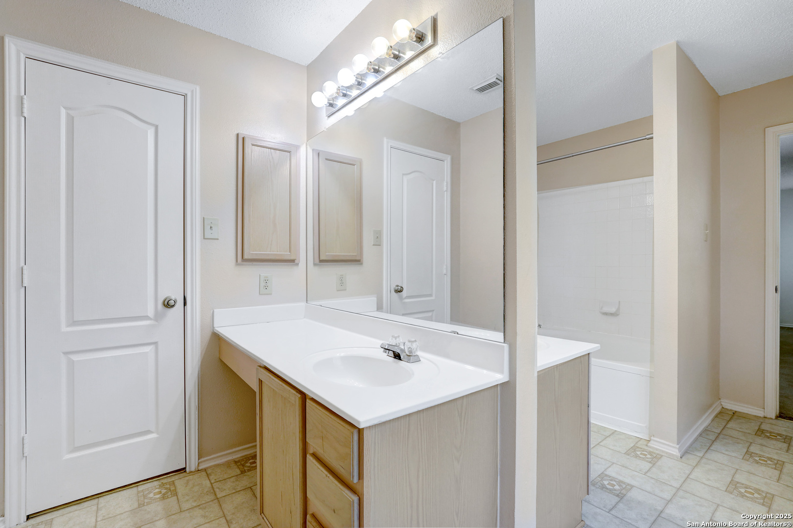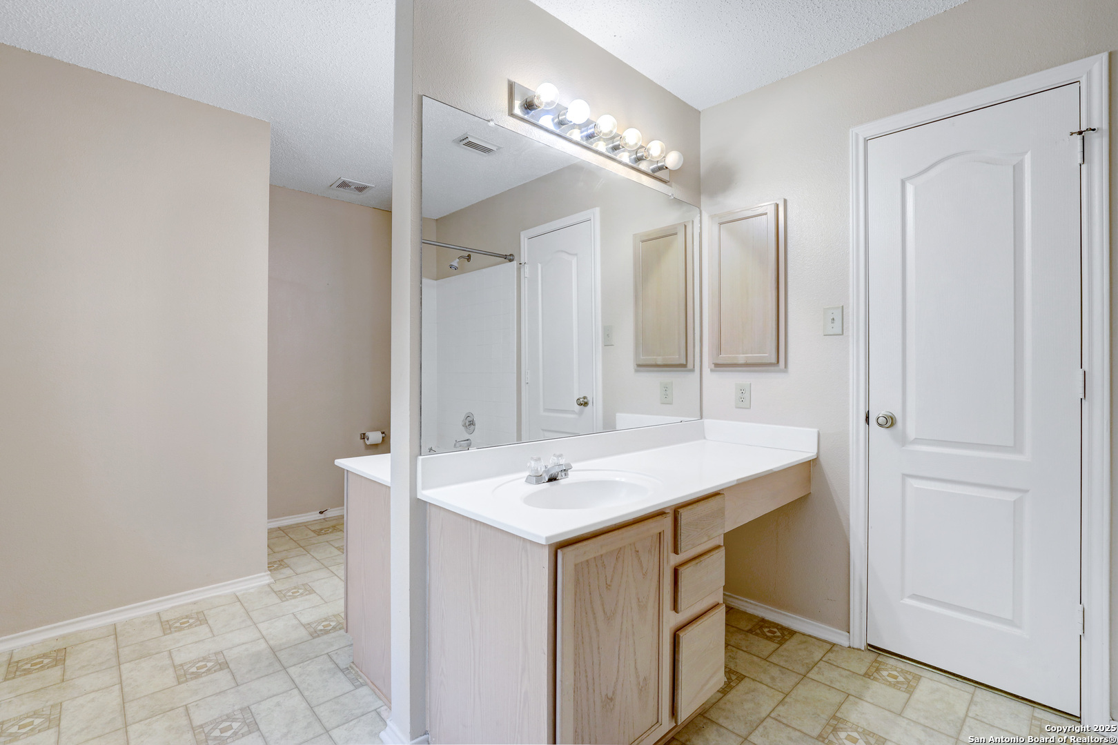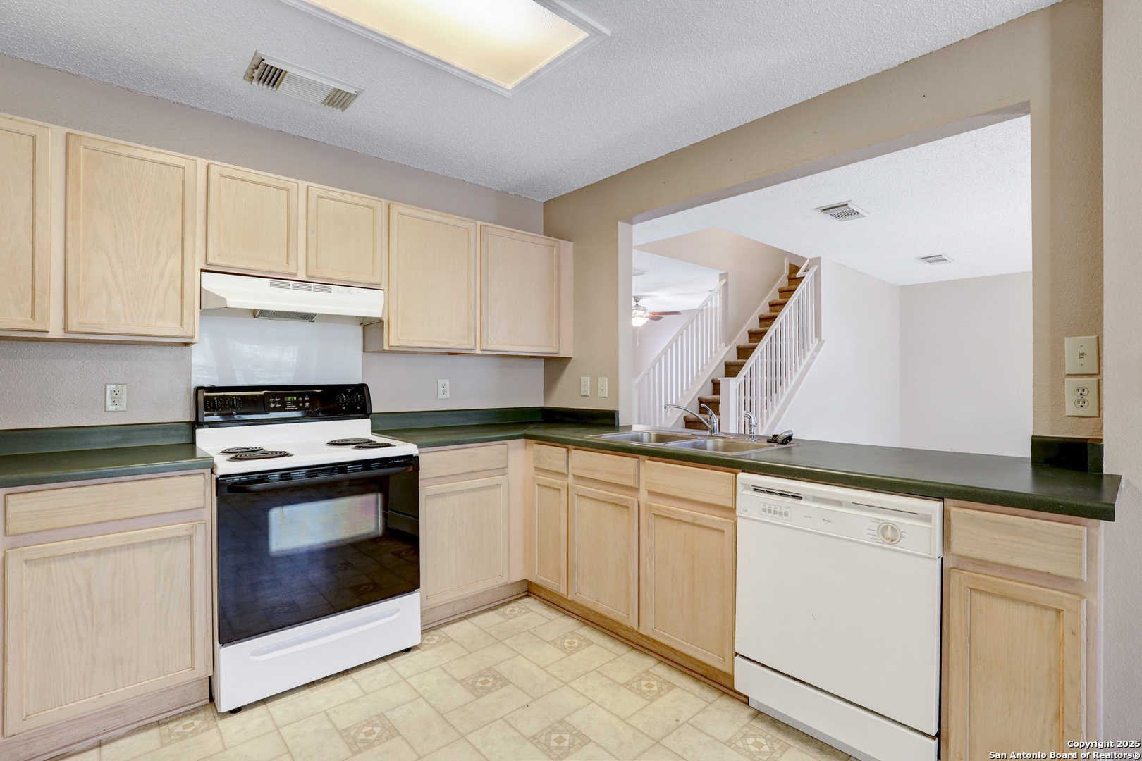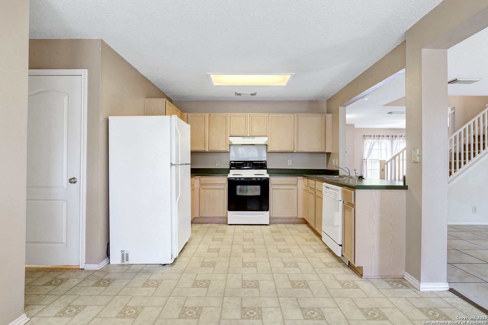 Nestled in the Stonefield subdivision on a cul-de-sac, this two-story gem offers a blend of comfort, space, and privacy. With no direct rear neighbors and a generously sized backyard filled with mature trees, you'll enjoy a peaceful outdoor retreat. Inside, the first floor features an open-concept layout with no carpet, multiple living areas, and a cozy breakfast nook. The kitchen includes a refrigerator for added convenience. Upstairs, all bedrooms are equipped with ceiling fans, including a spacious primary suite complete with double sinks and a walk-in closet. This thoughtfully designed home provides room to relax, work, or entertain-both indoors and out. Conveniently located with quick access to Lackland AFB, shopping, dining, and more.