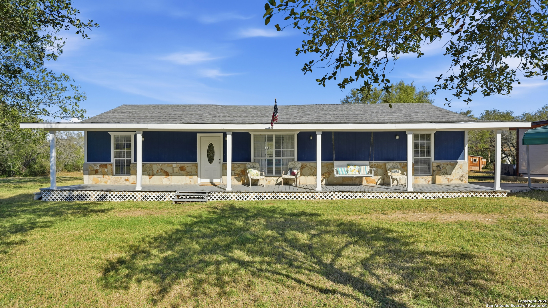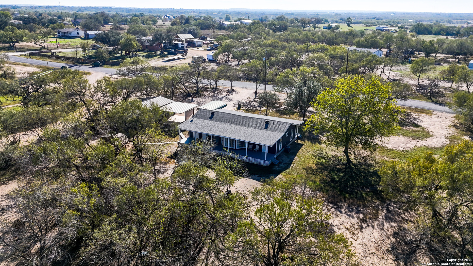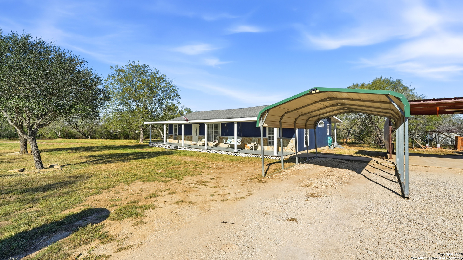 Step into the quiet countryside of Adkins, Texas to see this adorable farmhouse style home! Sitting on about one acre, this 1,600+ sqft home has all the necessities with 3 bedrooms, 2 full bathrooms, and is less than 30 minutes from downtown San Antonio. Interior Features: vinyl and tile flooring, fresh paint throughout, spacious living room, split concept large primary bedroom with two walk-in closets and separate garden tub and shower, precious claw foot tub in 2nd bathroom, indoor laundry room with exterior door access. Exterior Features: large cleared lot, large covered front and back porches, multiple covered parking areas, open parking spaces, storage shed, large workshop, new roof in 2021, new A/C in 2023, and a chicken coop ready for your own chickens! You don't want to miss out on this one!