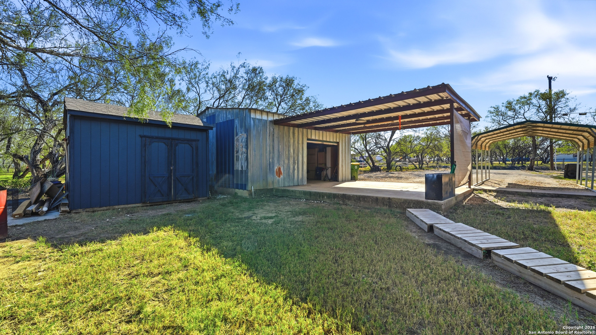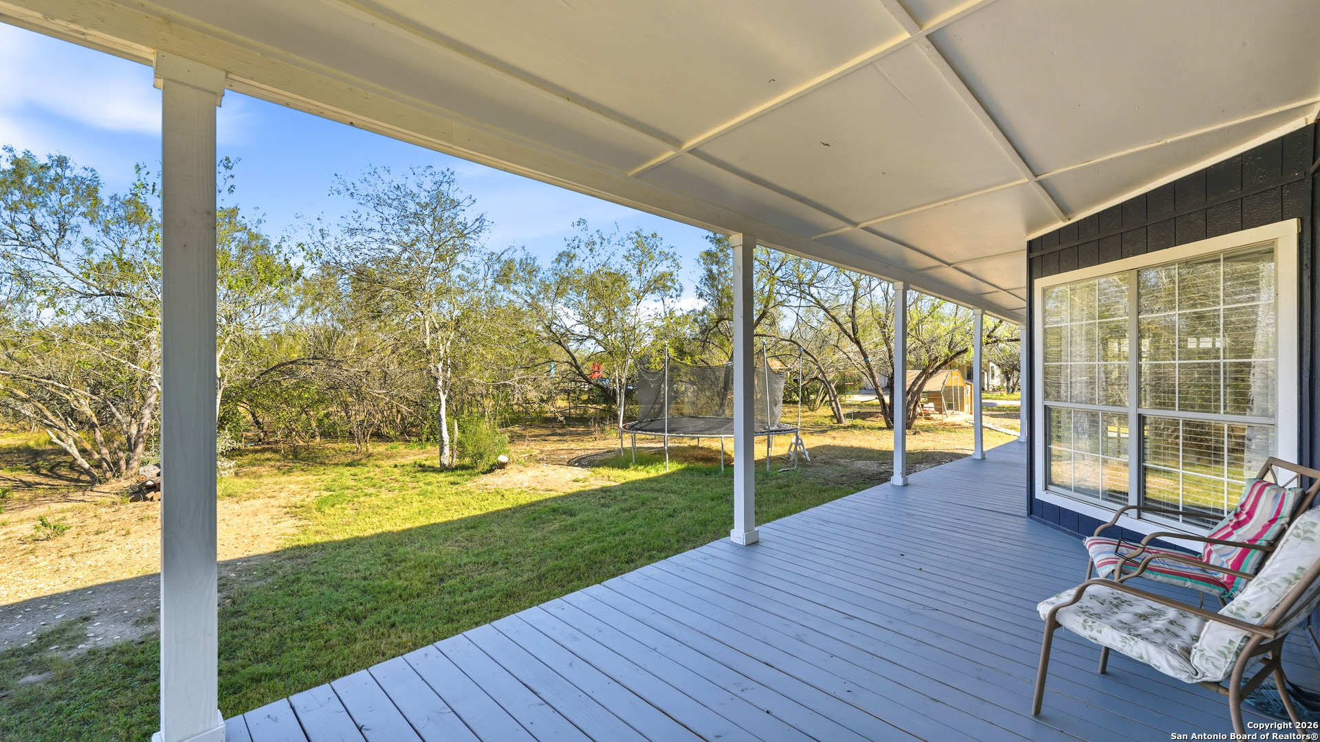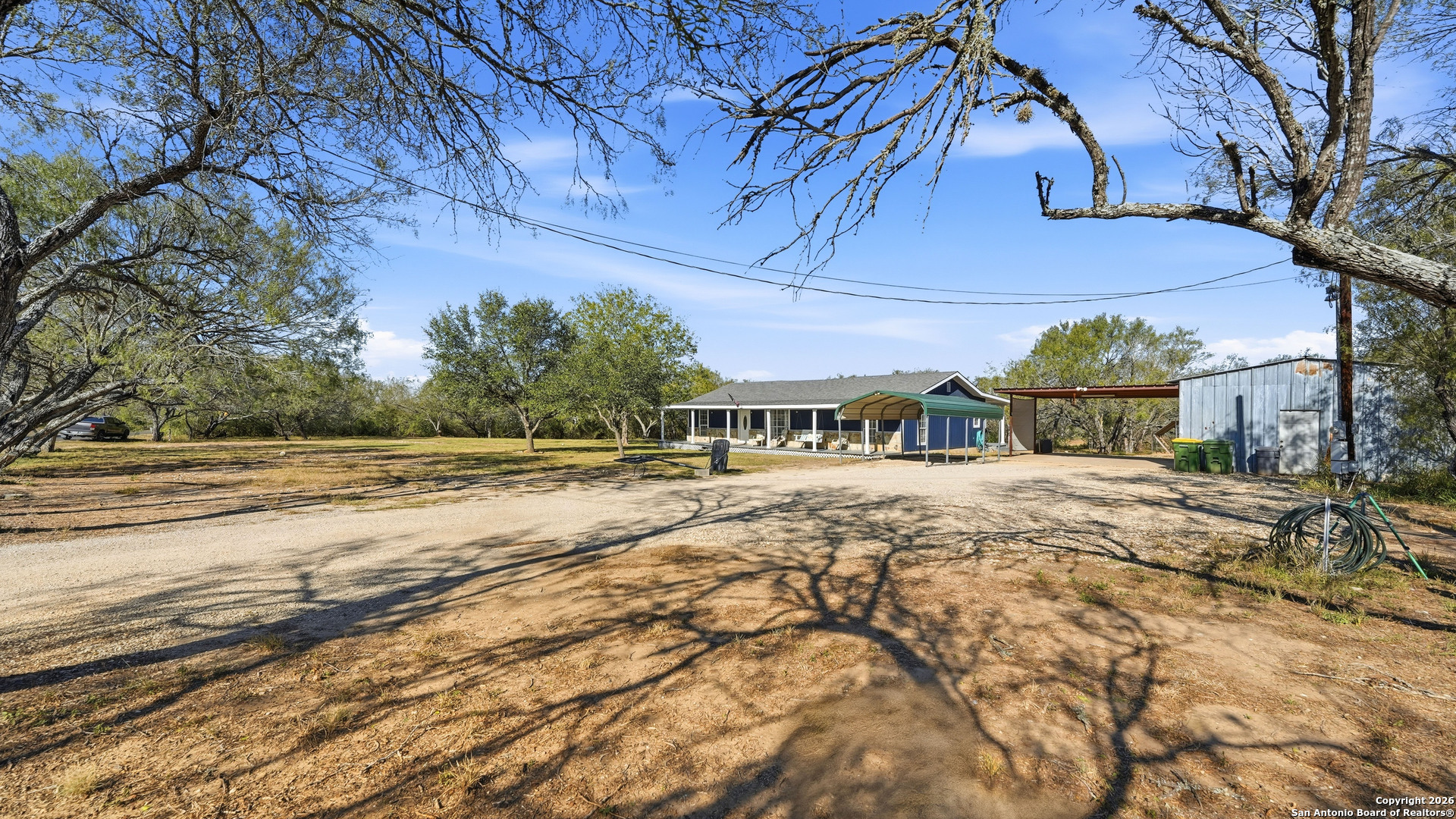 Step into the quiet countryside of Adkins, Texas to see this adorable farmhouse style home! Sitting on about one acre, this 1,600+ sqft home has all the necessities with 3 bedrooms, 2 full bathrooms, and is less than 30 minutes from downtown San Antonio. Interior Features: vinyl and tile flooring, fresh paint throughout, spacious living room, split concept large primary bedroom with two walk-in closets and separate garden tub and shower, precious claw foot tub in 2nd bathroom, indoor laundry room with exterior door access. Exterior Features: large cleared lot, large covered front and back porches, multiple covered parking areas, open parking spaces, storage shed, large workshop, new roof in 2021, new A/C in 2023, and a chicken coop ready for your own chickens! You don't want to miss out on this one!