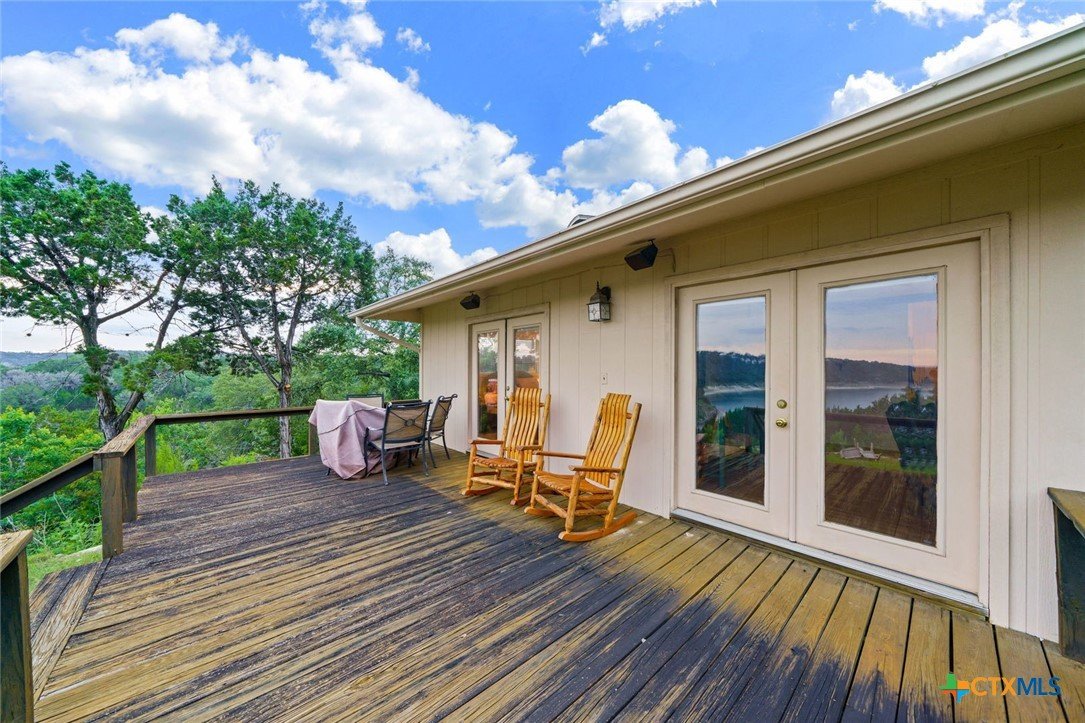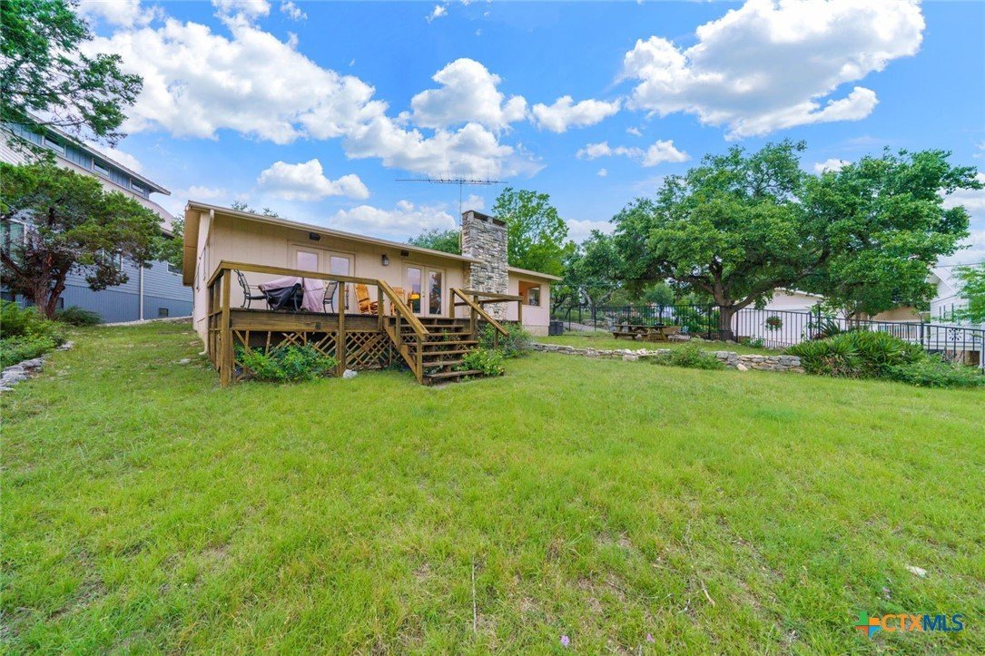 WELCOME TO YOUR CANYON LAKE WATERFRONT RETREAT! This is an incredible opportunity to own a prime lot that extends all the way down to the Canyon Lake shoreline. Located in a highly sought-after area, this property offers unparalleled potential and breathtaking panoramic views of the scenic Canyon Lake, making it an ideal choice for a vacation home or lucrative short-term rental investment. Step inside this charming home to find an inviting and spacious living area, highlighted by large windows, stunning wood beams, and a cozy rock fireplace. Natural light floods the open floor plan, creating a warm and airy ambiance perfect for relaxing. The home features a galley kitchen, large walk-in storage area, a game room just off the second bedroom, and a primary bedroom with French doors leading directly to the back deck. The large lot (0.37 acres) includes a functional gazebo at the bottom, offering a peaceful spot to enjoy the outdoors. Parking is easy with an oversized 2-car detached garage, providing ample space for vehicles, watercraft, and boat storage. Enjoy convenient access to the private neighborhood beach area, as well as nearby amenities, shopping, and dining. Don't miss this chance to acquire a rare piece of Canyon Lake waterfront property and transform it into your ultimate personal paradise.