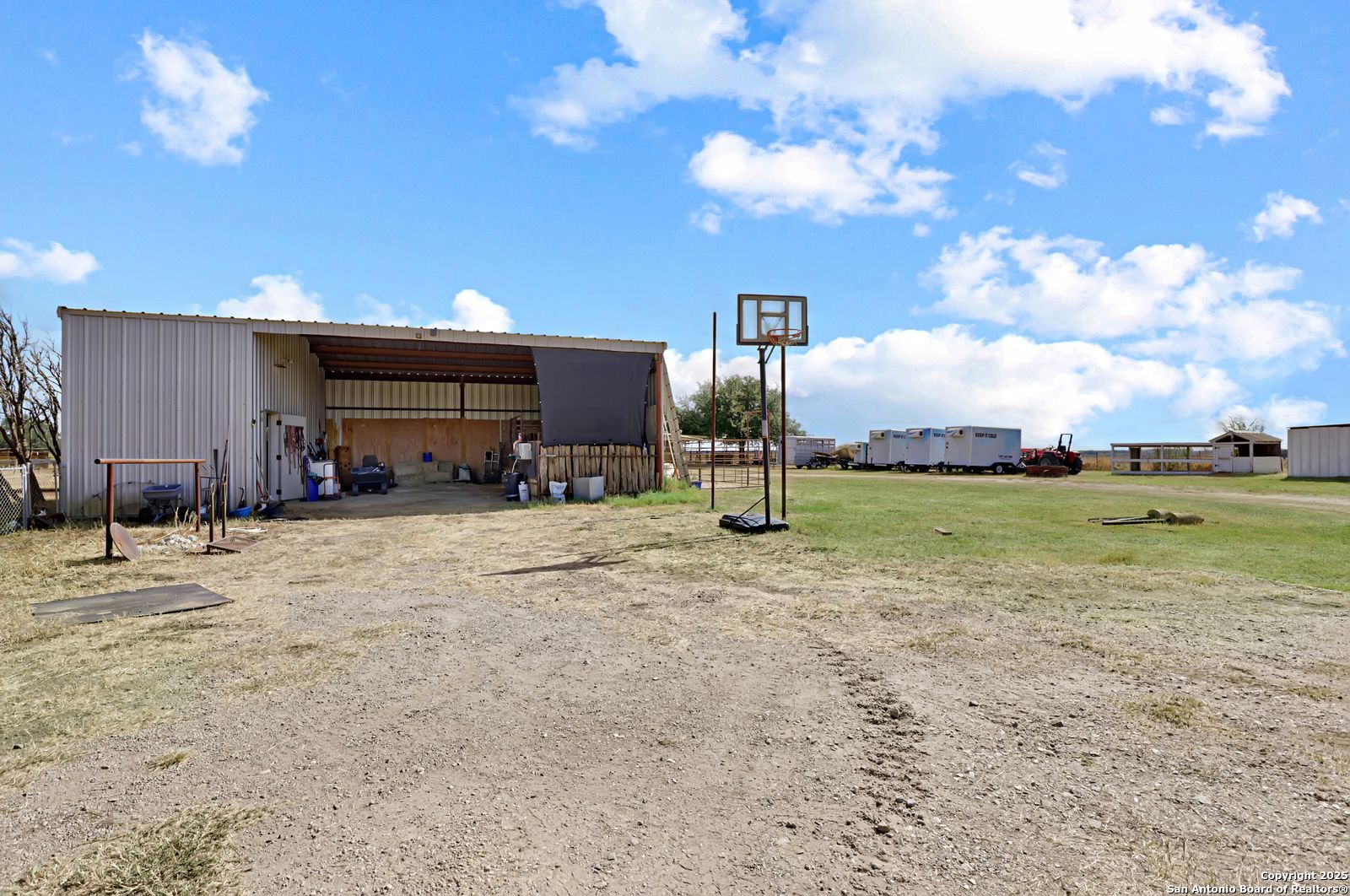 This could be your dream home on 6.88 acres - This property features a spacious 3 bedroom, 2.5 bath residence offering 1718 square feet of comfortable living space. As you step inside, you'll be greeted by an inviting open concept design that seamlessly combines the dining, kitchen, and living areas. The living room is warmed by a cozy wood-burning fireplace, perfect for chilly winter evenings. The home has tile flooring throughout the common area, while the bedrooms provide a soft carpet. The 20x9 laundry room is located across the breezeway and has a sink and cabinets. The outdoor amenities are equally impressive, featuring cross-fenced pastures with convenient water access in each section, ideal for livestock or gardening. An arena provides ample space for riding and training, catering to equestrian enthusiasts. Included on the property is an equipped 37x29 barn, complete with 2 stalls, a tack room, and a partial concrete floor. A handy lean-to extends off the back, offering space for show animals. This property is in close proximity to Stockdale, LaVernia & Floresville where you can find dining, grocery stores, and more. Enjoy the best of country living with this unique property that combines comfort, functionality, and an outdoor space.