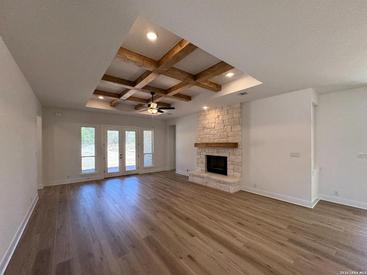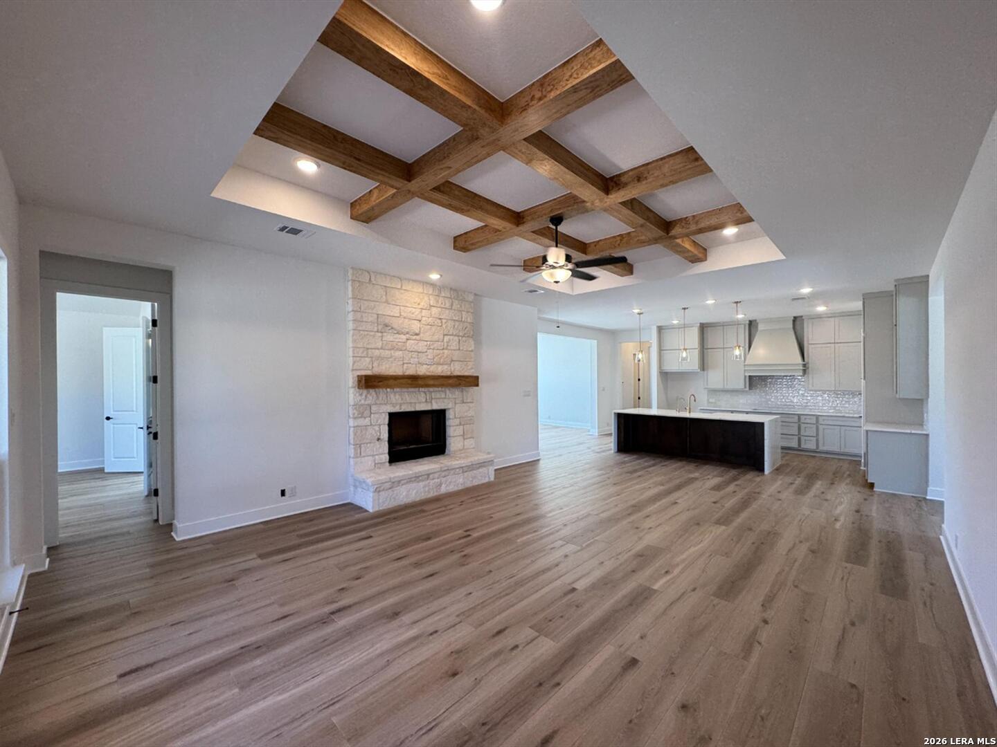 This one-story home includes an oversized 2-car garage, 4 bedrooms, and 3 bathrooms, making space for family, guests, and all the extras that make life run smoothly. The gourmet kitchen with gas cooking flows into a spacious family room, where a woodburning fireplace sets the tone for cozy evenings at home. An additional retreat and separate breakfast space provide ample space for entertaining and family time. The primary suite has two oversized walk-in closets, separate vanities, a large shower, and a free standing bathtub. Covered patio on the back of the home to enjoy the 1.46-acre property. This home features design selections carefully curated by our studio team. Every finish, from flooring and cabinetry to countertops and details, is chosen to create a cohesive, stylish, and welcoming space that feels beautifully balanced from the moment you step inside. This home is in Waldsanger, in the scenic Texas Hill Country. Spacious acreage lots offer privacy, beautiful landscaping, and covered patios perfect for relaxing or entertaining.