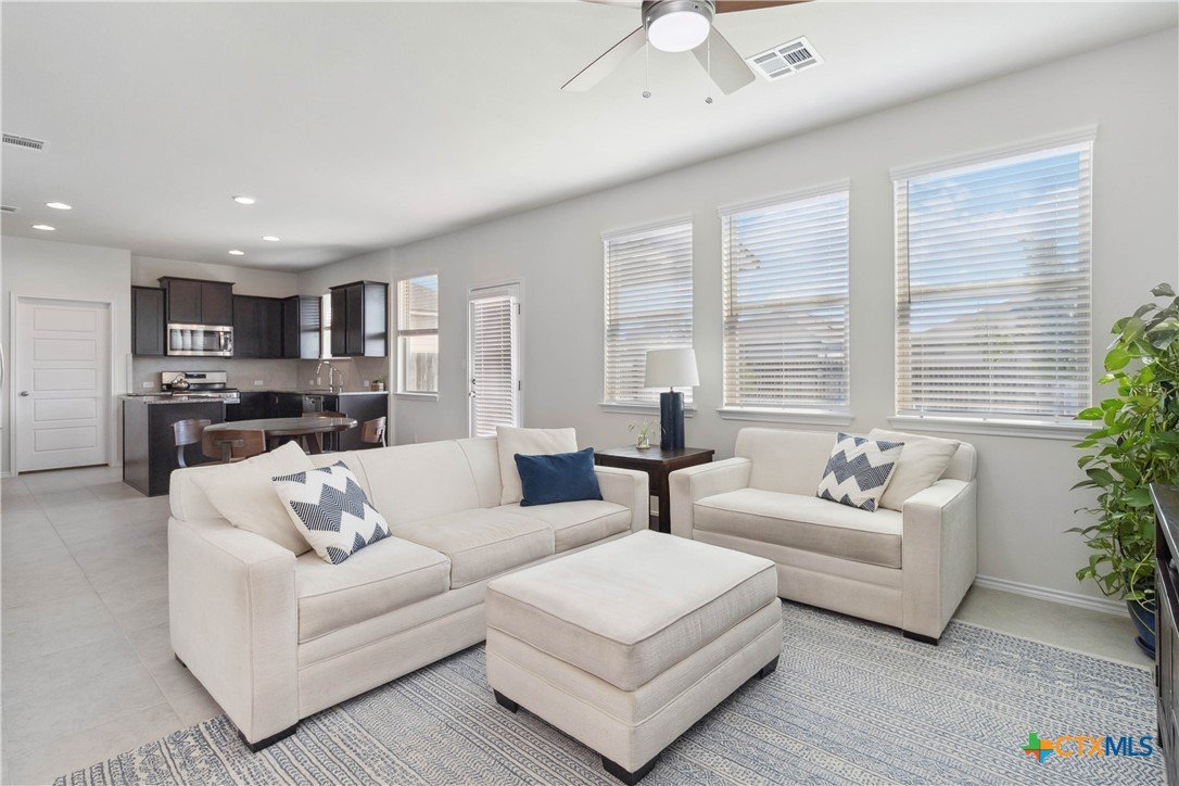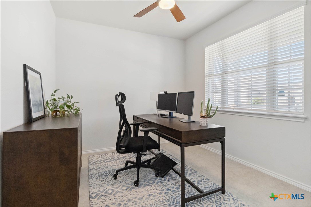 Thoughtfully upgraded and truly move-in ready—no need to wait for a new build! This home is ready for immediate occupancy upon close of escrow. This beautifully maintained 4-bedroom, 2.5-bath home offers the perfect blend of comfort, function, and durability. Located on a quiet street with minimal traffic and just a short walk to a large green space perfect for pets, play, or community fun. Recent upgrades include a 3-year-old asphalt roof, full gutter system, whole-house lightning surge protection, reinforced fencing with concrete posts, and a custom-built retaining wall for added curb appeal and stability. An owned water softener with whole-home filtration, reverse osmosis system, and fully redone sprinkler system provide long-term peace of mind. Inside, enjoy new high-grade carpet with premium pad (a significant improvement from builder-grade carpet!), ceiling fans in every room, and a smart layout. The main level features a private office with glass French doors, an open-concept living and dining area, and a spacious kitchen with stainless steel appliances (including a gas range), center island, and ample counter space. The large walk-in pantry is ideal for storage and the main floor guest half bath offers added convenience. Upstairs includes a versatile second living space ideal for a family room or game room. The primary suite offers two walk-in closets, a double vanity, walk-in shower, linen closet, and private water closet. Three additional bedrooms accommodate a large family, guests, or a second office. Enjoy all the Trace amenities: pool, sand volleyball court, half basketball court, playground, BBQ grills, and covered pavilion. Washer, dryer and refrigerator convey. Ask for the full Home Highlights Sheet—there’s even more to love!