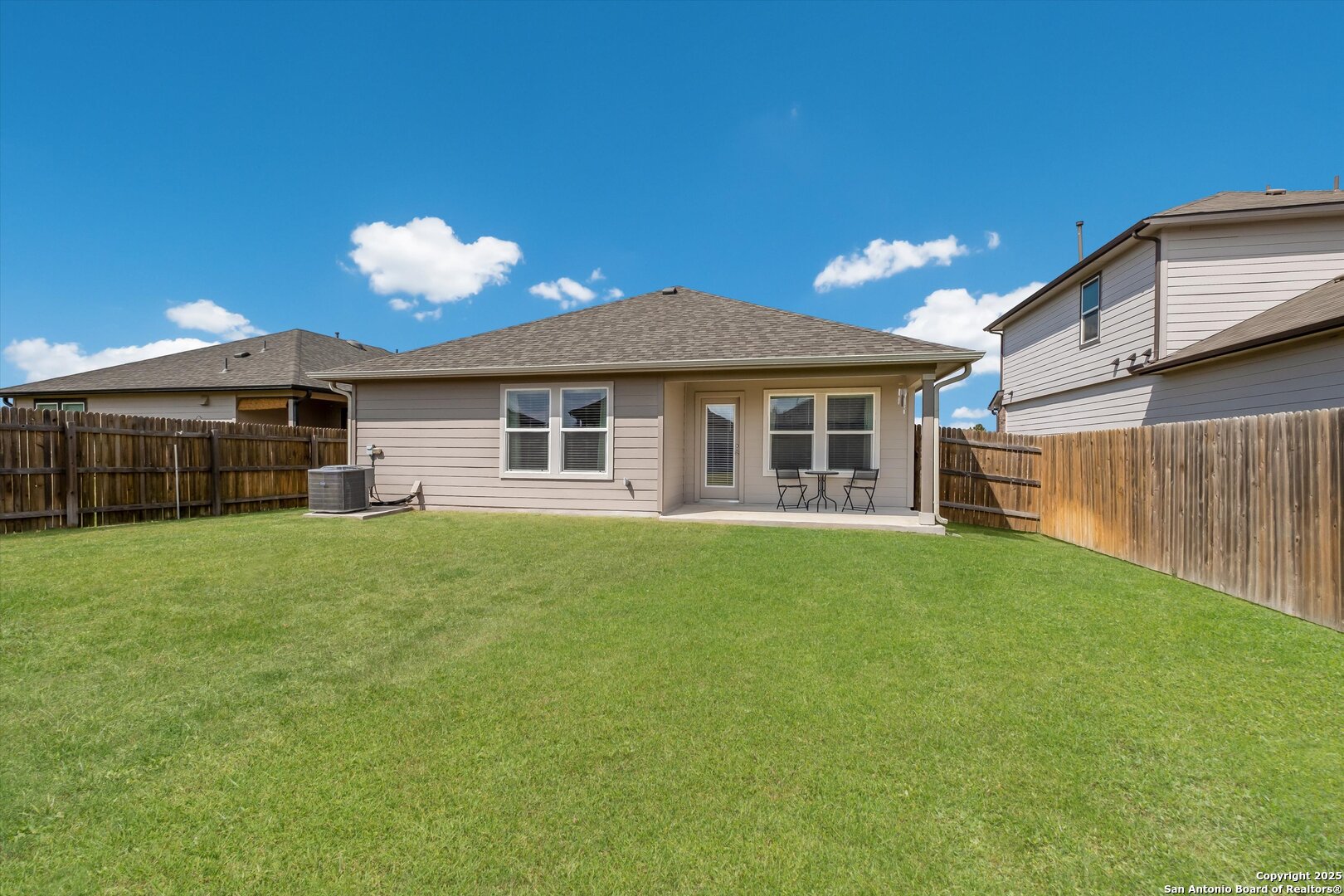 Wonderful One Story 4 bedroom / 2 bath home, set on an oversized lot. This gently lived-in home features a private, spacious backyard-perfect for a play set or entertaining. The kitchen offers granite counters, pantry storage, recessed lighting, and appliances for easy meal prep. The expansive primary suite includes an en-suite bath with walk-in shower and an impressively large walk-in closet. Three additional bedrooms provide flexibility for guests, a home office, or hobbies. The central living room opens to a west-facing patio for relaxing and enjoying Texas sunsets. Smart Home features add everyday convenience. Neighborhood Amenities to include a playground and splashpad. Convenient location near San Marcos High, a short drive to the heart of San Marcos, and quick access to I-35.