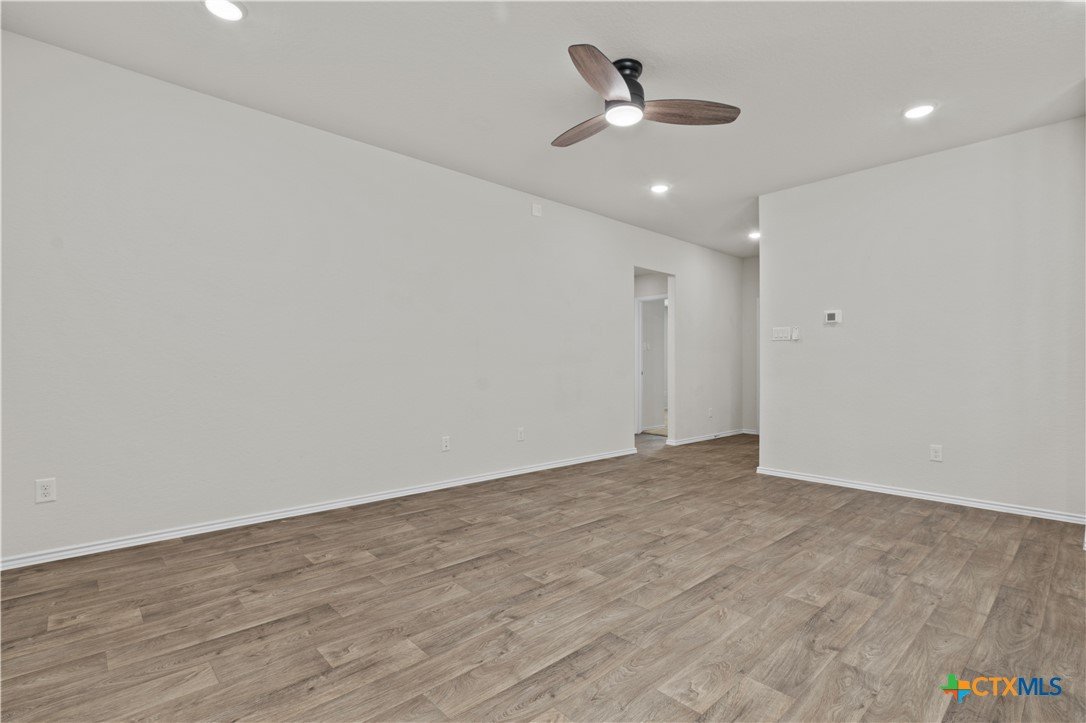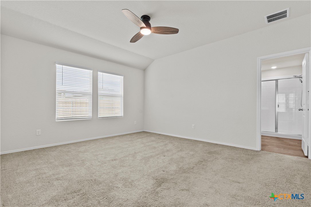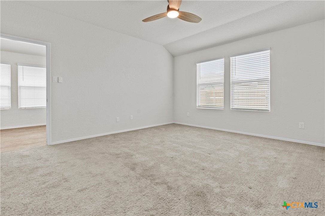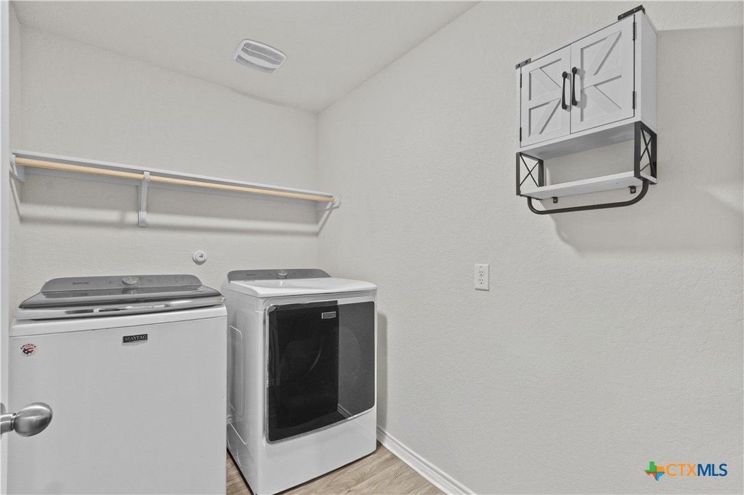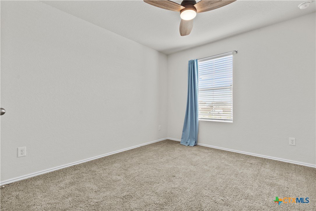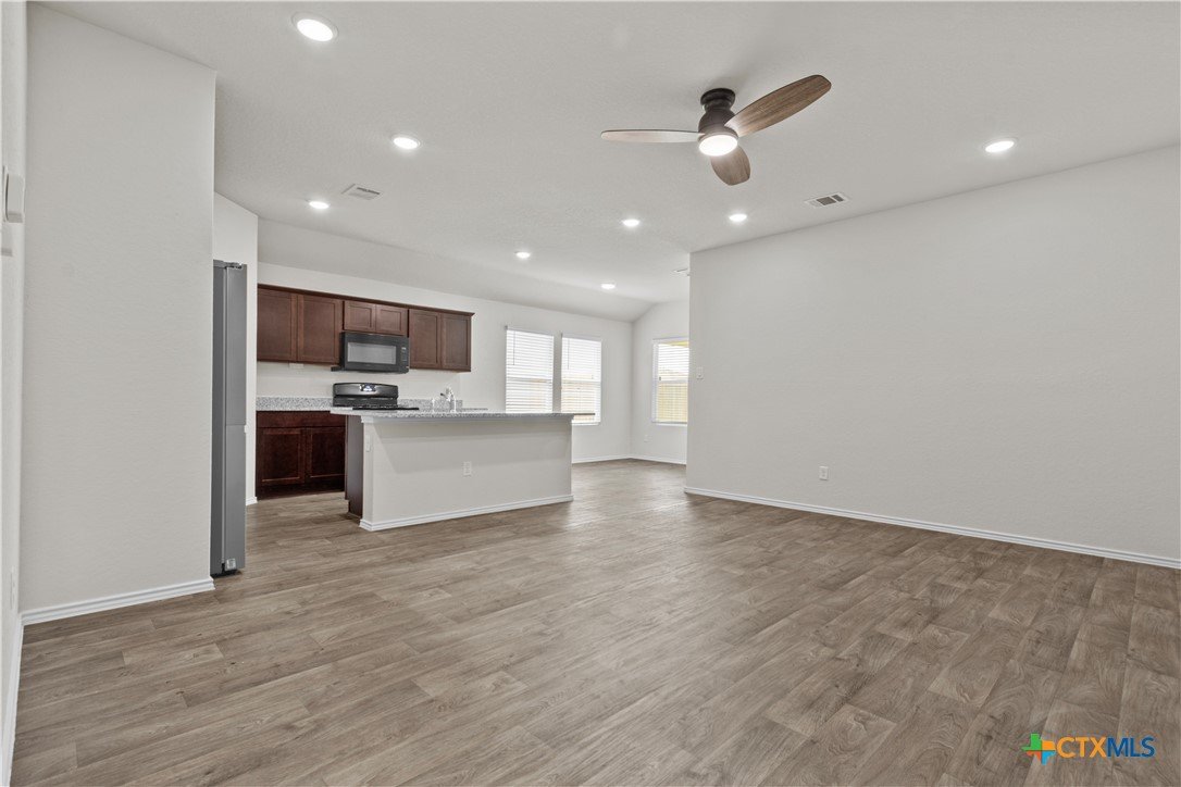 Welcome to 109 Half Moon Ct—a charming and move-in-ready single-story home located in a quiet cul-de-sac. With 1,409 sq ft of well-utilized space, this 3-bedroom, 2-bath residence offers comfort and functionality at every turn. Step into an open-concept living and kitchen area that seamlessly blends space for cooking, dining, and relaxing. The kitchen features granite countertops, espresso cabinetry, a walk-in pantry, and a center island with bar seating—ideal for meal prep and casual gatherings. Sleek black appliances, including a gas range and microwave, complete the modern kitchen setup. The spacious living room provides a welcoming atmosphere with natural light streaming in from well-placed windows. Enjoy a flexible layout that easily accommodates entertainment setups and cozy seating arrangements. The primary suite is tucked away at the rear of the home, offering privacy and comfort. It features a large bedroom with neutral tones and an en-suite bathroom with an oversized walk-in shower, double vanity, and generous walk-in closet. Two additional bedrooms are located at the front of the home, sharing a full bathroom and perfect for guests, family, or a home office setup. A dedicated laundry room includes a washer and dryer—ready for immediate use. Additional features include ceiling fans and luxury vinyl plank flooring in the main living areas with carpet in the bedrooms for added comfort. Step outside to enjoy a covered back patio overlooking a fully fenced-in yard—perfect for pets, play, or future garden plans. The attached 2-car garage provides secure parking and additional storage options. Located just minutes from San Marcos High School, shopping, and dining, this home combines peaceful living with everyday convenience in the Cottonwood Creek neighborhood.