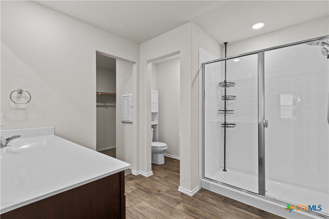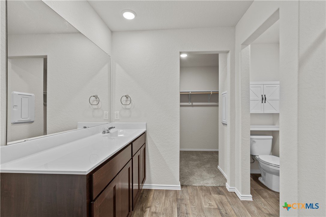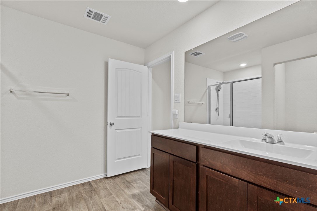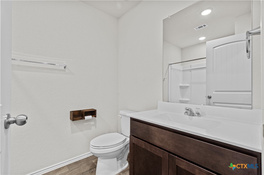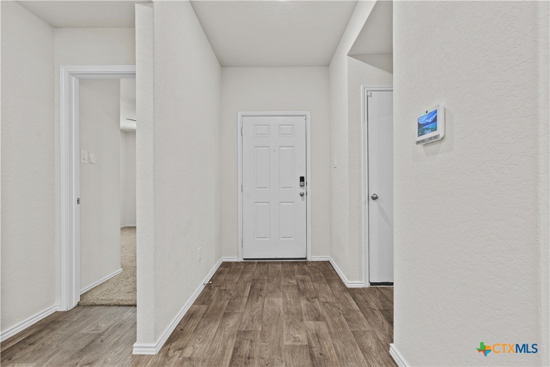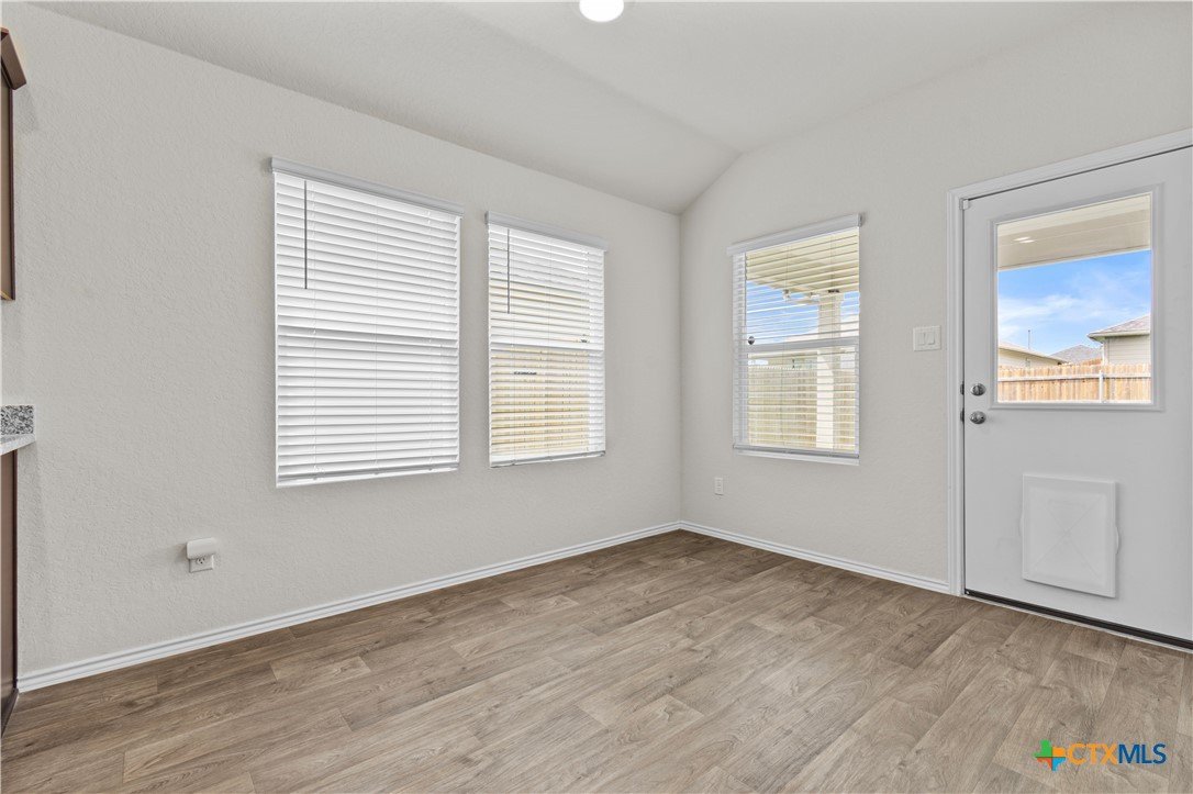 Welcome to 109 Half Moon Ct—a charming and move-in-ready single-story home located in a quiet cul-de-sac. With 1,409 sq ft of well-utilized space, this 3-bedroom, 2-bath residence offers comfort and functionality at every turn. Step into an open-concept living and kitchen area that seamlessly blends space for cooking, dining, and relaxing. The kitchen features granite countertops, espresso cabinetry, a walk-in pantry, and a center island with bar seating—ideal for meal prep and casual gatherings. Sleek black appliances, including a gas range and microwave, complete the modern kitchen setup. The spacious living room provides a welcoming atmosphere with natural light streaming in from well-placed windows. Enjoy a flexible layout that easily accommodates entertainment setups and cozy seating arrangements. The primary suite is tucked away at the rear of the home, offering privacy and comfort. It features a large bedroom with neutral tones and an en-suite bathroom with an oversized walk-in shower, double vanity, and generous walk-in closet. Two additional bedrooms are located at the front of the home, sharing a full bathroom and perfect for guests, family, or a home office setup. A dedicated laundry room includes a washer and dryer—ready for immediate use. Additional features include ceiling fans and luxury vinyl plank flooring in the main living areas with carpet in the bedrooms for added comfort. Step outside to enjoy a covered back patio overlooking a fully fenced-in yard—perfect for pets, play, or future garden plans. The attached 2-car garage provides secure parking and additional storage options. Located just minutes from San Marcos High School, shopping, and dining, this home combines peaceful living with everyday convenience in the Cottonwood Creek neighborhood.