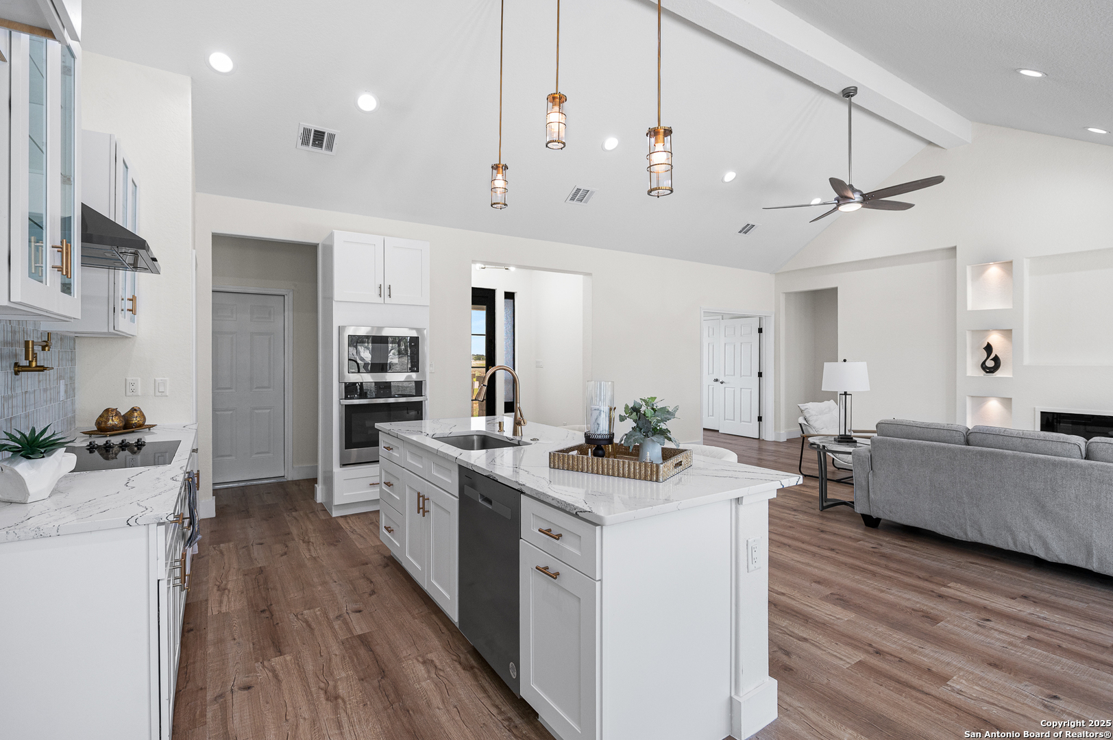 CUSTOM BUILT HOME ON ONE ACRE. THIS HOME WAS DESIGNED AND BUILT WITH FOR THE BUYER WHO APPRECIATES BEAUTY AS WELL AS QUALITY. 2 X 6 OUTER WALLS AND RADIANT BARRIER IN ATTIC MAKE THIS HOME SUPER ENERGY EFFICIENT. 3 FOOT-THICK SLAB VS YOUR NORMAL 18 INCHES. FROM THE MOMENT YOU WALK UP TO THE CUSTOM-BUILT FRONT DOOR YOU KNOW THIS HOME IS NOT YOUR COOKIE CUTTER HOME. UPON ENTERING YOU WILL BE AMAZED AT OPEN FLOOR PLAN AND VIEWS THROUGH THE FLOOR TO CEILING WINDOWS. THE HEART OF YOUR AMAZING CASTLE IS A CHEF'S KITCHEN THAT WILL PLEASE EVEN THE BEST CHEF OR THE PART-TIME COOK. IT FEATURES A LARGE ISLAND WITH QUARTZ COUNTER-TOP, STAINLESS APPLIANCES, LOTS OF CUSTOM CABINETS AND A HUGE WALK-IN PANTRY. THE LIVING AREA HAS CATHEDRAL CEILINGS, PERFECT FOR ENTERTAINING OR JUST RELAXING IN FRONT OF THE ELECTRIC FIREPLACE THAT PRODUCES HEAT AND BEAUTIFUL FLAMES. THE PRIMARY SUITE IS MORE THAN A BEDROOM BUT AND ESCAPE FROM THE WORLD FEATURING A SPA LIKE BATH THAT IS ONLY RIVALED BY THOSE IN A 5 STAR HOTEL. IT FEATURES A HUGE WALK-IN SHOWER WITH AN ENCLOSE GARDEN TUB TO PAMPER YOU AFTER A LONG DAY, PLUS DOUBLE VANITY AND BIG CLOSET. THE OTHER BEDROOMS ARE ALSO BIG AND HAVE SPACIOUS CLOSETS. ALL THIS PLUS AN OVERSIZE GARAGE, OVERSIZE DRIVEWAY AND ONE ACRE OF LAND. THE SELLER WILL CONSIDER SOME CLOSING COST TO BUYER. LOCATED AT THE BACK OF THIS QUIET NEIGHBORHOOD FOR LESS NOISE AND MORE PRIVACY. ONLY 30 MINUTES TO DOWNTOWN SAN ANTONIO, THE HOME IS VA CERTIFIED ALREAD AND THE SELLER IS GIVING A 10 YEAR WARRANTY FOR THE FOUNDATION!