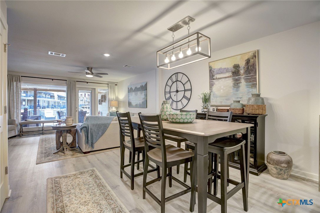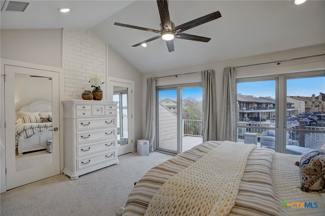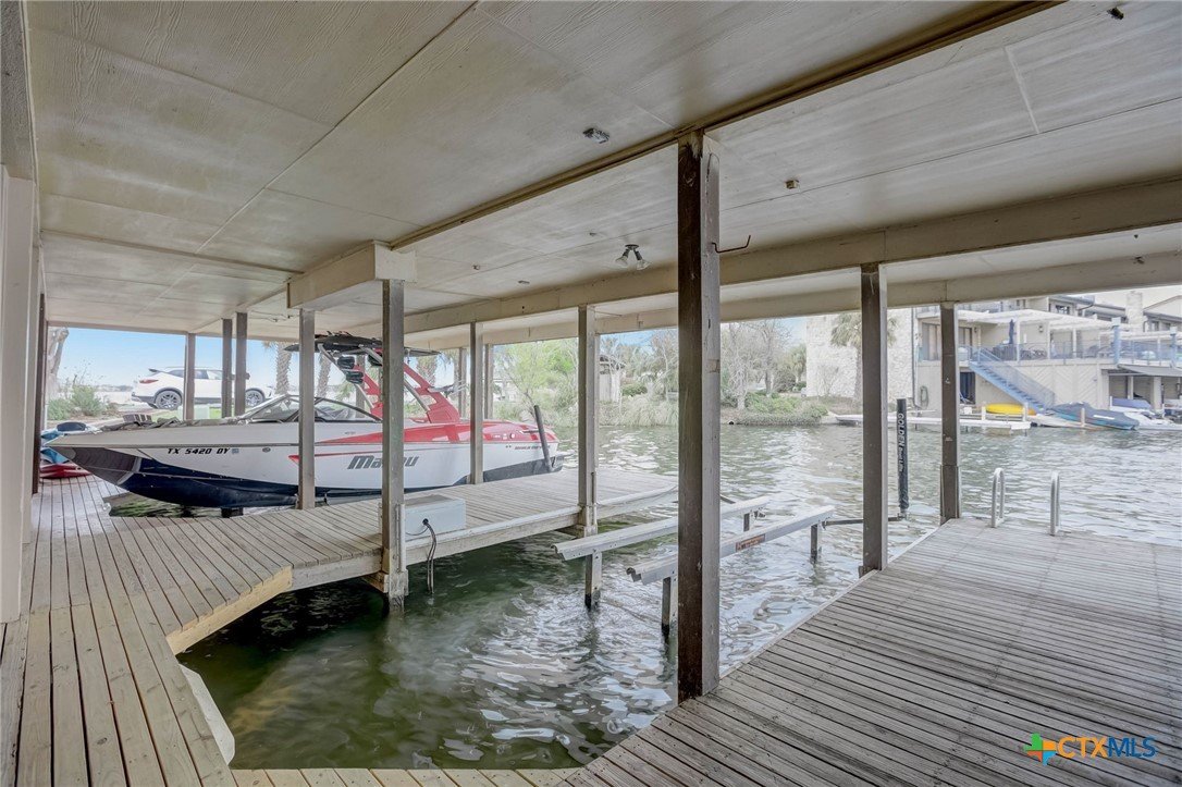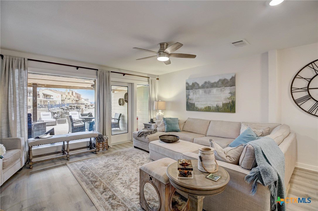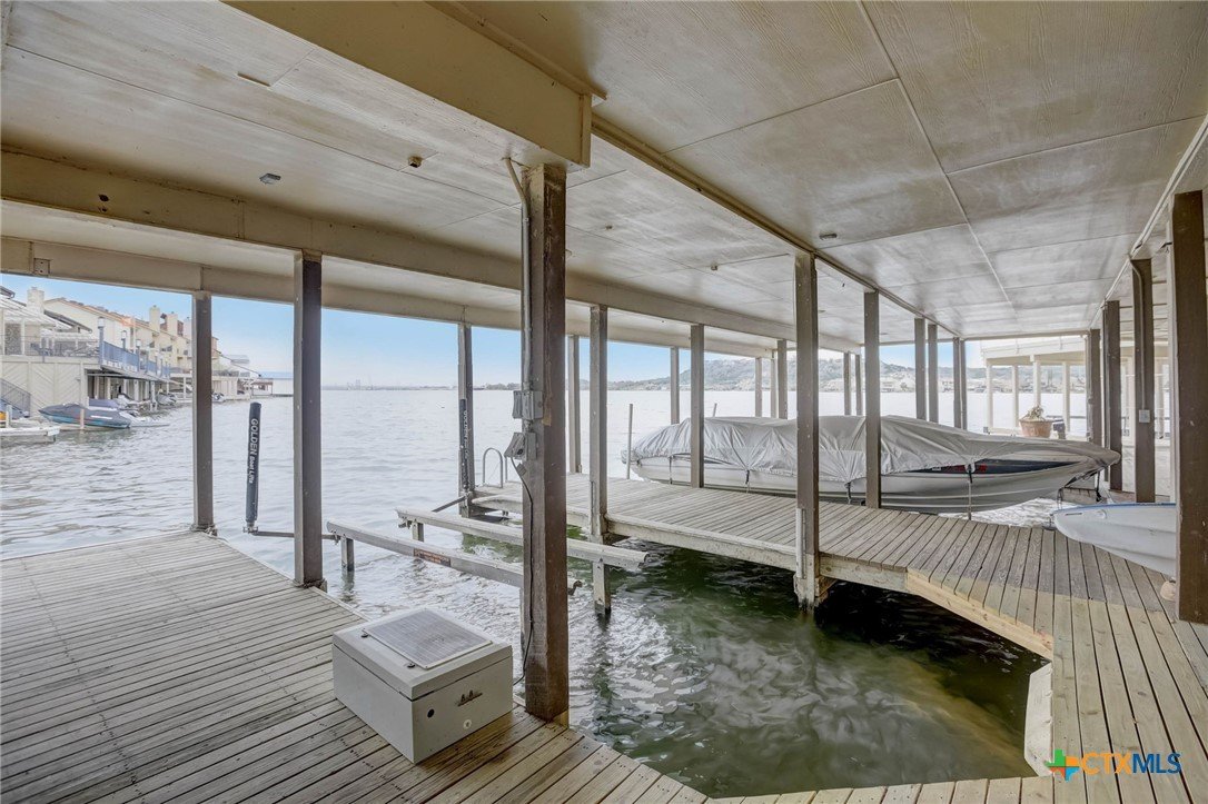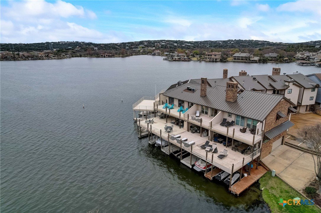 Beautiful waterfront townhome, with breathtaking views of Lake LBJ, in Horseshoe Bay! Come enjoy this private resort community that features a spa, restaurant, and Yacht Club. Enjoy two balconies with lake views of both sides of the peninsula that is Island Dr. Both balconies are spacious and perfect for entertaining and lakeside dinners. Traversing the lake is a breeze with your own private boat slip and jetski dock. The home was remodeled to like new construction with all new flooring, counters, cabinets, bathrooms, HVAC, doors, windows, appliances, and spray foam insulation in the attic. The ceiling was raised as well to create a modern and roomy feel to this gorgeous lakefront home. The guest suite is private and on the ground level and walks right out to the boat dock. The furniture is all new and is negotiable in the sale. 1 dedicated parking spot, and 1 guest parking spot. Just in time for spring break and the summer, come take a look and make this your dream vacation home!
