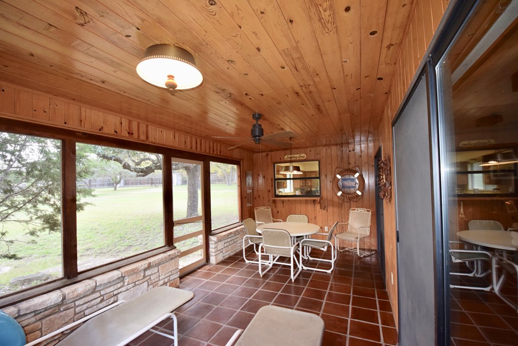 Rare opportunity to own one of the cottages at Japonica Estates on the Guadalupe River. Charming 2 Bed, 2.5 Bath with combined living/dining room and large kitchen offers the perfect weekend getaway or vacation rental. Large bedrooms, interior rock, wood burning stove and fabulous screened in porch, make this a desirable home. The Beautiful riverfront and pavilion are second to none and rarely utilized! Lots of grassy green space to hike and enjoy the outdoors.