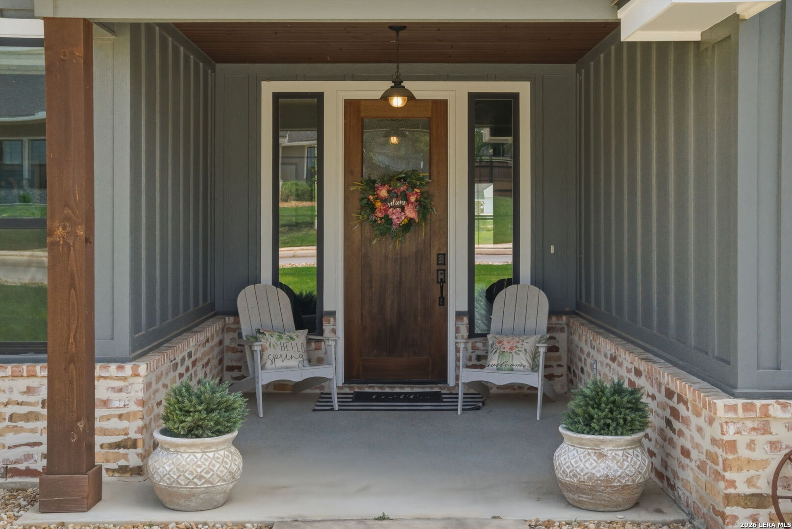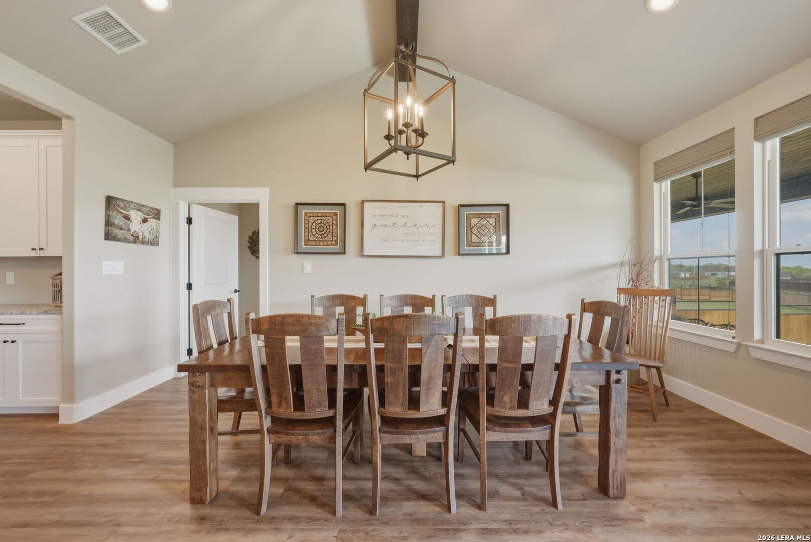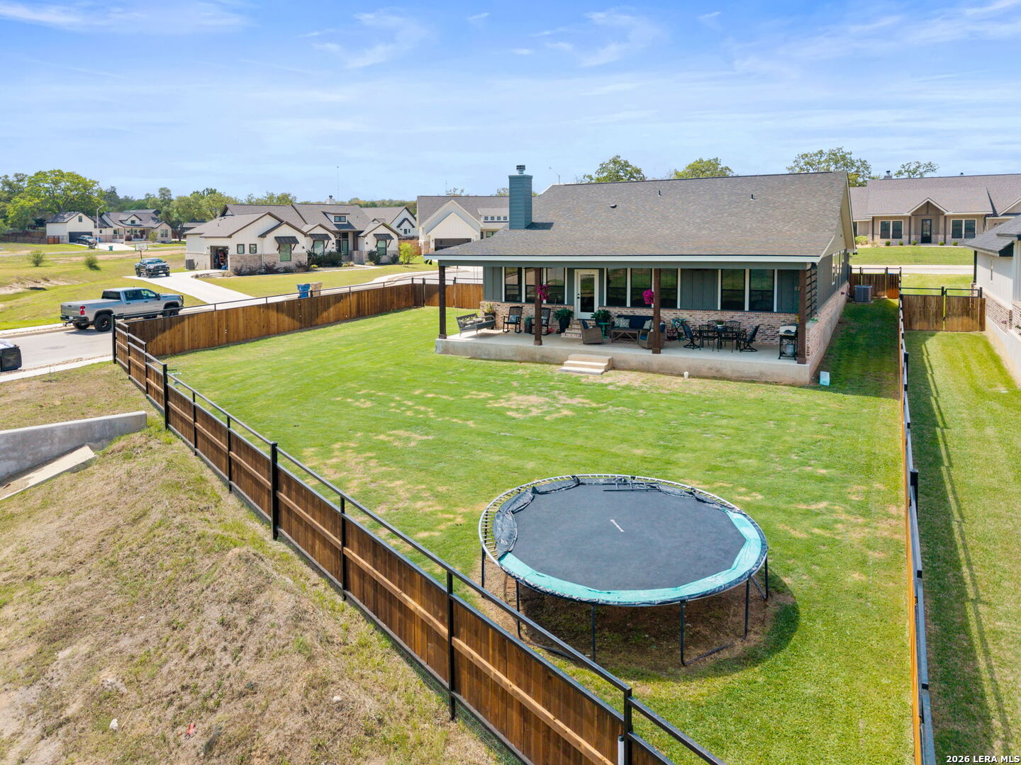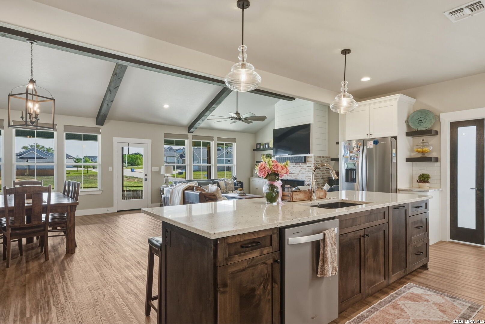 Welcome to 109 Juniper Point, a stunning farmhouse-style home offering luxury finishes, open-concept living, and an unbeatable location with easy access to San Antonio, TX. Whether you're searching for a move-in ready farmhouse, a 4-bedroom home with a butler's pantry, or a quality build with an outdoor kitchen, this property delivers on every level. From the moment you arrive, this custom built farmhouse home impresses with professional landscaping, a charming front elevation, and undeniable curb appeal, the kind that photographs beautifully and sells fast. Step inside to discover luxury vinyl plank flooring, soaring cathedral ceilings, and a designer color palette throughout. The heart of the home is the gourmet chef's kitchen, complete with granite and quartz countertops, subway tile backsplash, an abundance of cabinetry, and a butler's kitchen/pantry, a rare and highly sought-after feature perfect for entertaining. The kitchen flows seamlessly into the grand open-concept living and dining area showcasing a stone and shiplap fireplace and show-stopping exposed beam ceilings. The primary master suite features a large walk-in closet and a spa-inspired ensuite bathroom with a luxury soaking tub, your own private retreat. Three additional generously sized bedrooms offer flexibility for guests, a home office, or a growing family. Two additional stylishly appointed full bathrooms serve the secondary bedrooms, a convenient laundry nook keeps household tasks organized, and a spacious double/two-car garage completes the package. Entertain in style on the oversized covered back porch, complete with a built-in outdoor sink and ample space for a grill or smoker. The fully fenced backyard is low-maintenance, private, and large enough to add a pool, making it ideal for families, entertainers, and pet owners alike. Perfectly positioned within a sought-after master-planned community, this home offers top-rated school district access, proximity to boutique shopping, dining, and local amenities, and a convenient commute to San Antonio, one of Texas's fastest-growing metros.