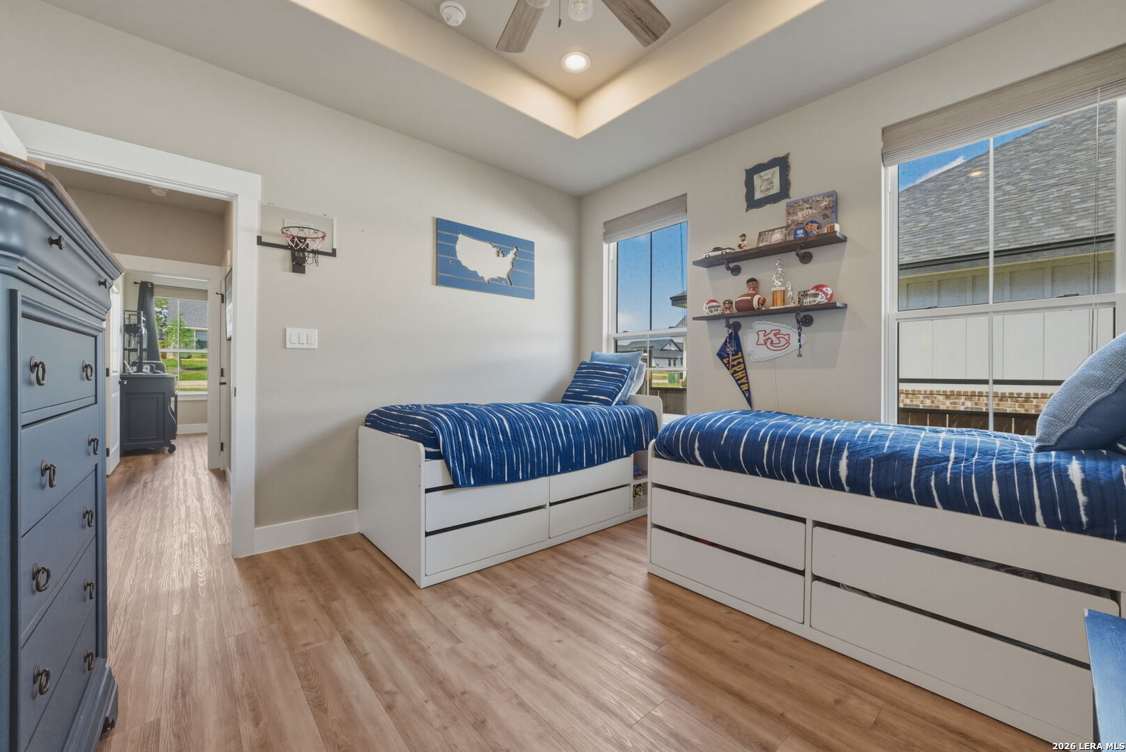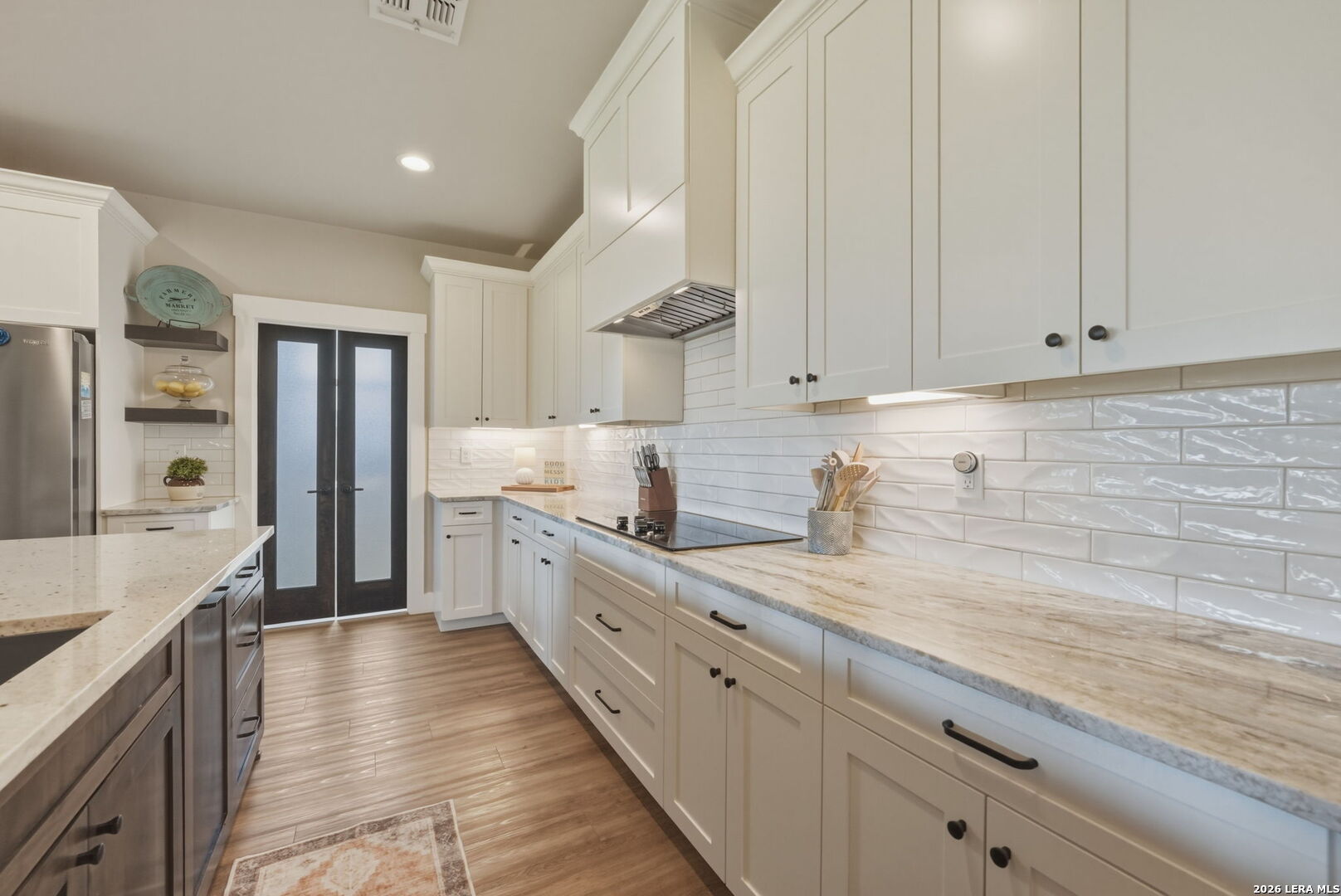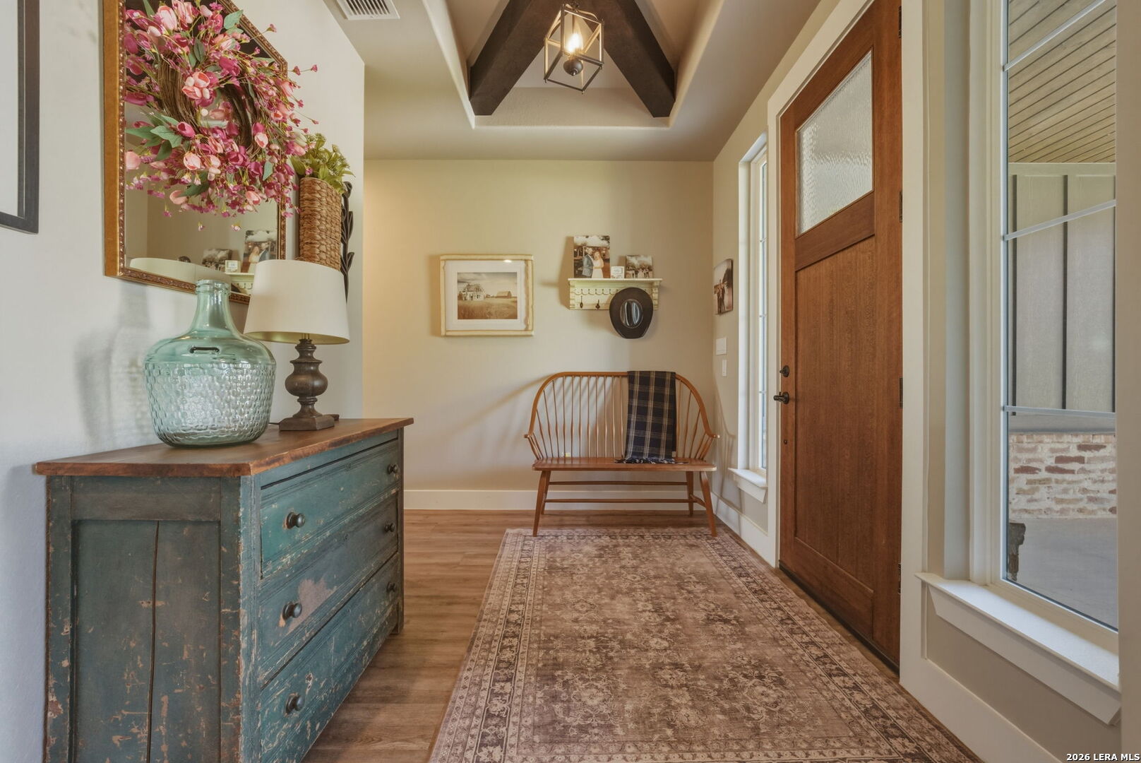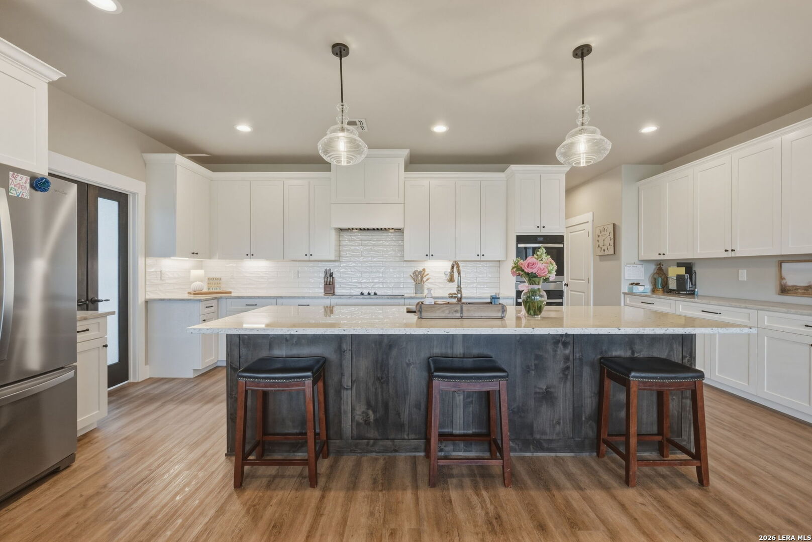 Welcome to 109 Juniper Point, a stunning farmhouse-style home offering luxury finishes, open-concept living, and an unbeatable location with easy access to San Antonio, TX. Whether you're searching for a move-in ready farmhouse, a 4-bedroom home with a butler's pantry, or a quality build with an outdoor kitchen, this property delivers on every level. From the moment you arrive, this custom built farmhouse home impresses with professional landscaping, a charming front elevation, and undeniable curb appeal, the kind that photographs beautifully and sells fast. Step inside to discover luxury vinyl plank flooring, soaring cathedral ceilings, and a designer color palette throughout. The heart of the home is the gourmet chef's kitchen, complete with granite and quartz countertops, subway tile backsplash, an abundance of cabinetry, and a butler's kitchen/pantry, a rare and highly sought-after feature perfect for entertaining. The kitchen flows seamlessly into the grand open-concept living and dining area showcasing a stone and shiplap fireplace and show-stopping exposed beam ceilings. The primary master suite features a large walk-in closet and a spa-inspired ensuite bathroom with a luxury soaking tub, your own private retreat. Three additional generously sized bedrooms offer flexibility for guests, a home office, or a growing family. Two additional stylishly appointed full bathrooms serve the secondary bedrooms, a convenient laundry nook keeps household tasks organized, and a spacious double/two-car garage completes the package. Entertain in style on the oversized covered back porch, complete with a built-in outdoor sink and ample space for a grill or smoker. The fully fenced backyard is low-maintenance, private, and large enough to add a pool, making it ideal for families, entertainers, and pet owners alike. Perfectly positioned within a sought-after master-planned community, this home offers top-rated school district access, proximity to boutique shopping, dining, and local amenities, and a convenient commute to San Antonio, one of Texas's fastest-growing metros.