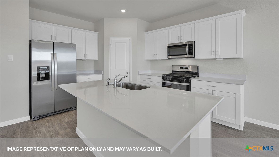 MOVE IN READY! The Nicole is one of our most popular floorplans available at Whisper South in San Marcos, Texas. This two-story home offers 4 bedrooms, 3 bathrooms, a gameroom, and 2 car garage all within 2,473 square feet of comfortable living space. Entering the home cross the foyer and find a short hallway to the downstairs secondary bedroom and a full bathroom. Passing the staircase, continue through the foyer to the heart of the home, the living area. The family room, dining area, and kitchen are open, making entertaining and everyday living a shareable experience for family and friends. The kitchen features an island with undermount sink, quartz countertops, a corner pantry closet, 36” upper cabinets, and stainless-steel appliances, including a gas range. Moving upstairs, you’ll enter the gameroom. The oversized primary bedroom is tucked away from the gameroom. Stretch out and relax at the end of your day in this spacious and private ensuite. The primary bathroom features a walk-in shower, double vanity with marble counter tops, private toilet area with a door, and an enormous walk-in closet. This will be the closet of your dreams, spacious enough to add a dressing island or chaise lounge for a full luxurious experience. The additional upstairs bedrooms and bathroom are located opposite the primary bedroom. The bedrooms feature walk in closets with wood shelving. Both secondary bathrooms include a shower/tub combination. The utility room rounds out the upstairs space, making laundry chores a breeze. The Nicole includes vinyl flooring throughout the common areas of the home, and carpet in the bedrooms. All our new homes feature a covered back patio, full sod, irrigation system in the front and back yard, and a 6’ privacy fence around the back yard. This home includes our America’s Smart Home base package, which includes the Amazon Echo Pop, Front Doorbell, Front Door Deadbolt Lock, Home Hub, Thermostat, and Deako® Smart Switches.