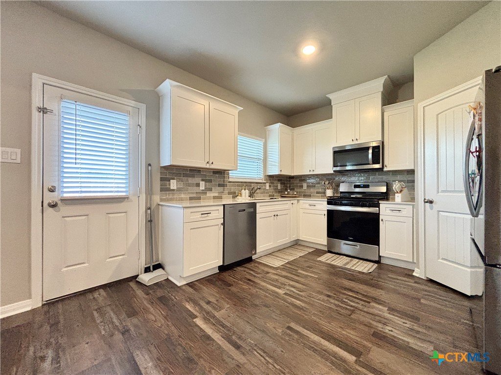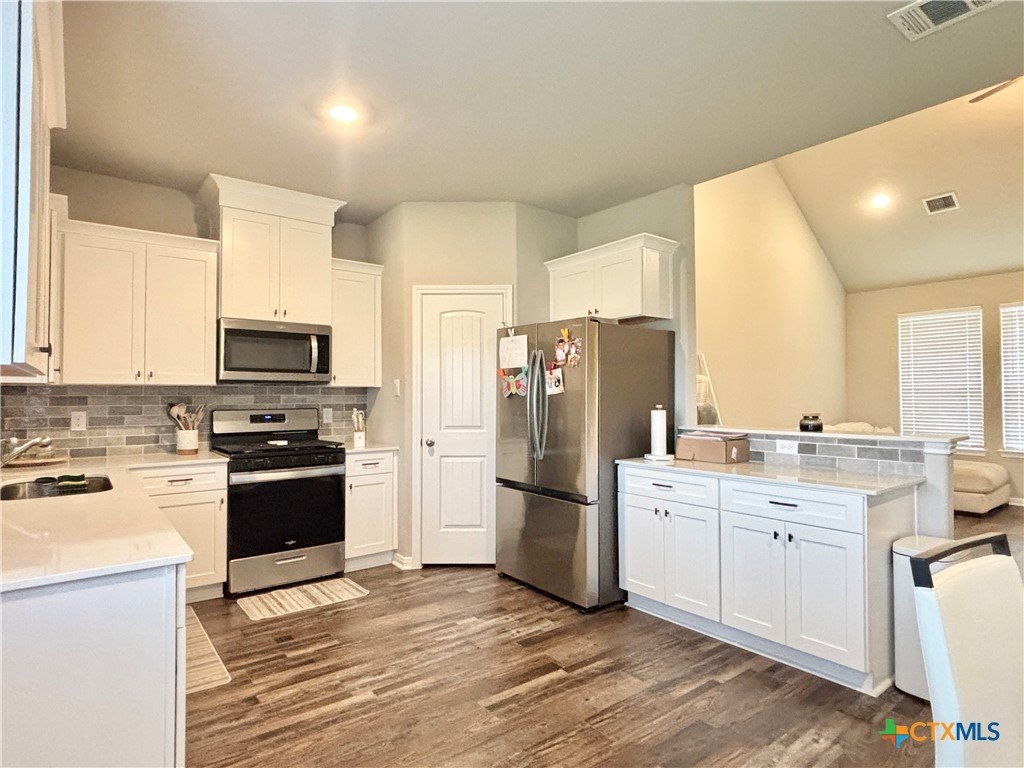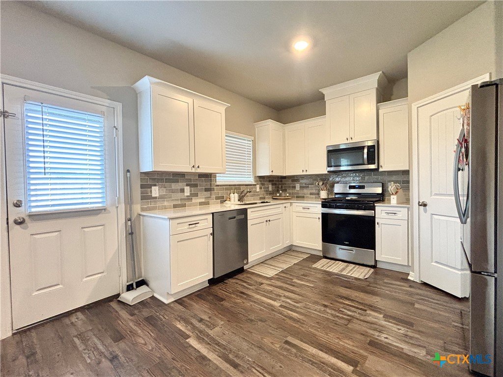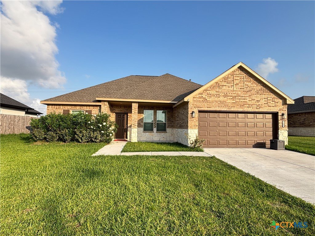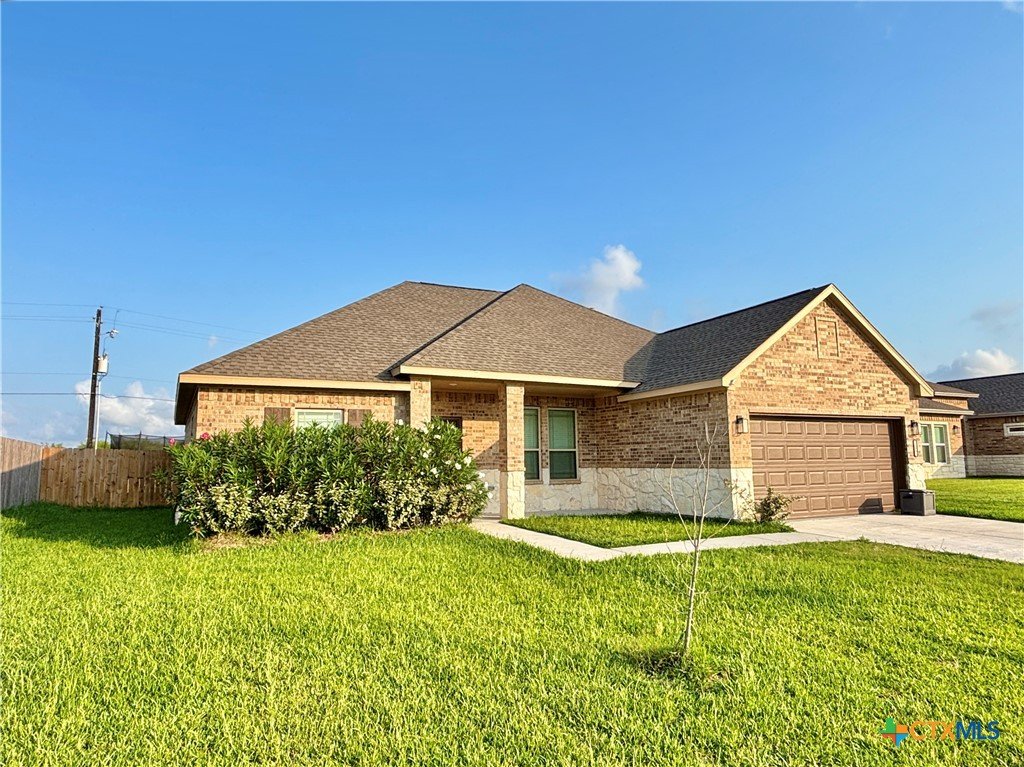 Step into this beautifully crafted 2024-Built Home located in the desirable Jade Bay Subdivision of Port Lavaca. Featuring 3 Spacious Bedrooms & 2 Baths, this home offers the perfect blend of style & comfort. Inside, you'll find Luxury Vinyl Plank Flooring, Lush Carpet in bedrooms only, vaulted ceilings in the living area, and an open-concept layout ideal for entertaining. The kitchen is designed with sleek quartz countertops, stainless steel Whirlpool Appliances, including Gas Range, Built in Microwave, Dishwasher and Refrigerator. Retreat to the Primary Suite, which is nestled away for privacy, with an oversized walk-in closet, tiled walk-in shower, double vanity & coffer ceiling. The home also includes an indoor utility room as you enter the garage. Step outside to the covered patio overlooking the large, privacy fenced backyard- perfect for gatherings. Additional Highlights Include: *Storm Shutters and Storm Rated Windows for peace of mind *Windstorm Certified Roof that is less than 2 years old *Energy Efficient Design Don't miss your chance to own this beautiful, Move-In Ready Home just minutes from the water and Hwy 35. Schedule your private showing today and make 109 Opal Way your new address!!