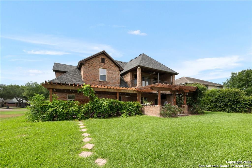 NEVER FLOODED - Peaceful Pondside Retreat! Enjoy tranquil living by the pond in this beautifully designed custom home, just minutes from top conveniences like the ER, dining, gyms, shopping, and a Tesla Supercharger. Nestled near Harlingen Country Club, you'll have easy access to scenic jogging trails and premium club amenities. This home is packed with thoughtful upgrades: solar board insulation, hurricane shutters, and a brand-new roof with 30-year shingles. Inside, you'll find spacious bedrooms with walk-in closets, a stylish kitchen equipped with stainless steel appliances, and upscale touches like Pecaso chandeliers and Monte Carlo ceiling fans throughout. Extras include a Tesla charger outlet in the garage, AC UV light for improved air quality, and a large upstairs game room with a wet bar and a balcony overlooking the peaceful pond. Luxury, comfort, and convenience-all in one flood-free location!