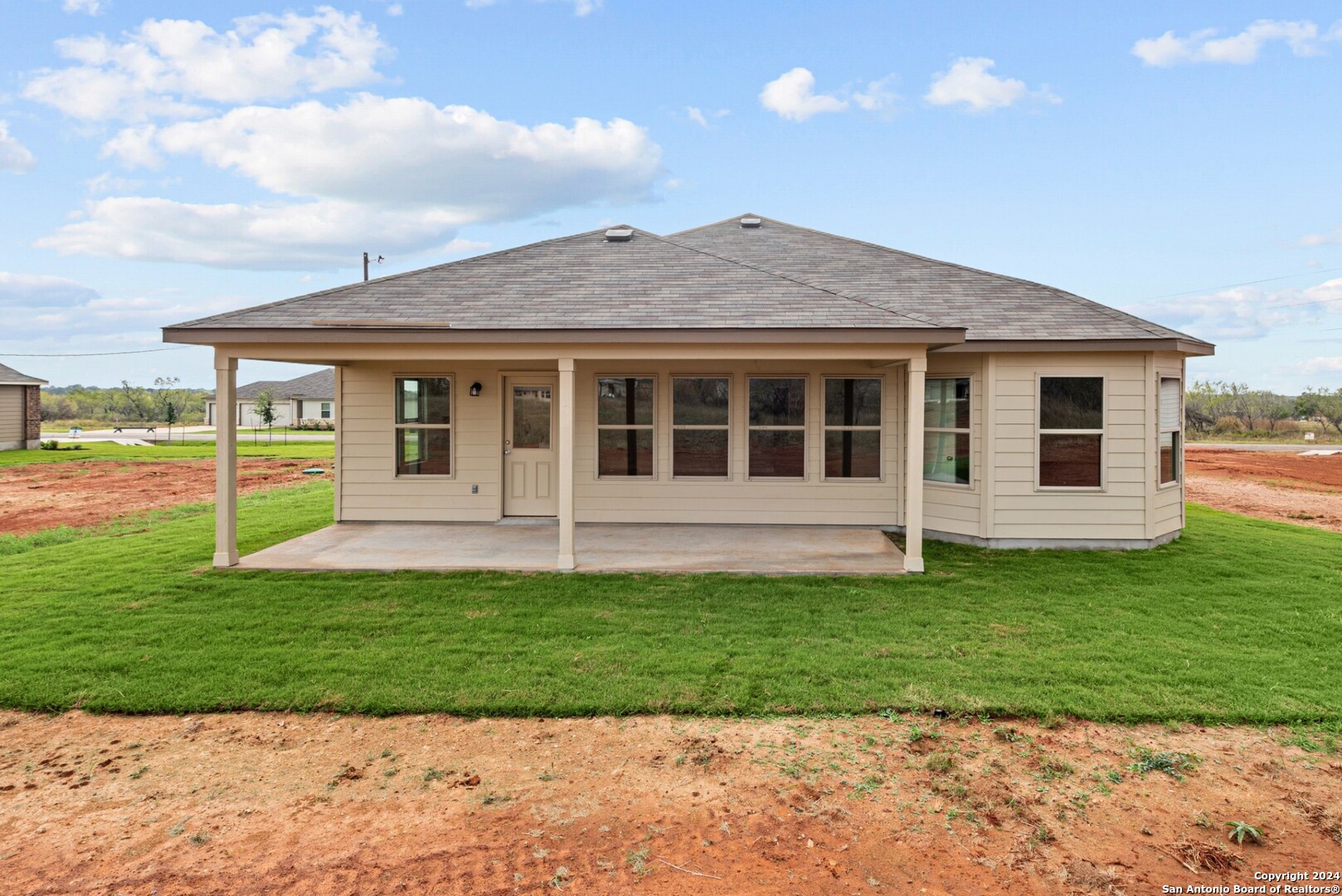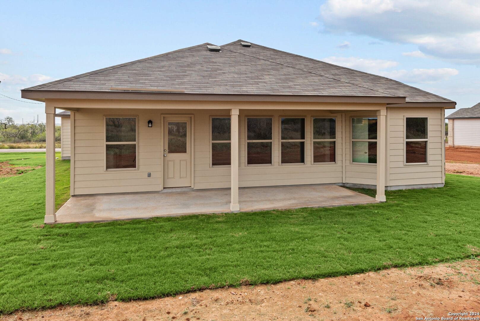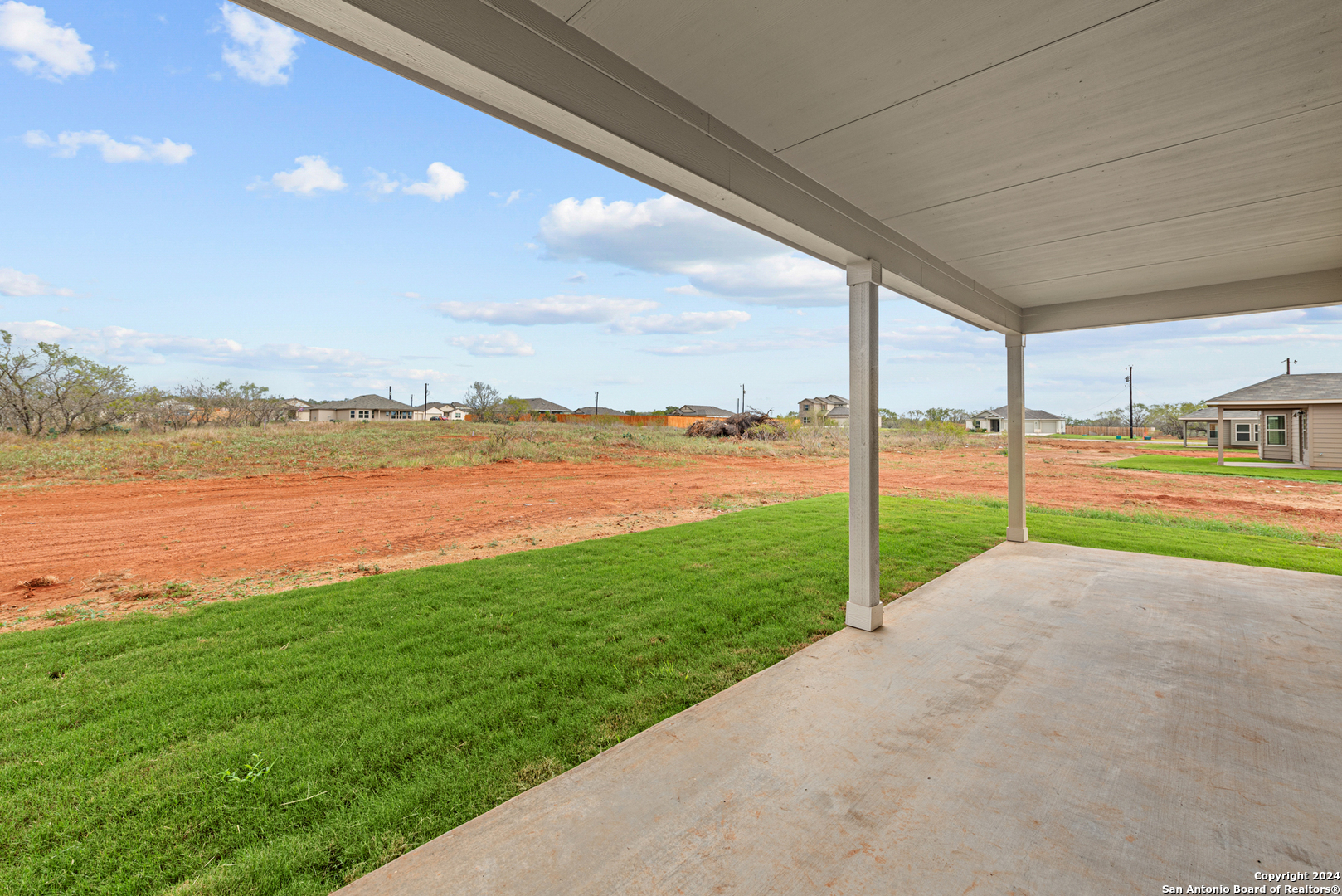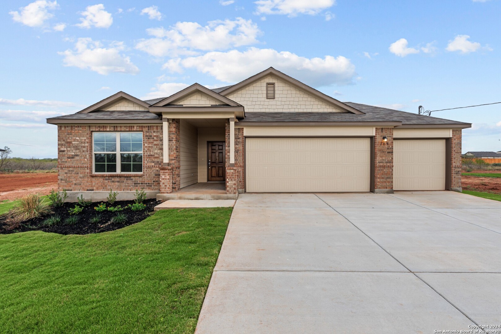 ***READY NOW*** Welcome to this stunning 4-bedroom, 3-bathroom new construction home located at 109 Reno Trail in the inviting community of Floresville, TX. This single-story home, built by M/I Homes, offers a modern and spacious design perfect for comfortable living. As you step inside, you'll be greeted by an open floor plan that seamlessly connects the living area, dining space, and kitchen. The kitchen is a chef's delight, featuring sleek countertops, ample cabinet space, and modern appliances, making meal preparation a joy. The primary bedroom is a peaceful retreat with a well-appointed en-suite bathroom offering a luxurious shower and dual vanities. The 3 additional bedrooms are generously sized and versatile, perfect for accommodating guests, a home office, or a growing family. Enjoy the convenience of a covered patio, ideal for relaxing outdoors and hosting gatherings with friends and family. With 3 parking spaces available, parking will never be a concern for you or your guests. Located in a vibrant community, this home offers a serene escape from the hustle and bustle of city life while still being close to urban conveniences.