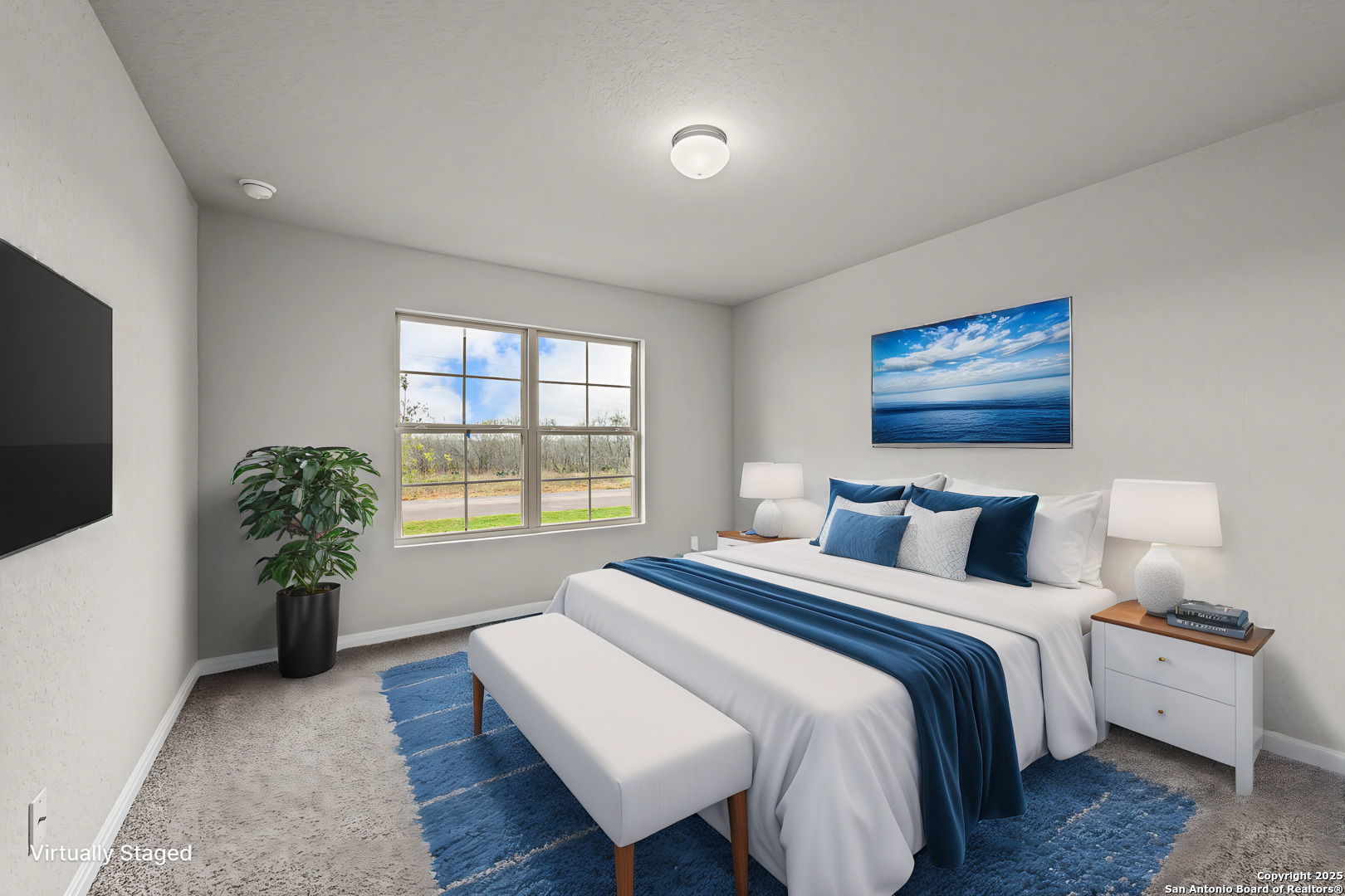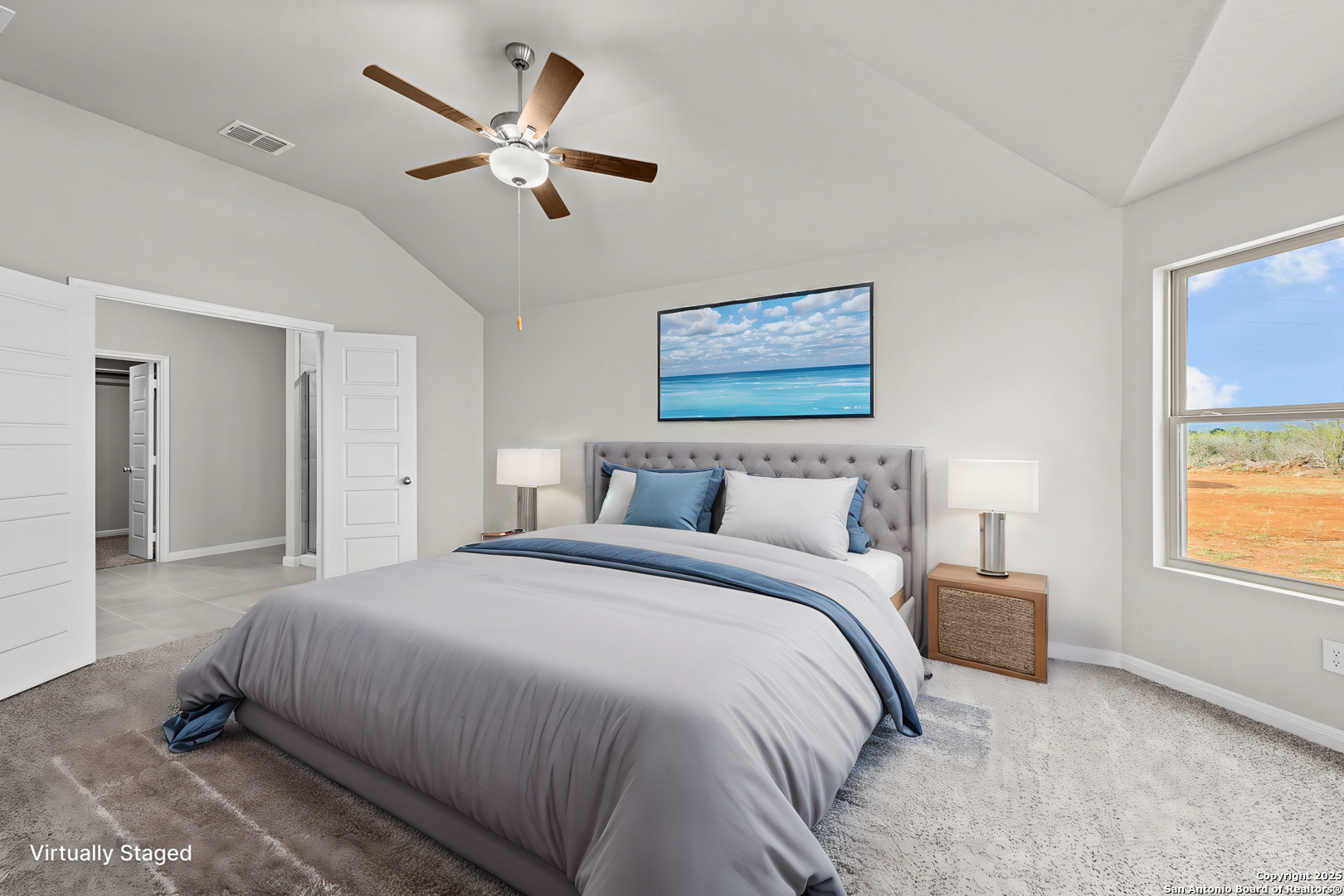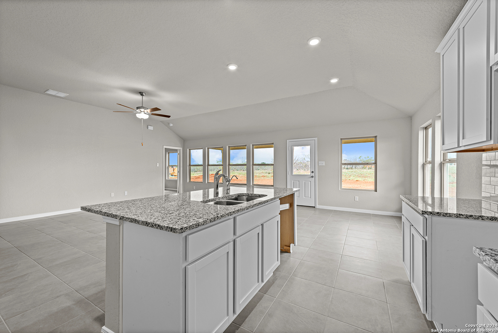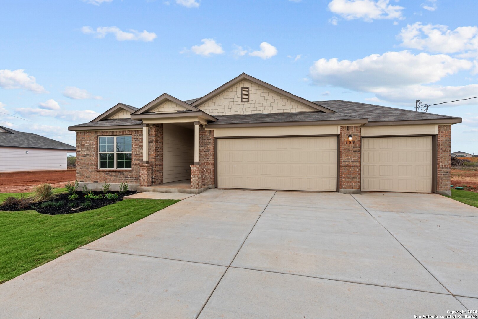 ***READY NOW*** Welcome to this stunning 4-bedroom, 3-bathroom new construction home located at 109 Reno Trail in the inviting community of Floresville, TX. This single-story home, built by M/I Homes, offers a modern and spacious design perfect for comfortable living. As you step inside, you'll be greeted by an open floor plan that seamlessly connects the living area, dining space, and kitchen. The kitchen is a chef's delight, featuring sleek countertops, ample cabinet space, and modern appliances, making meal preparation a joy. The primary bedroom is a peaceful retreat with a well-appointed en-suite bathroom offering a luxurious shower and dual vanities. The 3 additional bedrooms are generously sized and versatile, perfect for accommodating guests, a home office, or a growing family. Enjoy the convenience of a covered patio, ideal for relaxing outdoors and hosting gatherings with friends and family. With 3 parking spaces available, parking will never be a concern for you or your guests. Located in a vibrant community, this home offers a serene escape from the hustle and bustle of city life while still being close to urban conveniences.