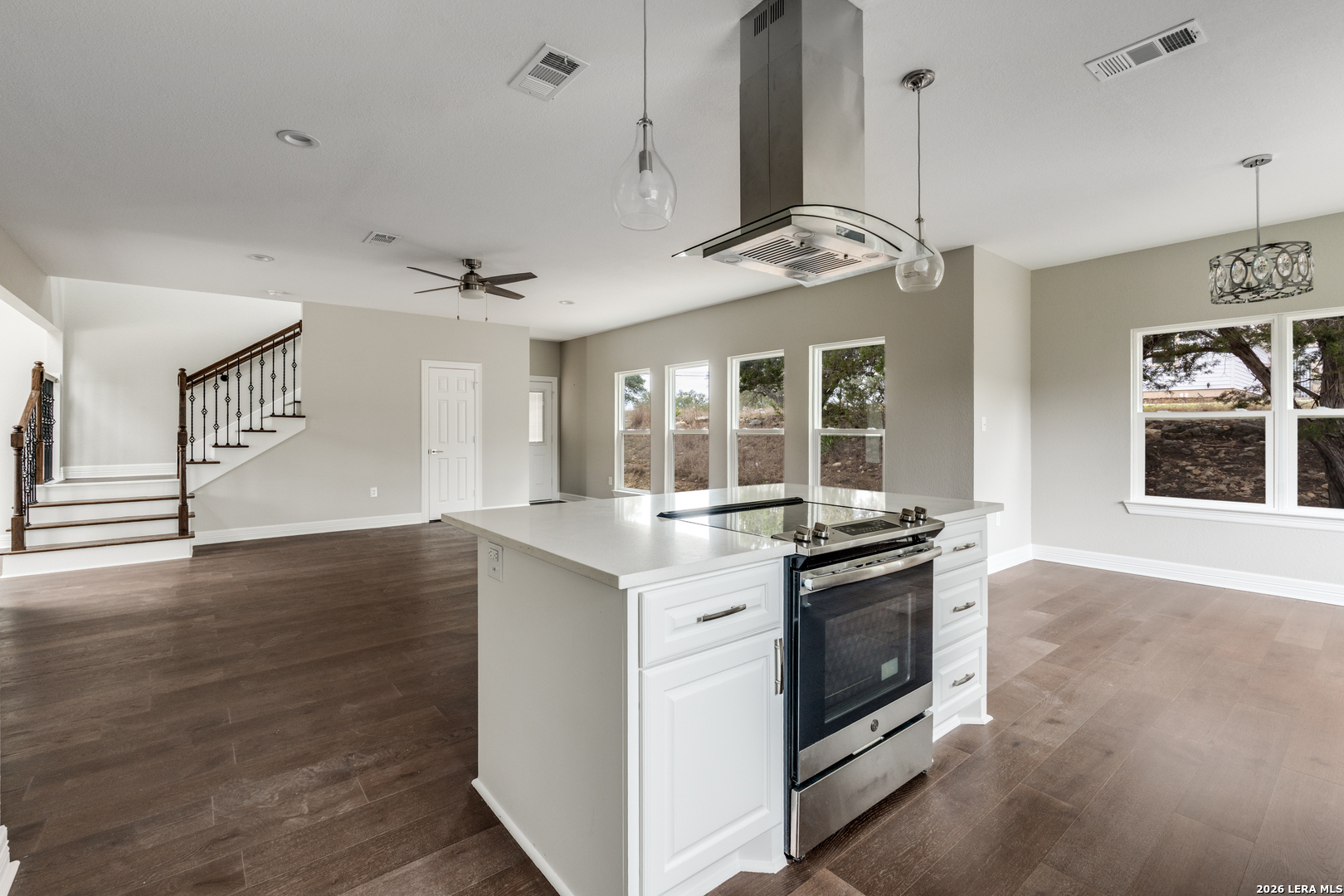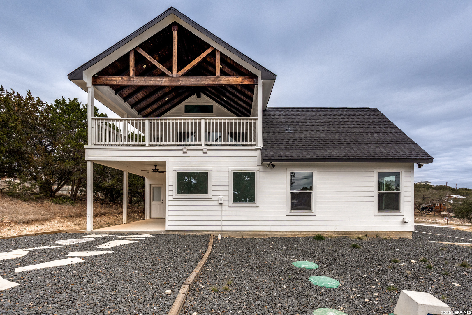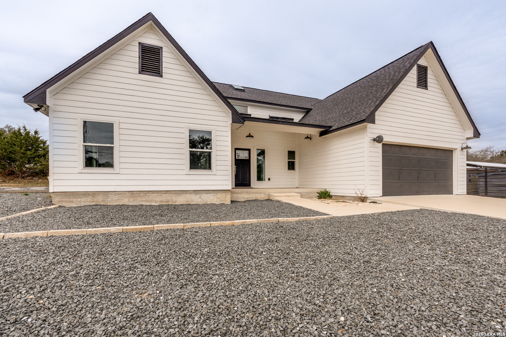 Situated in Hancock Oak Hills community in Canyon Lake, TX, this exceptional 2023 residence offers 3 bedrooms, 2.5 baths, and 2,182 square feet of thoughtfully designed living space on an oversized lot with water access. Blending refined modern farmhouse architecture with the natural beauty of the Texas Hill Country, this home delivers elevated design and effortless lake living. The open-concept floor plan is anchored by soaring vaulted ceilings with exposed wood beams and expansive windows that fill the space with natural light. Wood-look flooring flows throughout the main living areas, creating a seamless and sophisticated aesthetic. The spacious living room transitions effortlessly into the dining area and chef-inspired kitchen, designed for both everyday comfort and upscale entertaining. The kitchen features a generous center island, stainless steel appliances, custom vent hood, ample cabinetry, and clean contemporary finishes. Its open layout provides ideal sightlines and connectivity, making it the true heart of the home. Upstairs, a versatile loft overlooks the main living area and offers flexible space for a second living room, media area, home office, or game room. The covered balcony provides a private retreat to enjoy peaceful Hill Country views and relaxing Canyon Lake evenings. The oversized lot offers space, privacy, and potential for outdoor customization. A two-car garage and covered entry enhance functionality, while convenient access to nearby boat ramps, parks, and lake amenities adds to the home's appeal. This property presents a rare opportunity to own a newer construction home with water access in one of Canyon Lake's most sought-after communities-offering a seamless blend of luxury, comfort, and lifestyle.