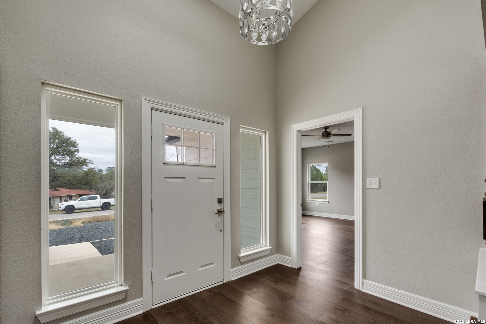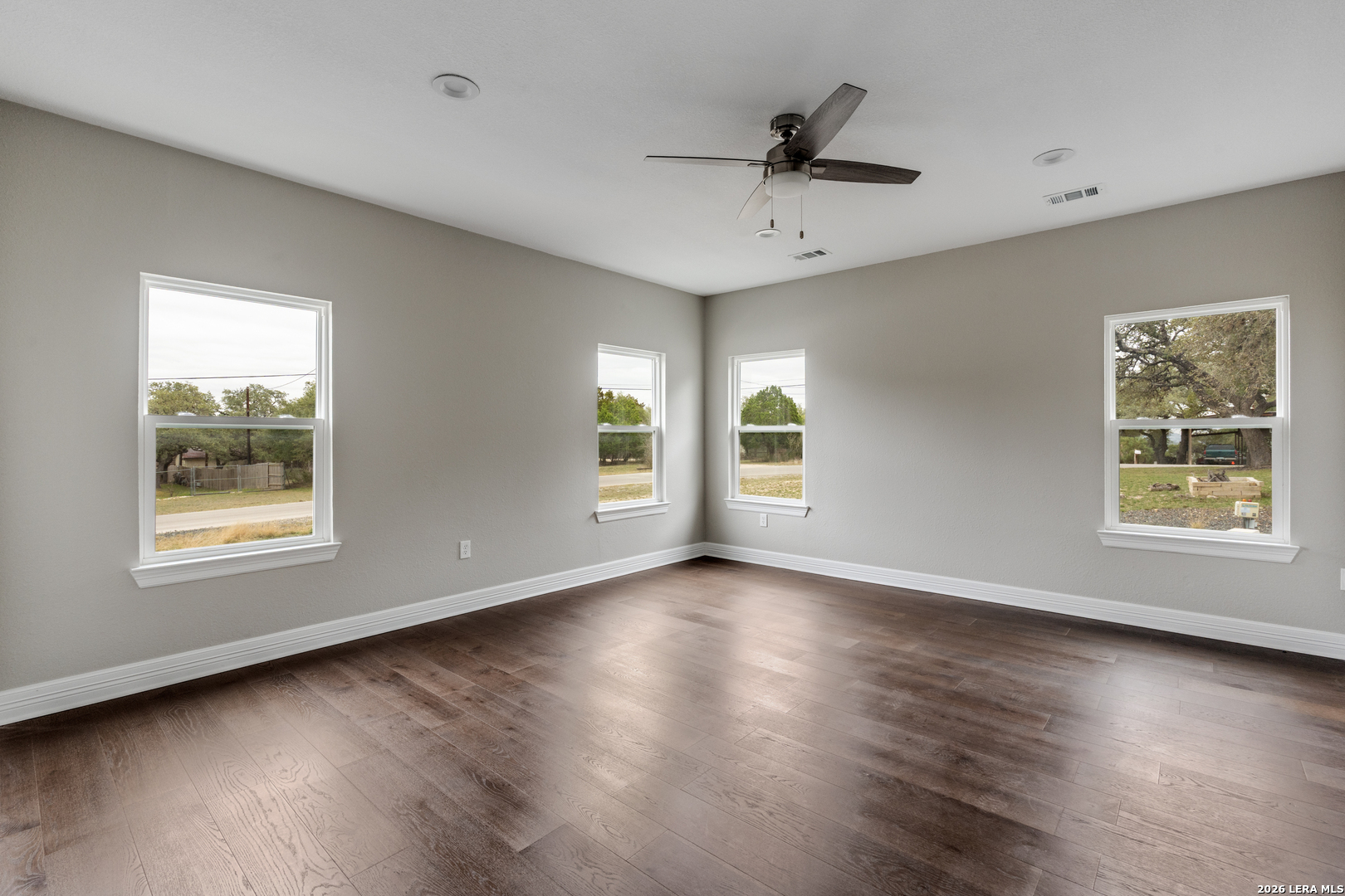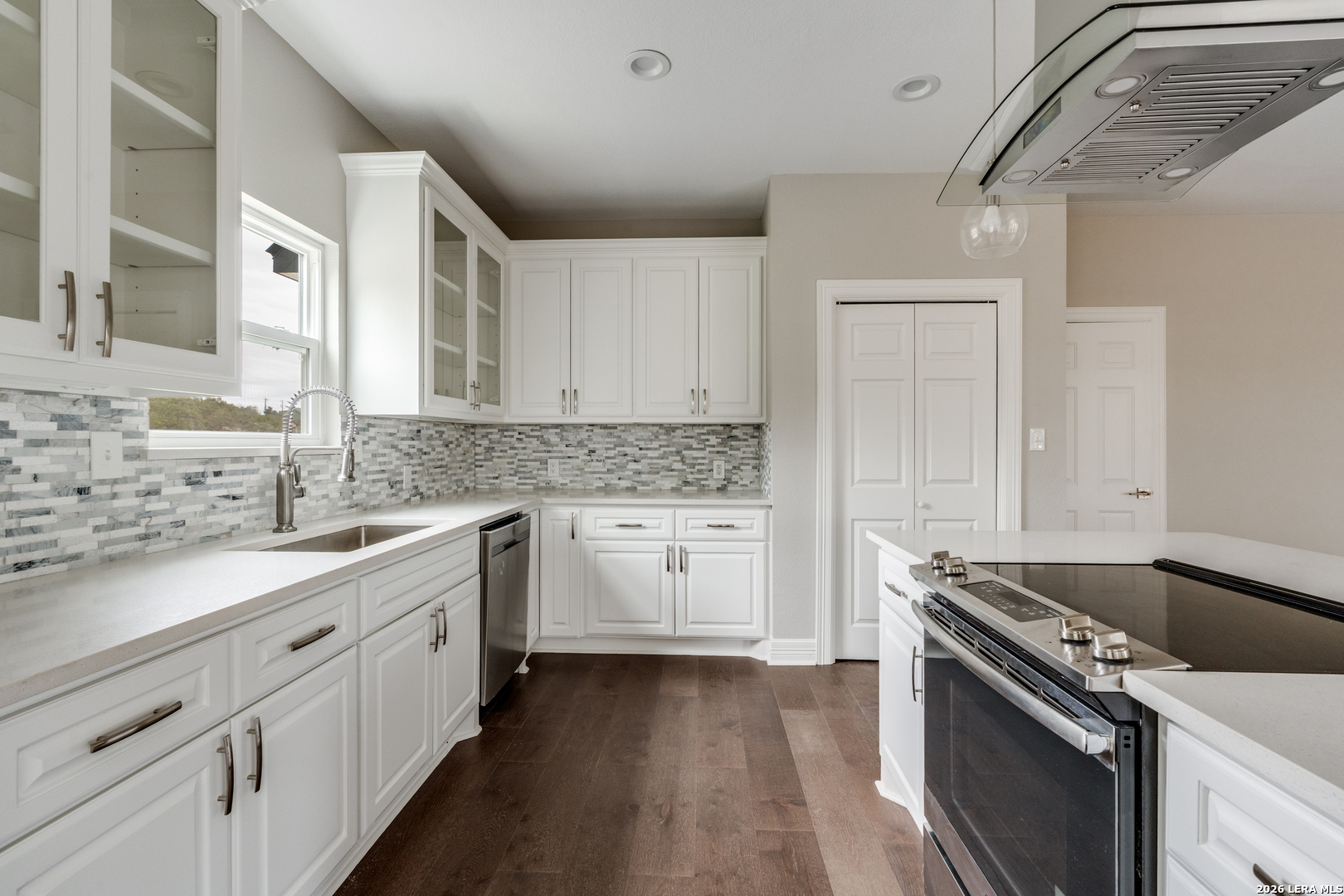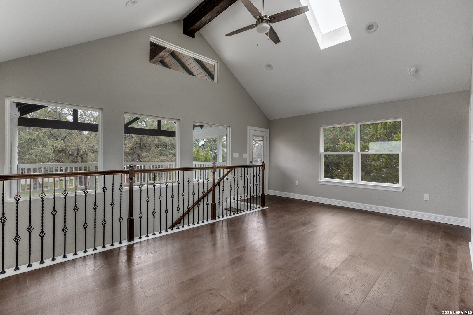 Situated in Hancock Oak Hills community in Canyon Lake, TX, this exceptional 2023 residence offers 3 bedrooms, 2.5 baths, and 2,182 square feet of thoughtfully designed living space on an oversized lot with water access. Blending refined modern farmhouse architecture with the natural beauty of the Texas Hill Country, this home delivers elevated design and effortless lake living. The open-concept floor plan is anchored by soaring vaulted ceilings with exposed wood beams and expansive windows that fill the space with natural light. Wood-look flooring flows throughout the main living areas, creating a seamless and sophisticated aesthetic. The spacious living room transitions effortlessly into the dining area and chef-inspired kitchen, designed for both everyday comfort and upscale entertaining. The kitchen features a generous center island, stainless steel appliances, custom vent hood, ample cabinetry, and clean contemporary finishes. Its open layout provides ideal sightlines and connectivity, making it the true heart of the home. Upstairs, a versatile loft overlooks the main living area and offers flexible space for a second living room, media area, home office, or game room. The covered balcony provides a private retreat to enjoy peaceful Hill Country views and relaxing Canyon Lake evenings. The oversized lot offers space, privacy, and potential for outdoor customization. A two-car garage and covered entry enhance functionality, while convenient access to nearby boat ramps, parks, and lake amenities adds to the home's appeal. This property presents a rare opportunity to own a newer construction home with water access in one of Canyon Lake's most sought-after communities-offering a seamless blend of luxury, comfort, and lifestyle.
