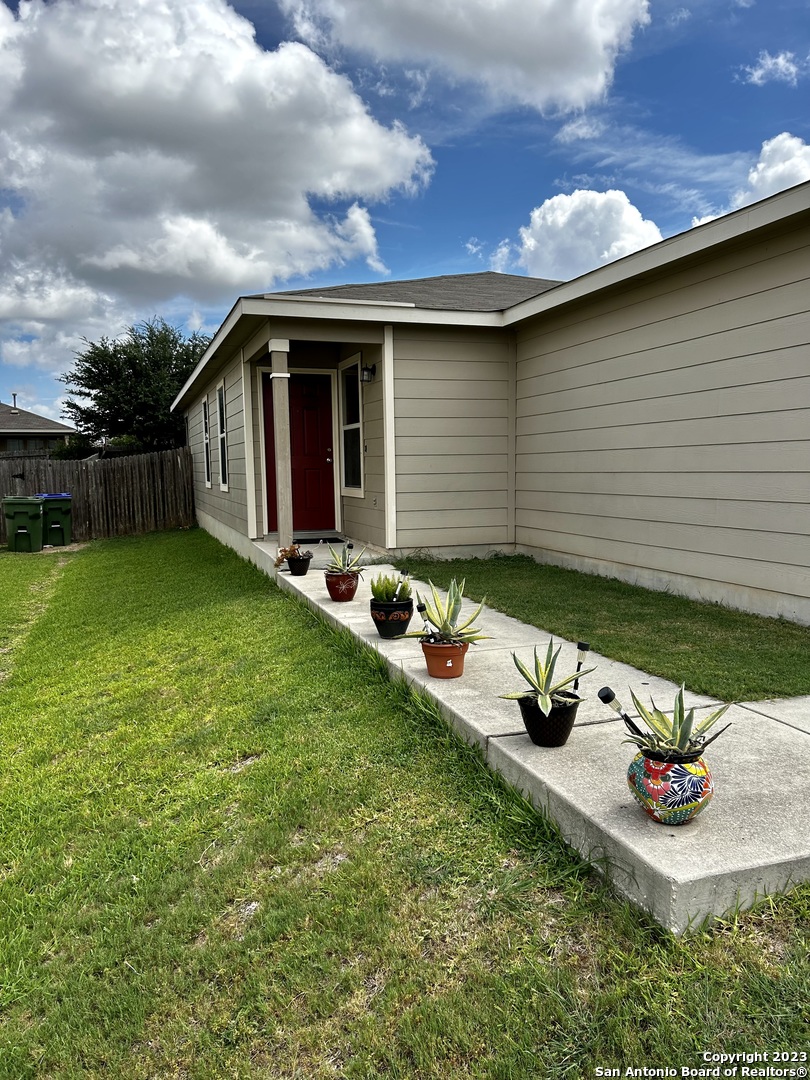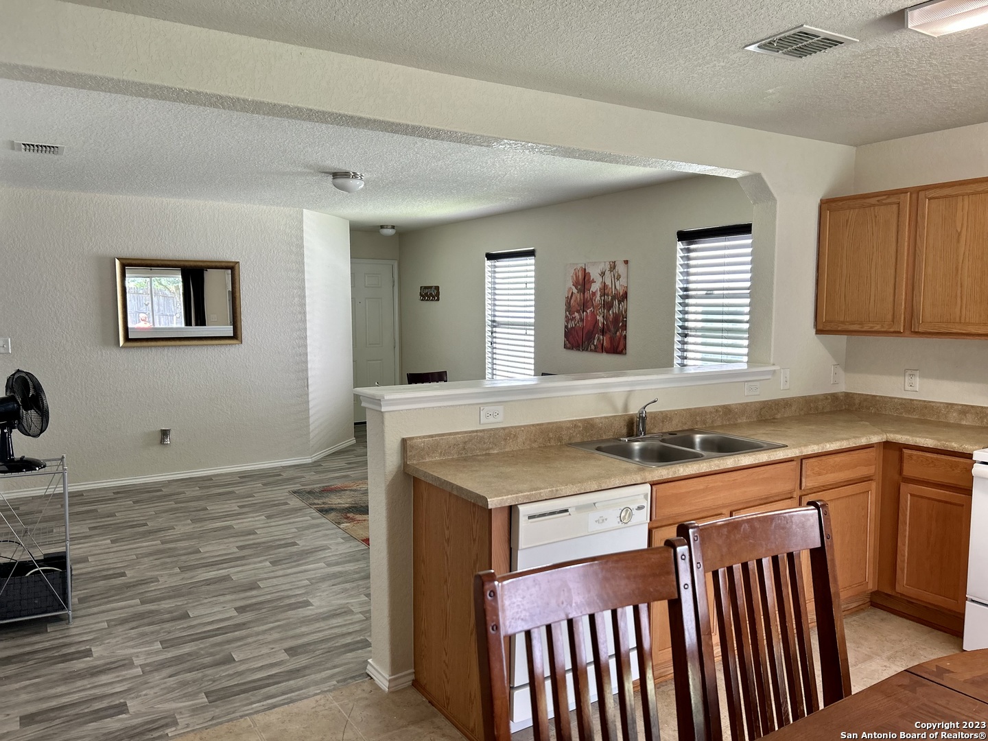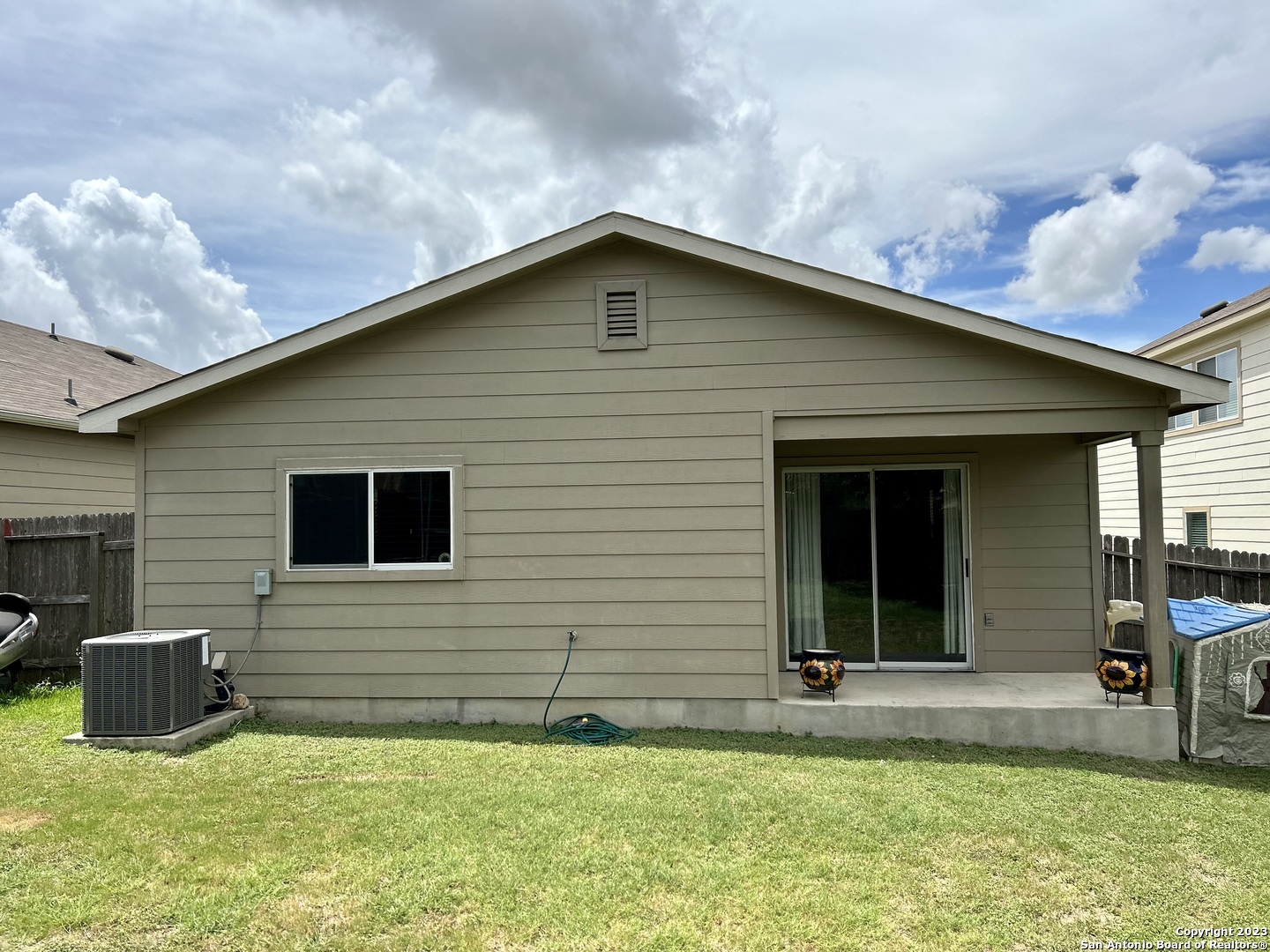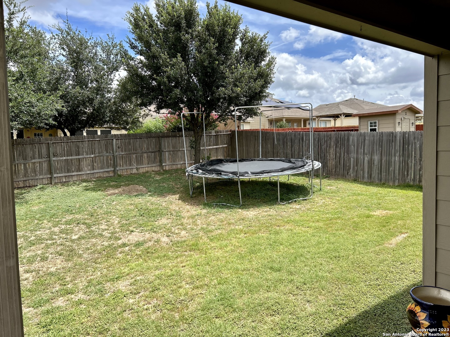 Charming 1-Story Home in Hillcrest Subdivision located on the Northside of San Antonio. Home is move-in ready! This 3-bedroom 2-bath Centex home features a welcoming open concept living-dining-kitchen area. No Carpet. Enjoy the covered patio and spacious backyard for great outdoor entertainment. Great neighborhood with two pools and a covered park for your children. You will love the location, close to military bases, shops, sea world, and restaurants. Book your showing today!