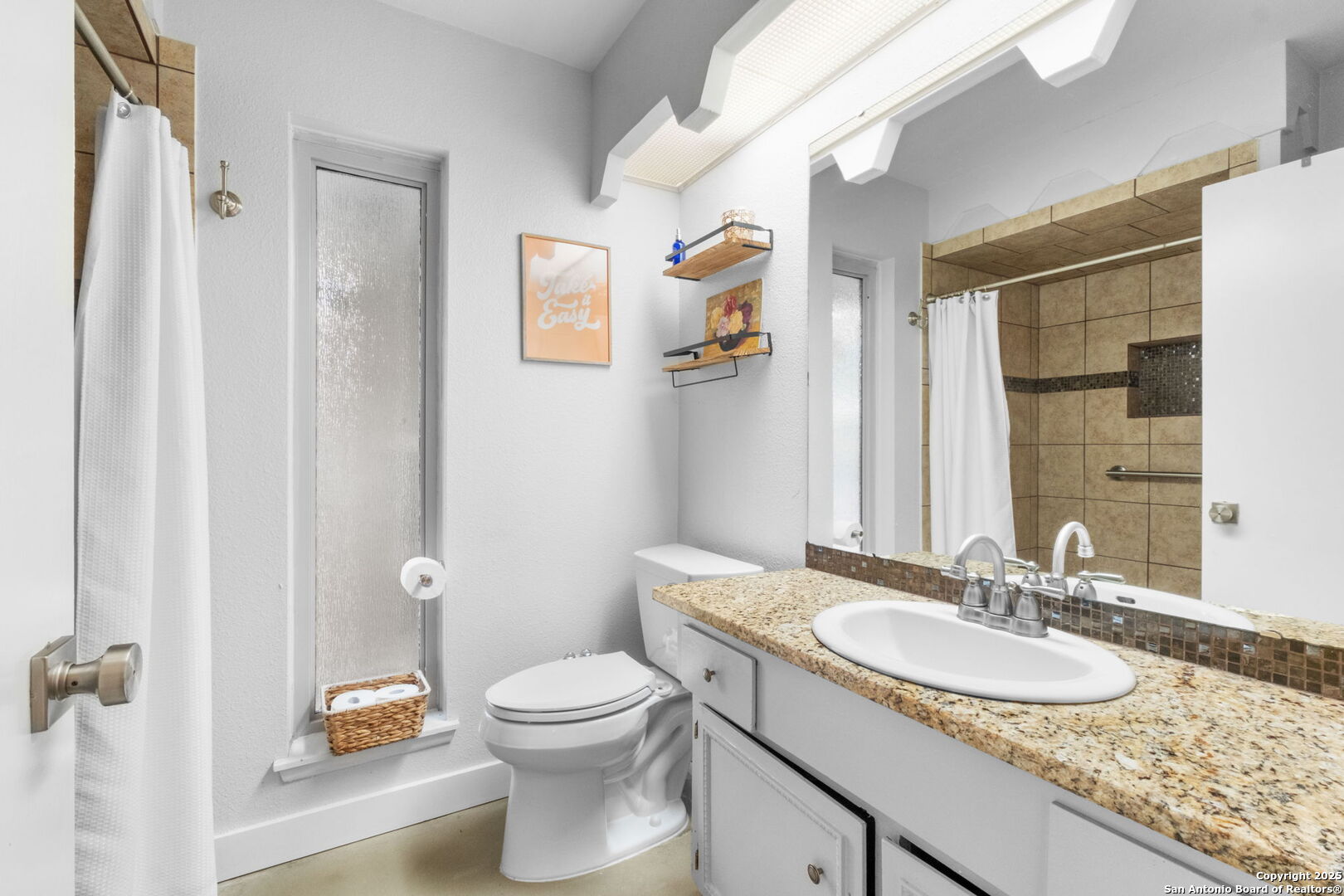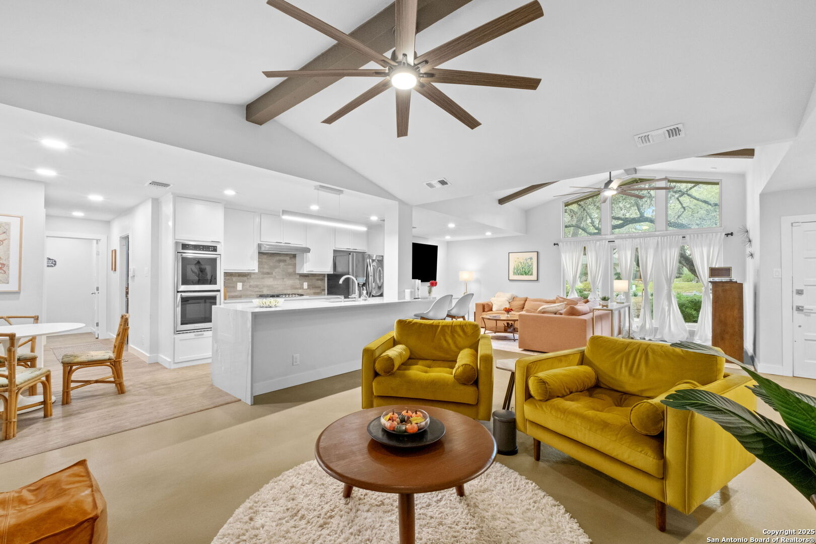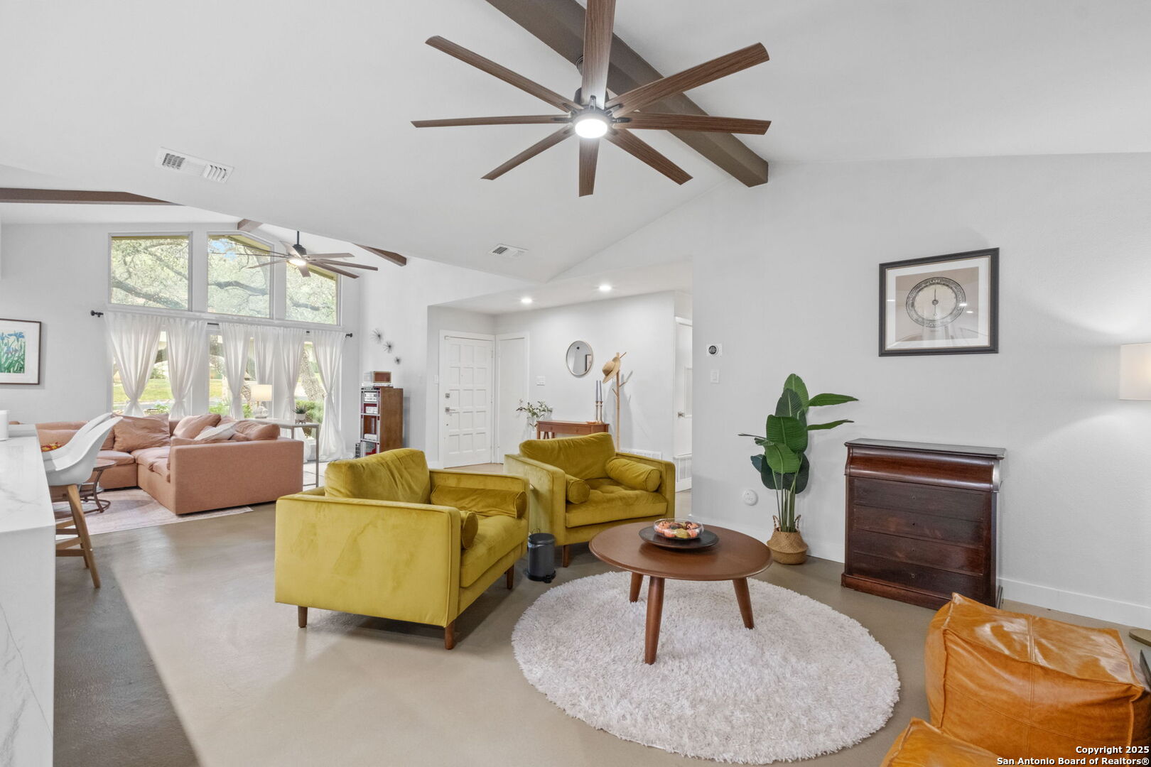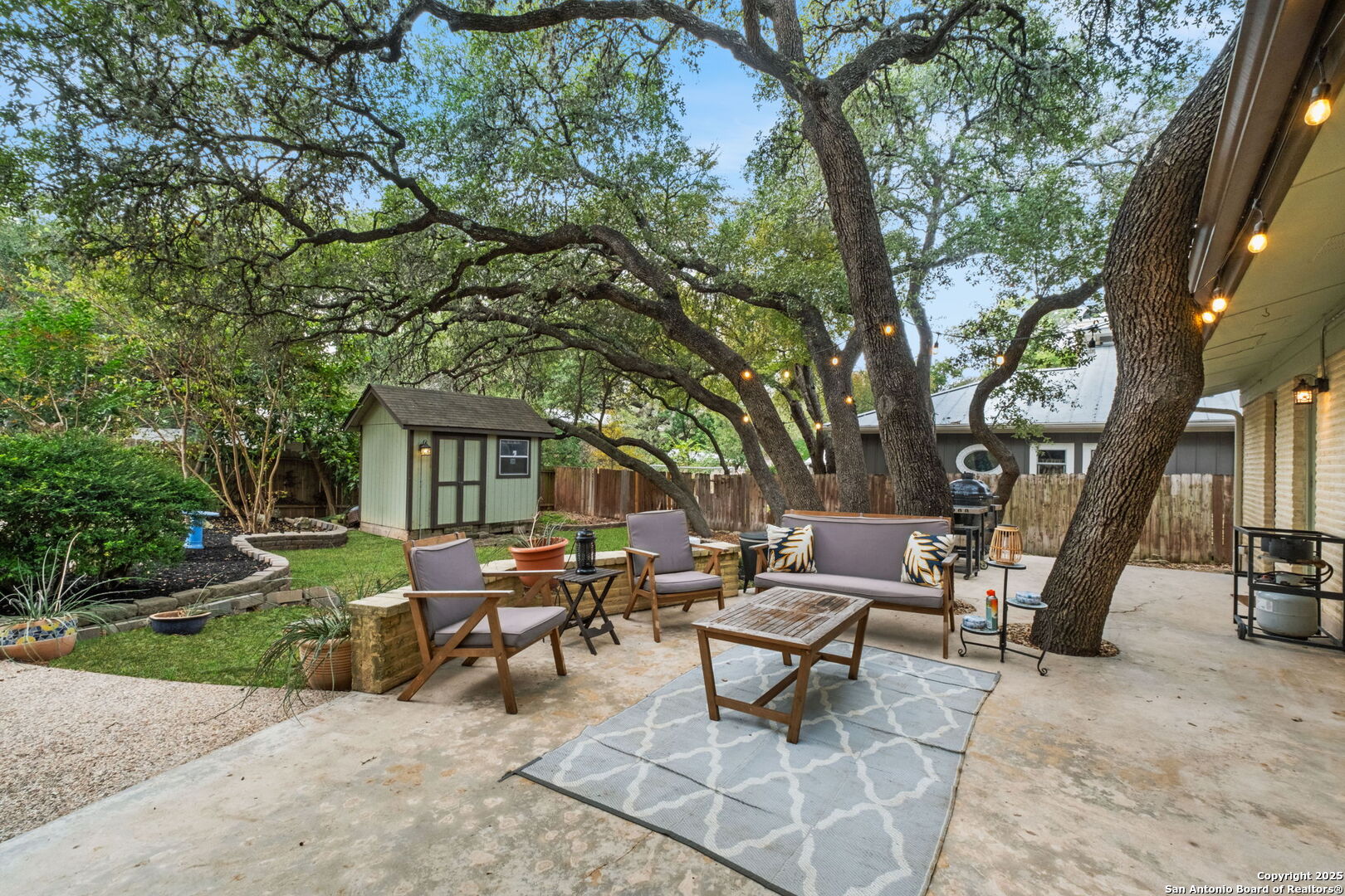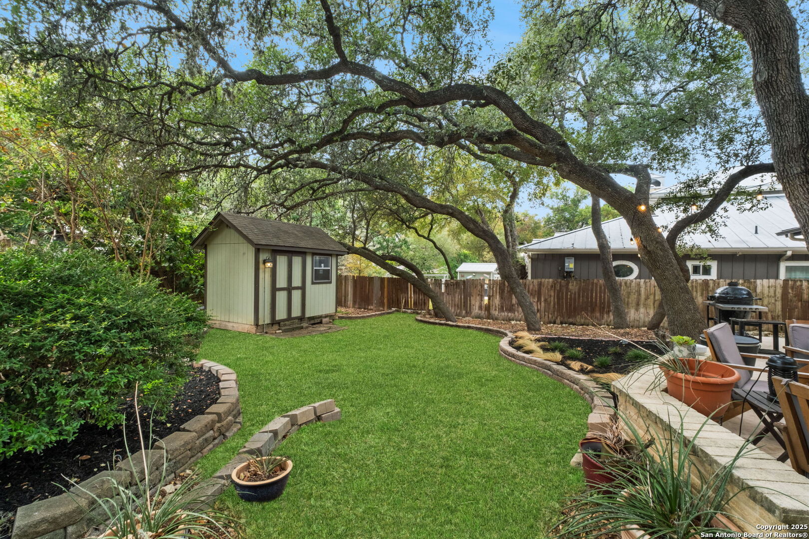 Welcome home to 10922 Whispering Wind, a beautifully updated, single-story retreat tucked into the peaceful, heavily treed Whispering Oaks community - the perfect place for anyone looking to plant roots. Step inside to an open, airy layout with soaring vaulted ceilings and elegant wooden-beam accents that lend a warm, welcoming feel. The heart of the home is a chef's dream: a modern kitchen with gas cooking, double ovens, and a generous waterfall quartz island - ideal for easy entertaining or cooking for loved ones. This home boasts three comfortable bedrooms and two bathrooms, offering relaxed, everyday living without the fuss. Outside, your private backyard oasis comes alive: a sparkling pool glistens under mature trees, while a shaded pergola invites mornings with coffee or evenings with family barbecues. The backyard also includes a shed with connected power - your workshop or crafting getaway. The two-car garage is multi-purpose; the homeowner has added air conditioning. When not storing your cars, use it as an office, gym, or anything you want! Beyond the backyard, the location shines. You're just minutes from essential conveniences - including H-E-B grocery, top-rated schools, the Medical Center, The airport, shopping, dining, and entertainment. Plus, this community offers optional HOA access to a pool and tennis amenities for added recreation. When it comes to dining and leisure, you're spoiled for choice: Pam's Patio Kitchen, Milano on Wurzbach, and Myrons Prime Steakhouse are just a few of the great eateries within one mile located on nearby Wurzbach Road, - perfect for a relaxed evening out. For outdoor enjoyment, the Salado creek greenway runs directly past the neighborhood offering miles of biking and hiking and connecting to many of San Antonio's storied outdoor spaces such as the renowned Phil Hardberger Park less than one mile away. Spread over 330 acres, this urban oasis features miles of trails, a nature-play area, butterfly garden, land-bridge, dog parks, and open fields - ideal for peaceful walks, birdwatching, or family picnics. At 10922 Whispering Wind, you truly get the best of many worlds: serene privacy and a comfortable, friendly space - all within a vibrant, well-connected North San Antonio neighborhood. Let this be the place where your next chapter begins.