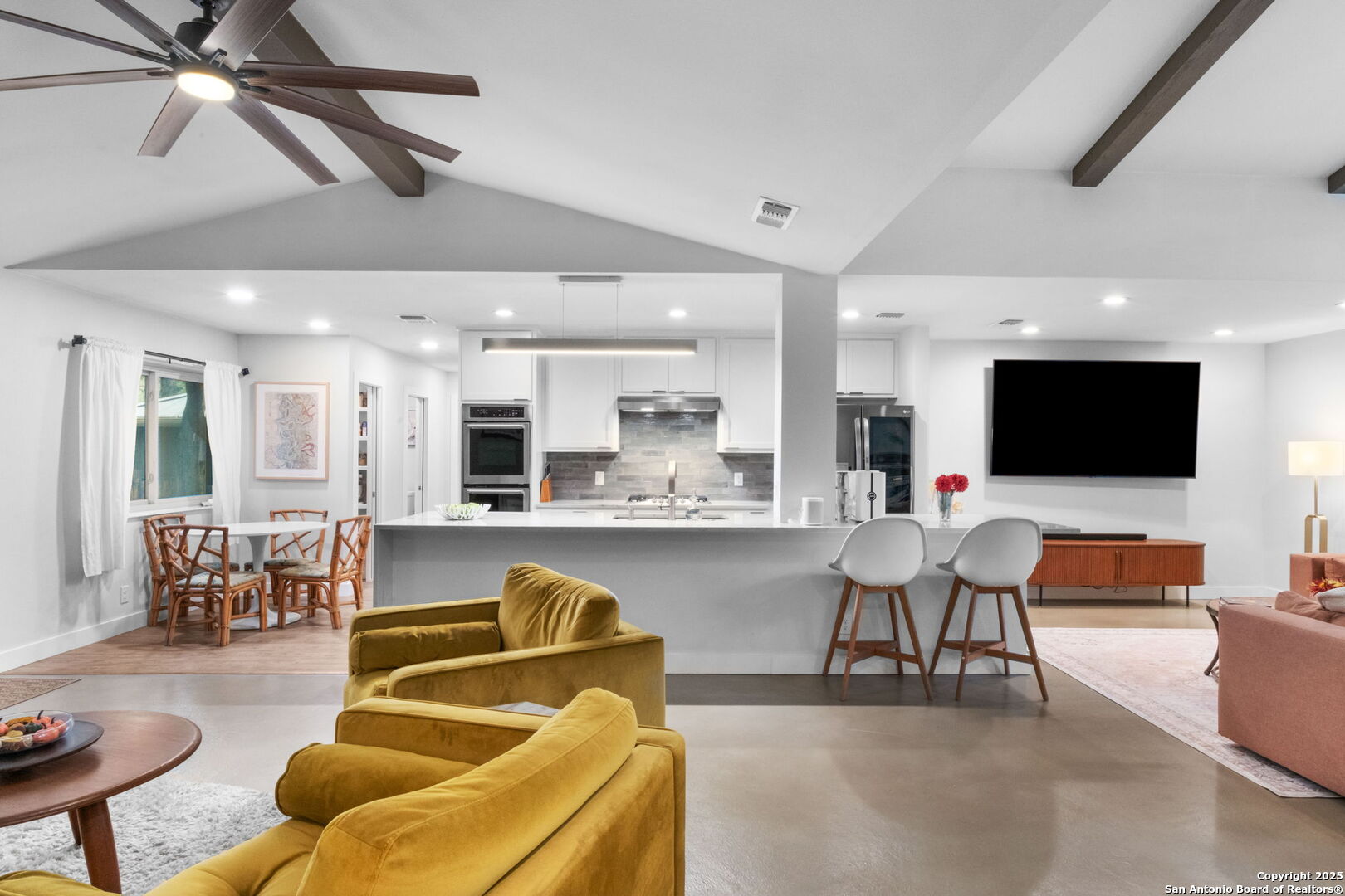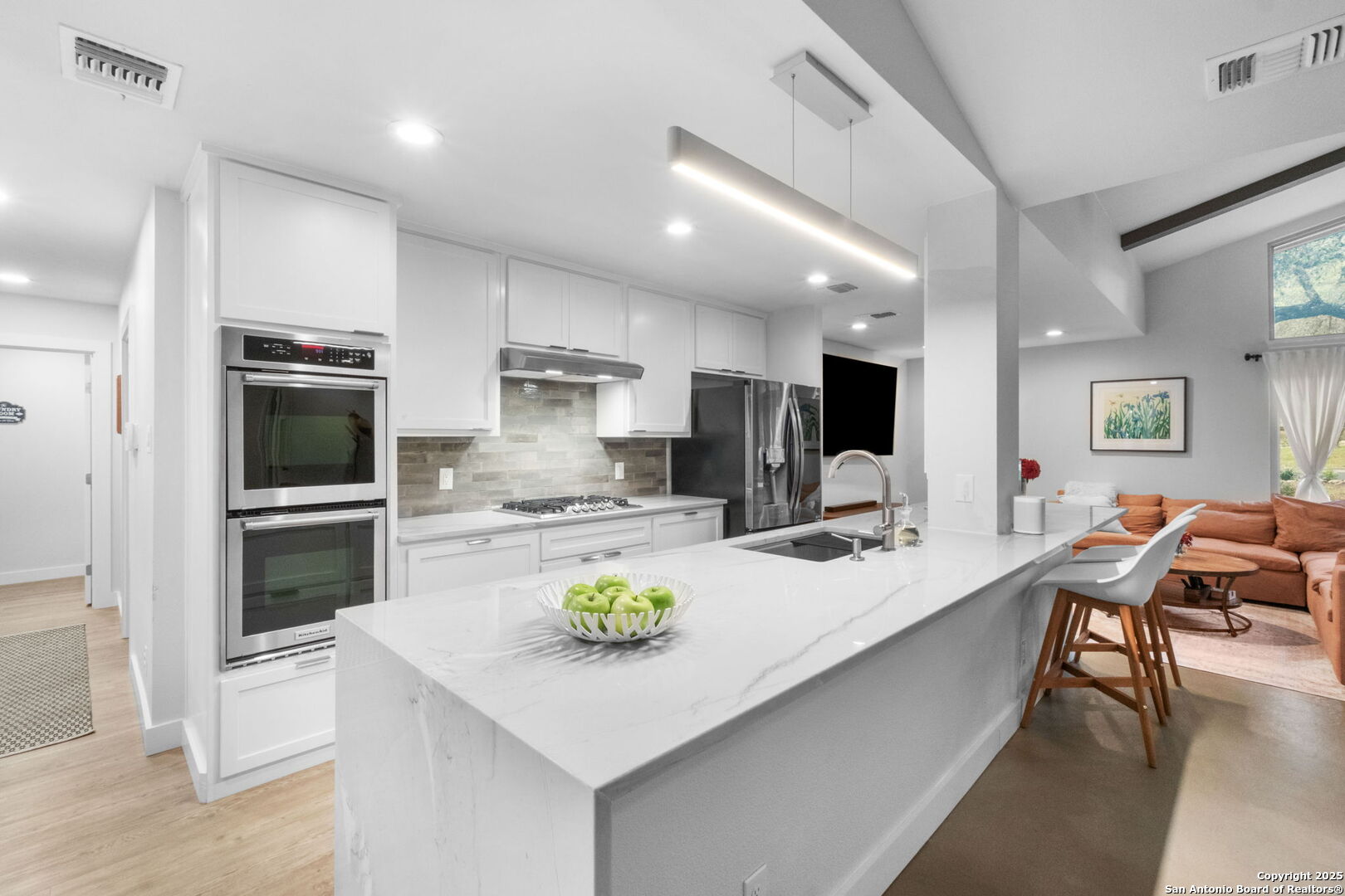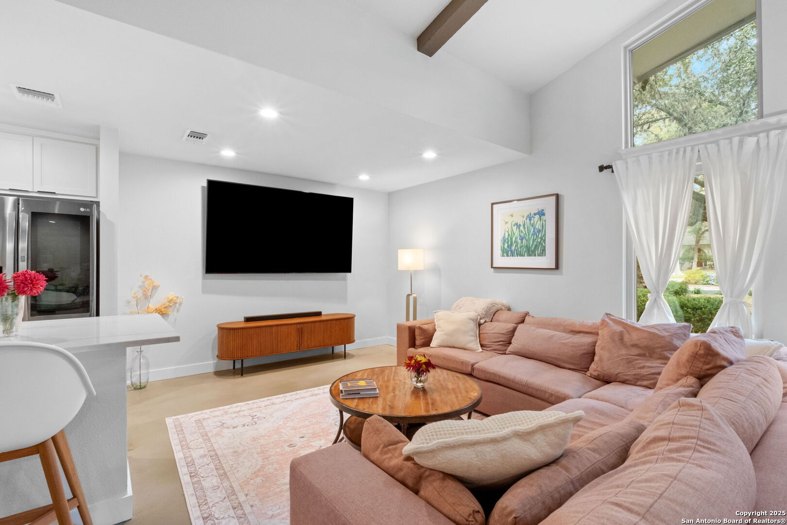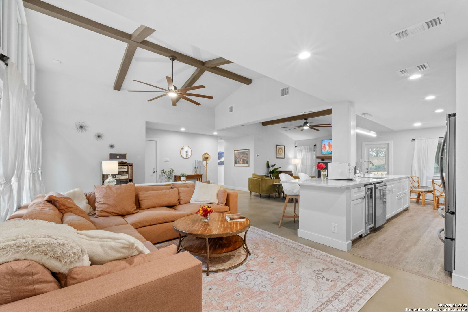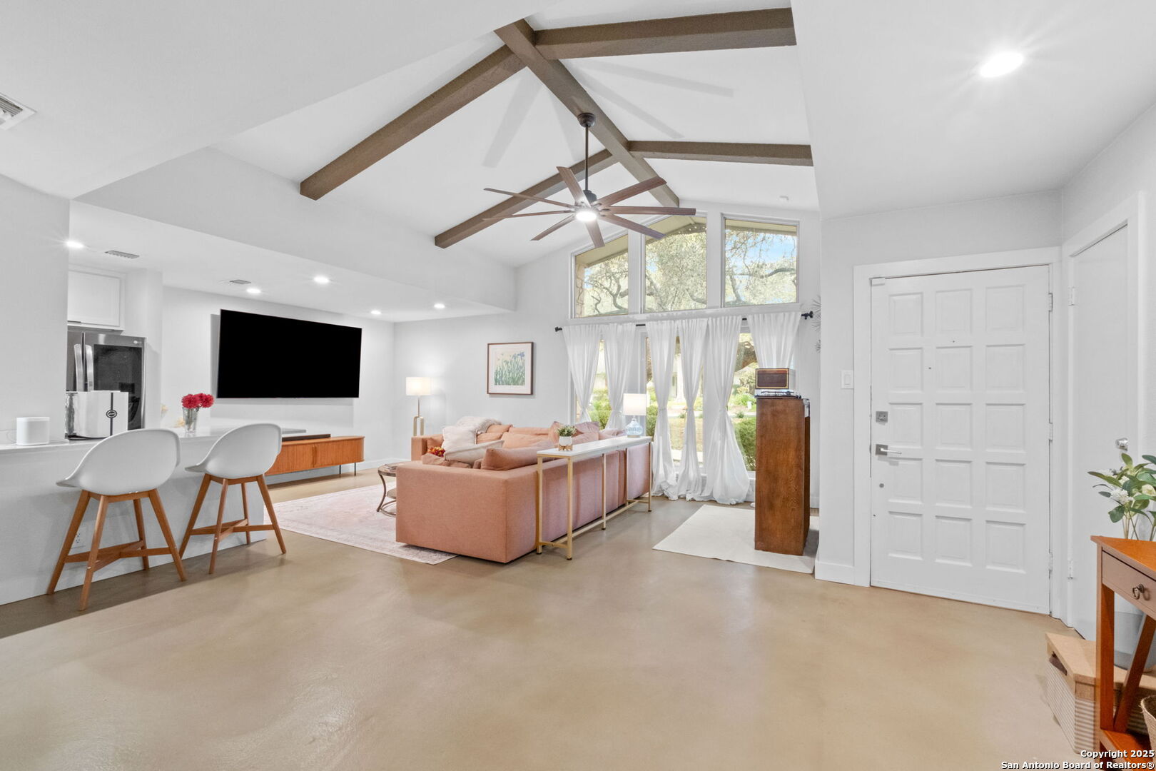 Welcome home to 10922 Whispering Wind, a beautifully updated, single-story retreat tucked into the peaceful, heavily treed Whispering Oaks community - the perfect place for anyone looking to plant roots. Step inside to an open, airy layout with soaring vaulted ceilings and elegant wooden-beam accents that lend a warm, welcoming feel. The heart of the home is a chef's dream: a modern kitchen with gas cooking, double ovens, and a generous waterfall quartz island - ideal for easy entertaining or cooking for loved ones. This home boasts three comfortable bedrooms and two bathrooms, offering relaxed, everyday living without the fuss. Outside, your private backyard oasis comes alive: a sparkling pool glistens under mature trees, while a shaded pergola invites mornings with coffee or evenings with family barbecues. The backyard also includes a shed with connected power - your workshop or crafting getaway. The two-car garage is multi-purpose; the homeowner has added air conditioning. When not storing your cars, use it as an office, gym, or anything you want! Beyond the backyard, the location shines. You're just minutes from essential conveniences - including H-E-B grocery, top-rated schools, the Medical Center, The airport, shopping, dining, and entertainment. Plus, this community offers optional HOA access to a pool and tennis amenities for added recreation. When it comes to dining and leisure, you're spoiled for choice: Pam's Patio Kitchen, Milano on Wurzbach, and Myrons Prime Steakhouse are just a few of the great eateries within one mile located on nearby Wurzbach Road, - perfect for a relaxed evening out. For outdoor enjoyment, the Salado creek greenway runs directly past the neighborhood offering miles of biking and hiking and connecting to many of San Antonio's storied outdoor spaces such as the renowned Phil Hardberger Park less than one mile away. Spread over 330 acres, this urban oasis features miles of trails, a nature-play area, butterfly garden, land-bridge, dog parks, and open fields - ideal for peaceful walks, birdwatching, or family picnics. At 10922 Whispering Wind, you truly get the best of many worlds: serene privacy and a comfortable, friendly space - all within a vibrant, well-connected North San Antonio neighborhood. Let this be the place where your next chapter begins.
