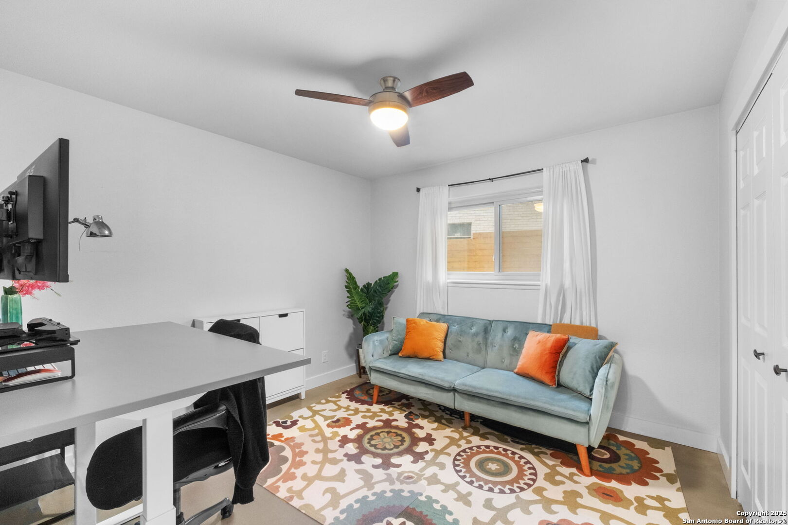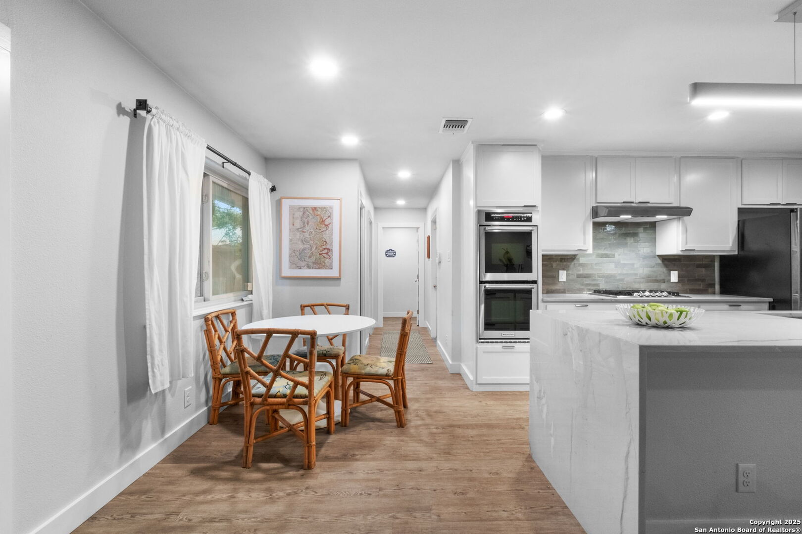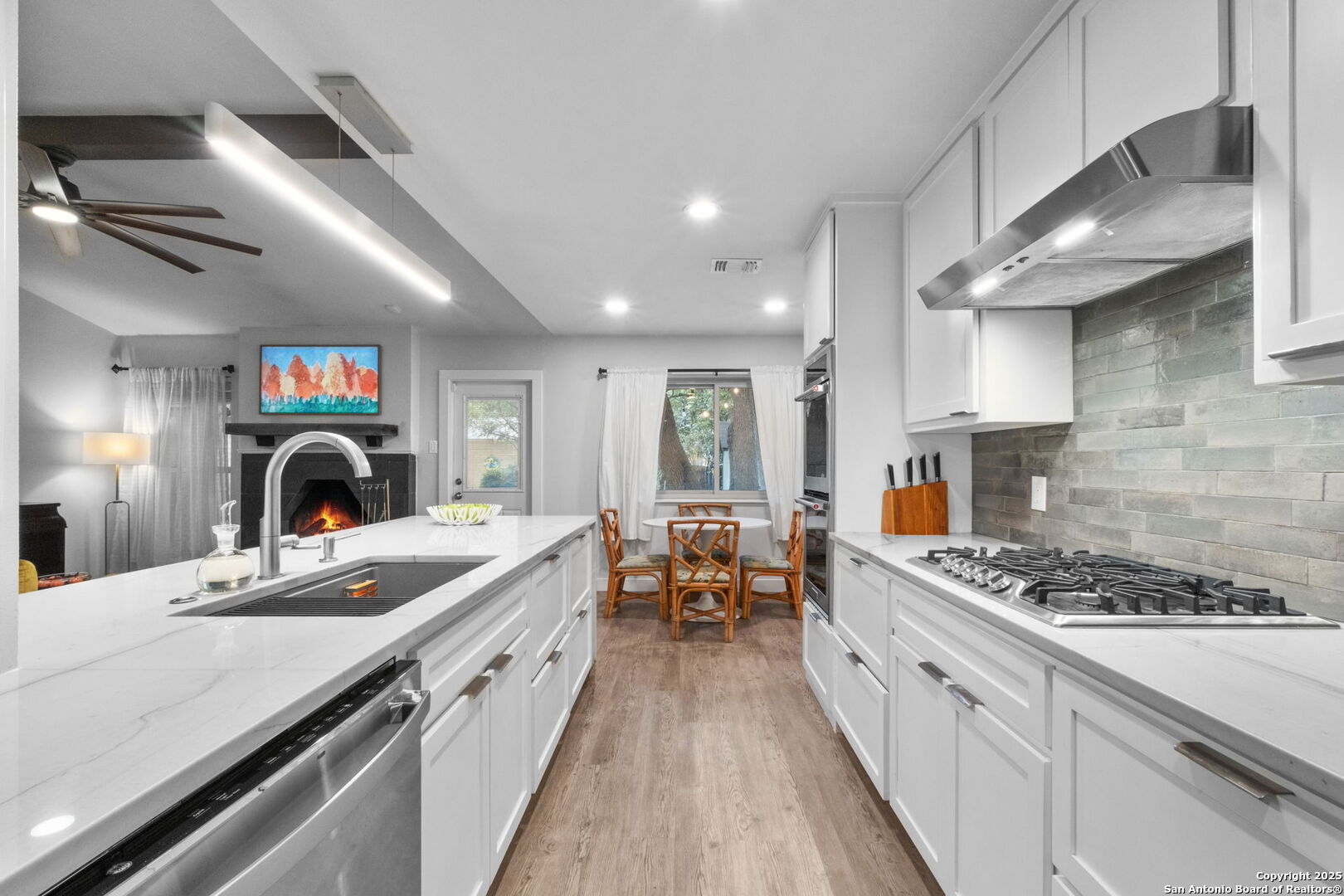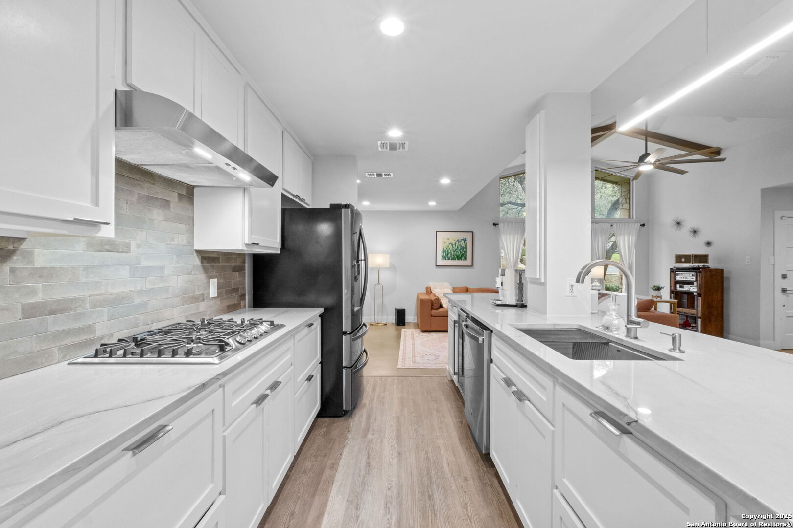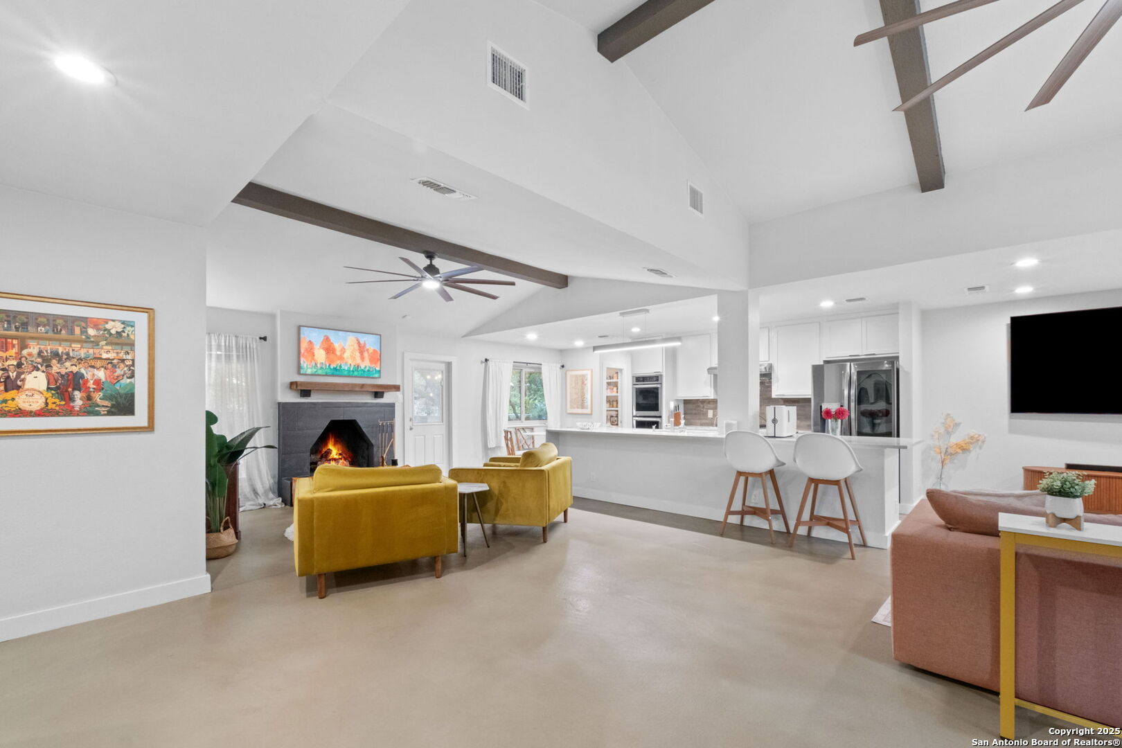 Welcome home to 10922 Whispering Wind, a beautifully updated, single-story retreat tucked into the peaceful, heavily treed Whispering Oaks community - the perfect place for anyone looking to plant roots. Step inside to an open, airy layout with soaring vaulted ceilings and elegant wooden-beam accents that lend a warm, welcoming feel. The heart of the home is a chef's dream: a modern kitchen with gas cooking, double ovens, and a generous waterfall quartz island - ideal for easy entertaining or cooking for loved ones. This home boasts three comfortable bedrooms and two bathrooms, offering relaxed, everyday living without the fuss. Outside, your private backyard oasis comes alive: a sparkling pool glistens under mature trees, while a shaded pergola invites mornings with coffee or evenings with family barbecues. The backyard also includes a shed with connected power - your workshop or crafting getaway. The two-car garage is multi-purpose; the homeowner has added air conditioning. When not storing your cars, use it as an office, gym, or anything you want! Beyond the backyard, the location shines. You're just minutes from essential conveniences - including H-E-B grocery, top-rated schools, the Medical Center, The airport, shopping, dining, and entertainment. Plus, this community offers optional HOA access to a pool and tennis amenities for added recreation. When it comes to dining and leisure, you're spoiled for choice: Pam's Patio Kitchen, Milano on Wurzbach, and Myrons Prime Steakhouse are just a few of the great eateries within one mile located on nearby Wurzbach Road, - perfect for a relaxed evening out. For outdoor enjoyment, the Salado creek greenway runs directly past the neighborhood offering miles of biking and hiking and connecting to many of San Antonio's storied outdoor spaces such as the renowned Phil Hardberger Park less than one mile away. Spread over 330 acres, this urban oasis features miles of trails, a nature-play area, butterfly garden, land-bridge, dog parks, and open fields - ideal for peaceful walks, birdwatching, or family picnics. At 10922 Whispering Wind, you truly get the best of many worlds: serene privacy and a comfortable, friendly space - all within a vibrant, well-connected North San Antonio neighborhood. Let this be the place where your next chapter begins.