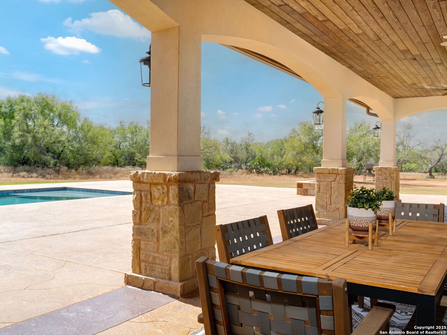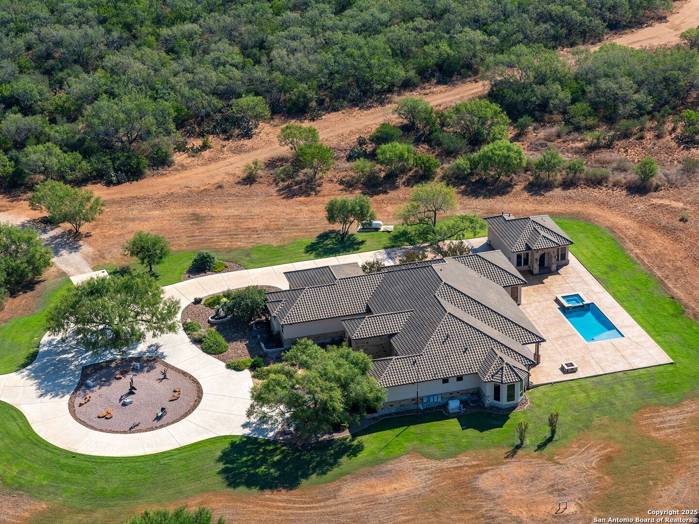 Presenting one of the finest turnkey ranches and new opportunities in South Texas, the La Parita Ranch. Spread across 1,056 acres of prime red-dirt country, this property blends refined improvements with exceptional wildlife and true land stewardship. The centerpiece of the ranch is a custom Mediterranean-style main home paired with a guest home, together offering over 4,600 square feet of luxury living. Every detail has been thoughtfully considered, from the 3 bedrooms, 3.5 baths, and multiple flex rooms to the expansive 2,000 square feet of outdoor patio space that opens to a sparkling pool and fire ring. The guest home, with 1 bedroom and 1 bathroom, sits just steps away, creating an ideal retreat for family and friends. On the north end, a spacious barndominium offers full living quarters, a large kitchen, and generous storage space, perfect for entertaining or hosting a family experience. No expense was spared in these builds, and the curated craftsmanship shows in every corner. La Parita Ranch has been under strict management since 2012 and boasts an extraordinary White-Tailed Deer herd that routinely produces trophies well over the 200-inch mark. The ranch also supports a healthy Axis herd and a robust population of quail, turkey, and dove. For those who understand the art of habitat management, this is the pinnacle of what years of dedication, investment, and love for the land can produce. Water is abundant with two ponds, nine water troughs, a 90 GPM well, and Benton City Water supply. La Parita Creek (seasonal) winds along the western side of the ranch, bringing life and character to the landscape. Additional improvements include two large equipment sheds, MLD/soft release pens, high fencing, a Generac backup generator, and a well-designed equipment yard with dog kennels and a game-cleaning station. It is truly turnkey and ready for its next steward. Located just 45 minutes south of San Antonio and minutes from Jourdanton, this ranch offers rare proximity to city amenities while preserving the peace and privacy of a true South Texas recreational ranch. La Parita Ranch is being offered turnkey, with all blinds, feeders, and operational infrastructure in place. It's a property that immediately reflects pride of ownership, and it's ready for its next steward to enjoy from day one. The name "La Parita" comes from the Spanish word for "little resting place." True to its name, La Parita Ranch is a sanctuary, a place where wildlife thrives, where families gather, and where time seems to slow down. It's more than a property; it's a legacy of stewardship and a resting place for the soul. This is more than land; it's a living legacy--one that celebrates wildlife, family, and the timeless rhythm of South Texas ranch life. The combination of refined improvements, superior water, and world-class wildlife makes La Parita Ranch one of the most distinctive and complete ranch offerings in South Texas today. Deer survey and harvest records available upon request to qualified buyers.