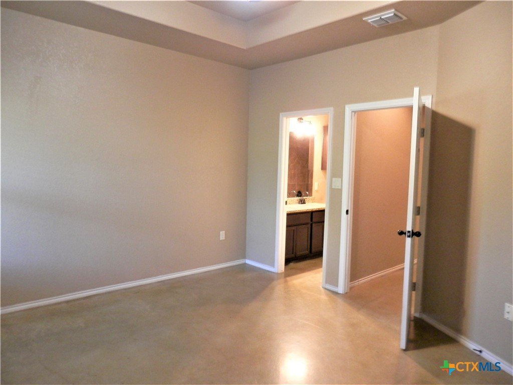 This spacious 3 bedroom, 2 bathroom duplex with a 2-car garage is conveniently located just minutes from IH-35, making it ideal for commuters. Nestled at the end of a quiet cul-de-sac, the home features stained concrete floors throughout, granite countertops in the kitchen and bathrooms, and ceramic tile in the shower/tub combo. The master bedroom includes a walk-in closet and vaulted ceilings, adding to the open and airy feel of the space. All kitchen appliances are included, and the covered patio opens to a fenced backyard, perfect for relaxing or entertaining. Pets are considered on a case-by-case basis—please call for more information.